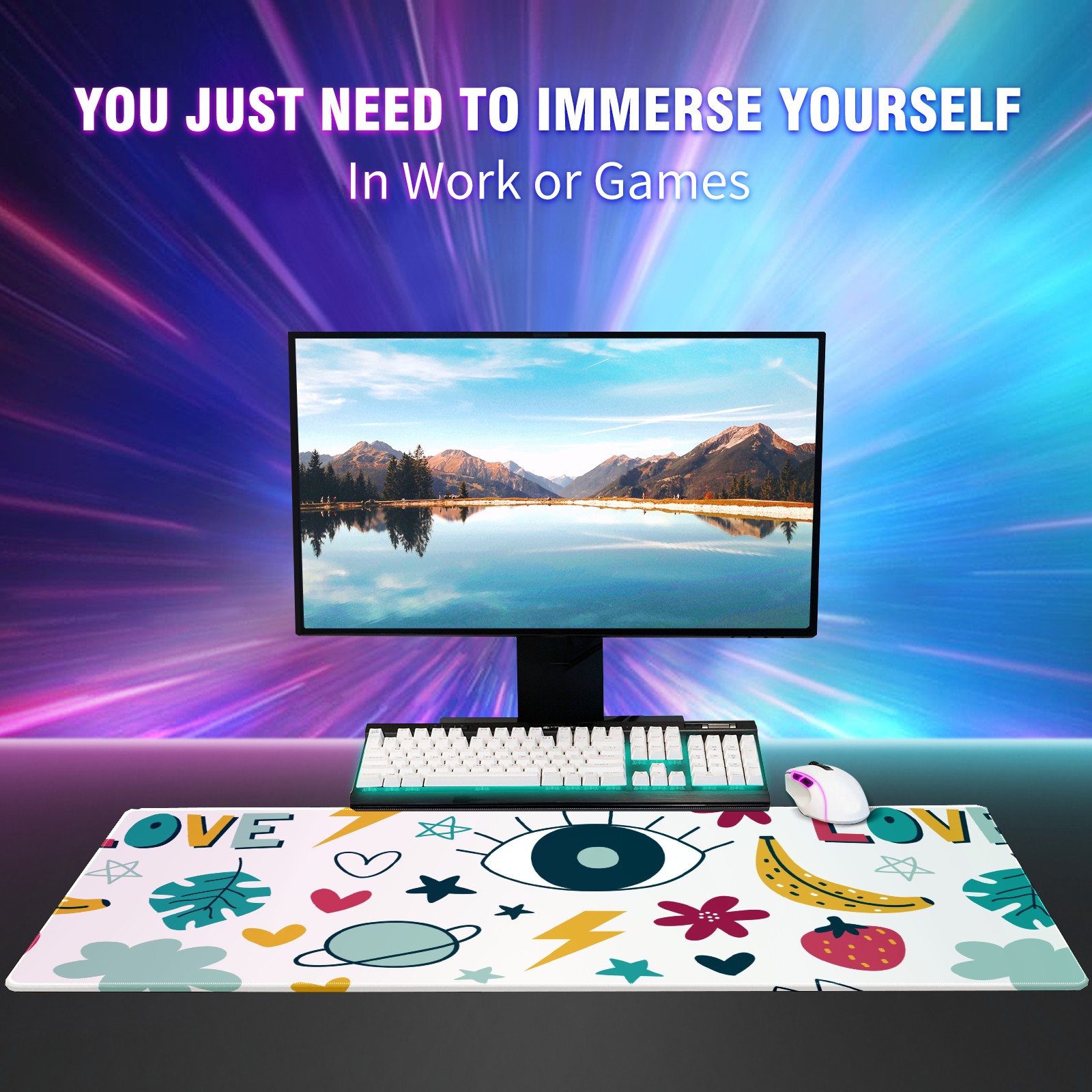 Large Mouse Pad for Desktop, Cute Desk Mat Pad Protector for Work & Gaming, Aesthetic Pretty Anti-Slip Laptop Blotter Cover for Office School Home Supplies, Wow Eye , 35.4inx15.7in