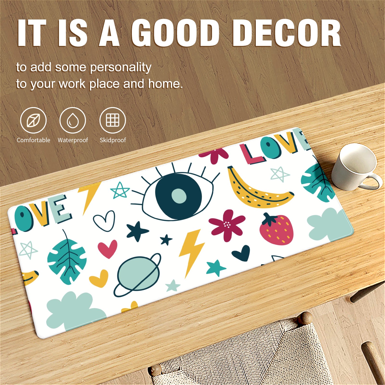 • <p>This 35.4” × 15.7” extended desk mat offers ample space for your keyboard, mouse and essentials, working as a smooth work/writing pad while protecting your desktop from scratches.</p><p>With stylish artistic patterns, it adds personality to your home office, study or gaming setup. The high-density woven surface ensures precise, smooth mouse tracking for work and gaming.</p><p>Featuring an anti-slip natural rubber base for firm grip and stability, the mat is soft, elastic and odorless. Reinforced stitched edges prevent fraying and curling for long-lasting durability.</p>