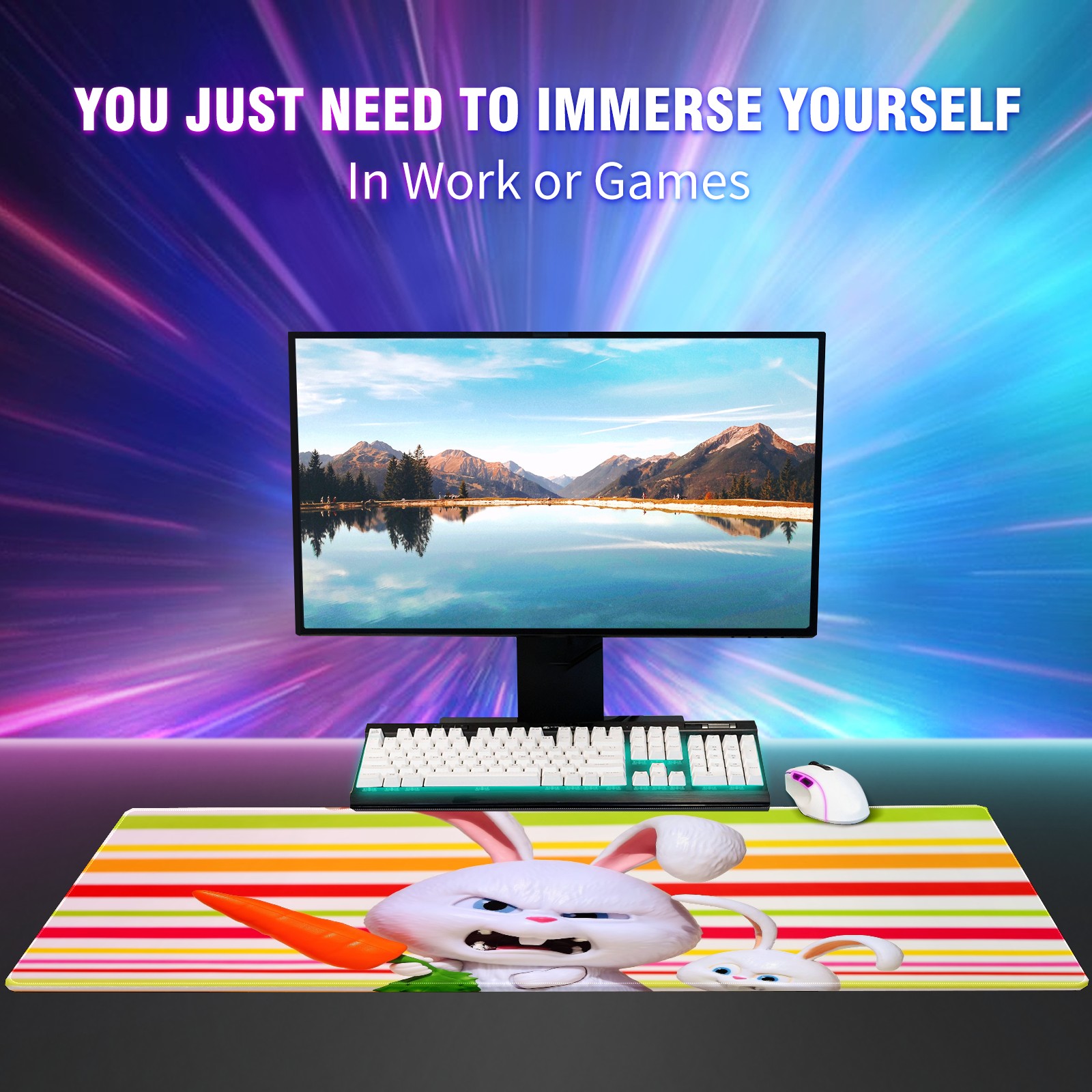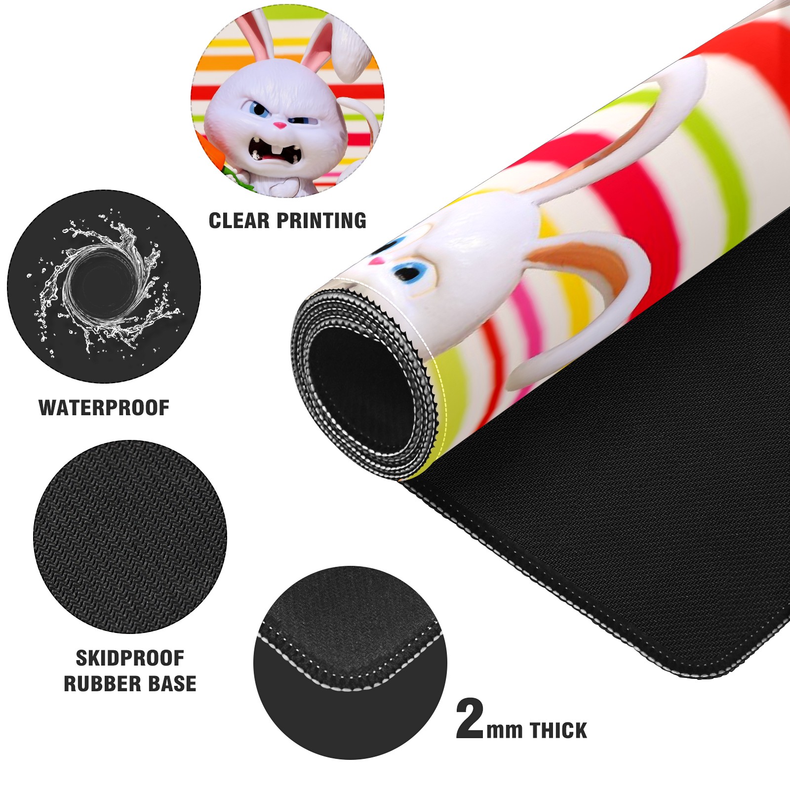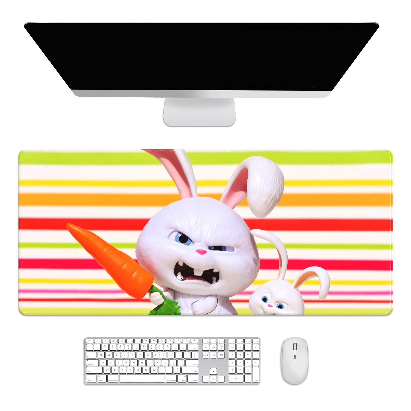Large Mouse Pad for Desktop, Cute Desk Mat Pad Protector for Work & Gaming, Aesthetic Pretty Anti-Slip Laptop Blotter Cover for Office School Home Supplies, White Hare , 35.4inx15.7in