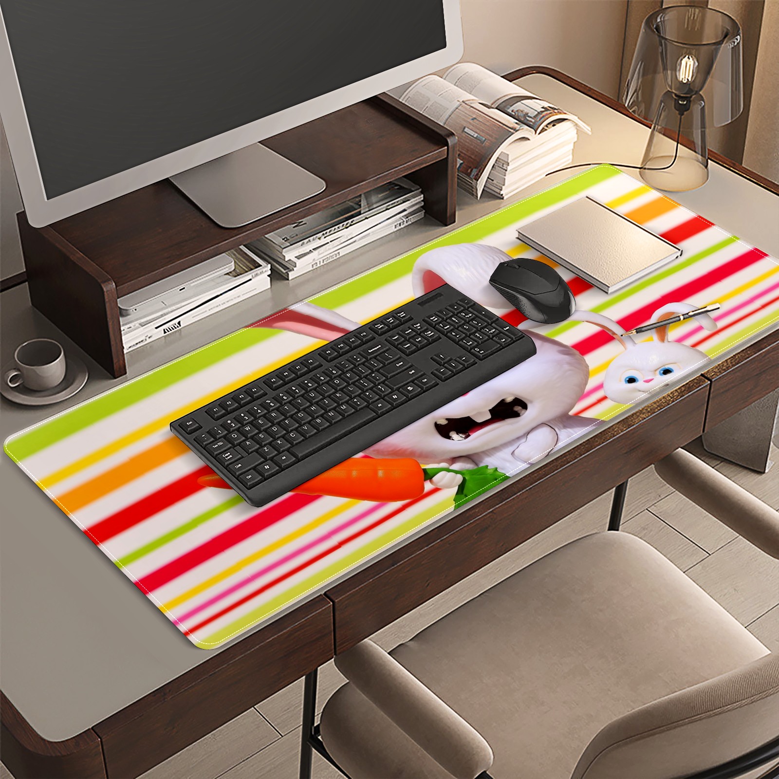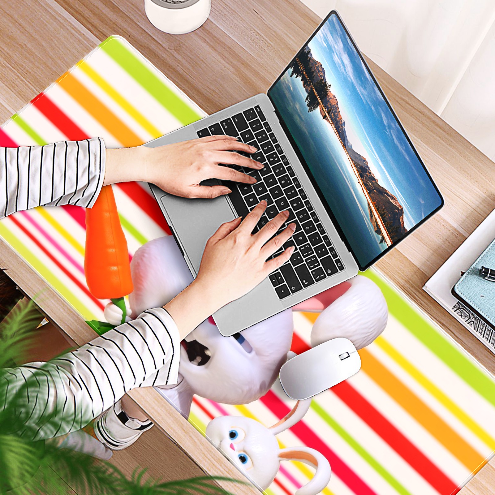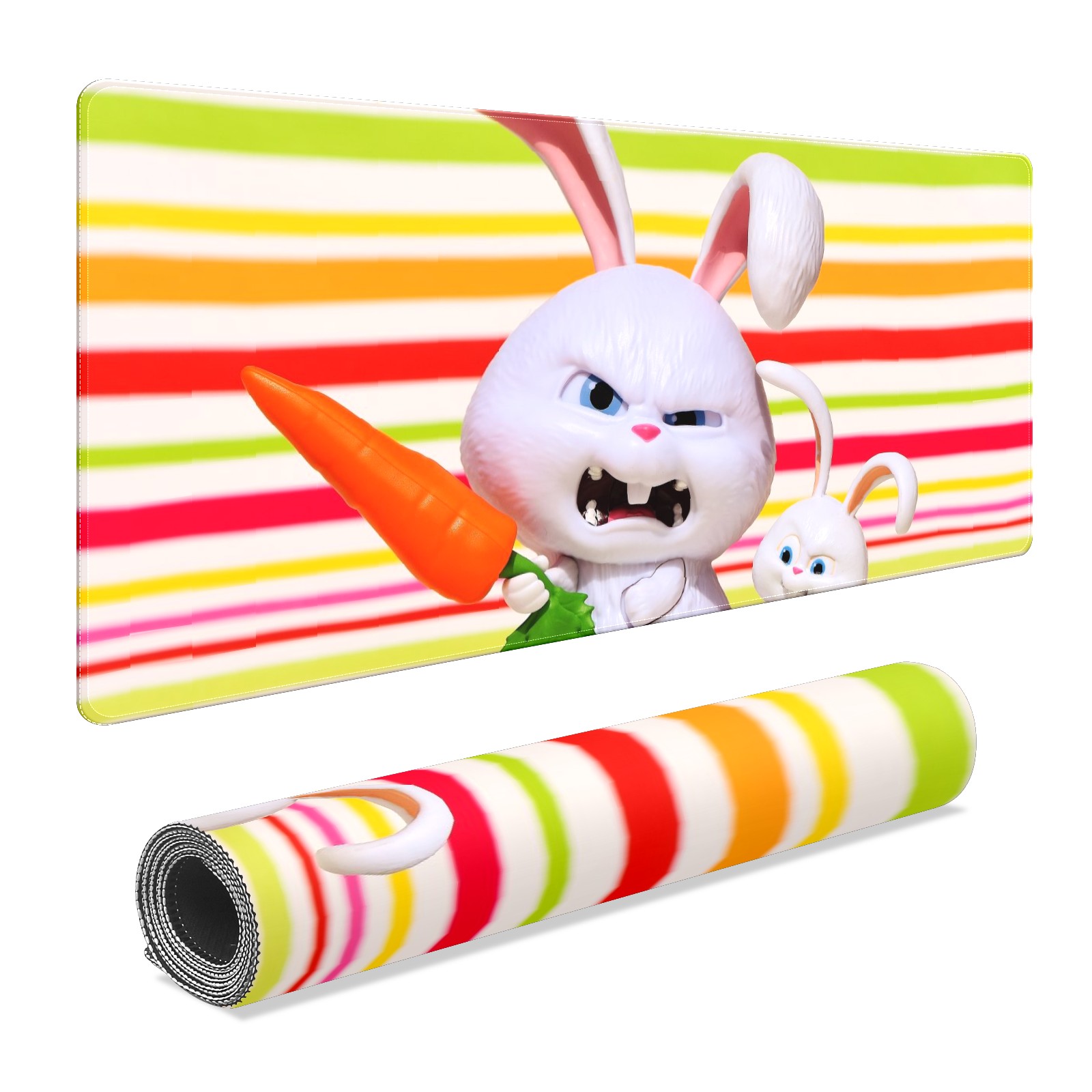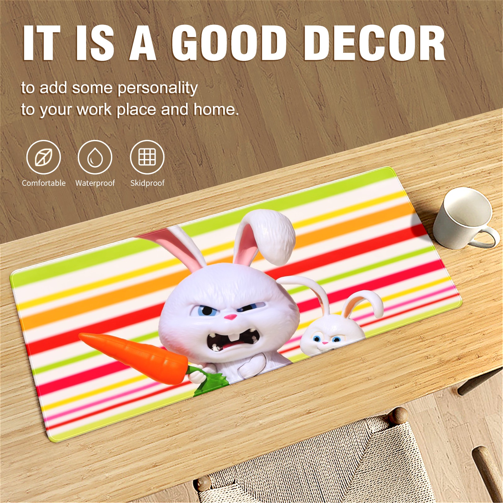 Large Mouse Pad for Desktop, Cute Desk Mat Pad Protector for Work & Gaming, Aesthetic Pretty Anti-Slip Laptop Blotter Cover for Office School Home Supplies, White Hare , 35.4inx15.7in