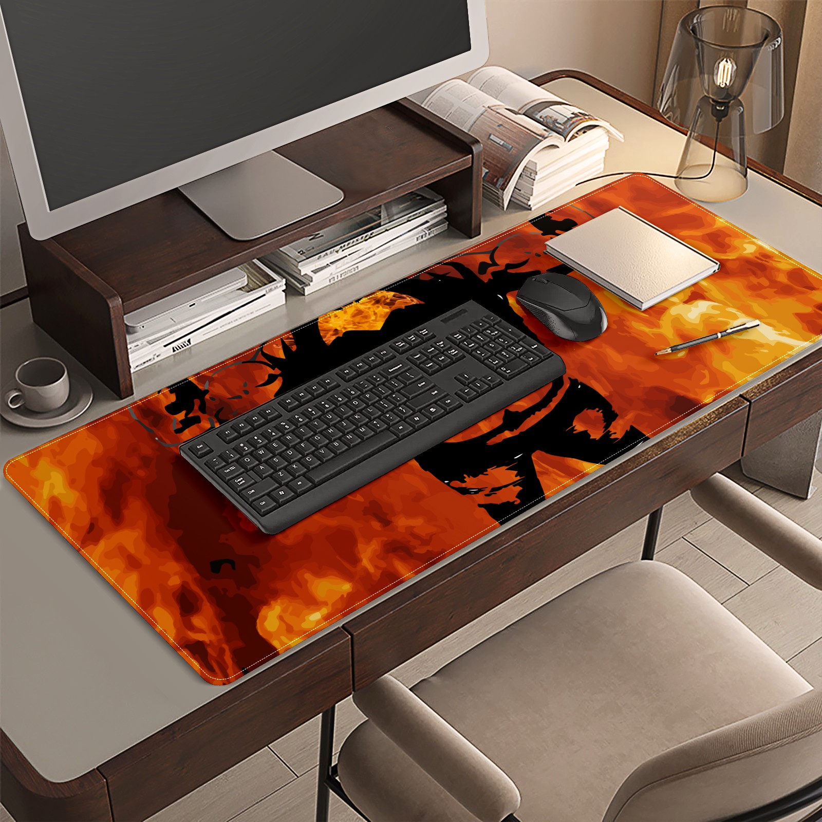 <p>This 35.4” × 15.7” extended desk mat offers ample space for your keyboard, mouse and essentials, working as a smooth work/writing pad while protecting your desktop from scratches.</p><p>With stylish artistic patterns, it adds personality to your home office, study or gaming setup. The high-density woven surface ensures precise, smooth mouse tracking for work and gaming.</p><p>Featuring an anti-slip natural rubber base for firm grip and stability, the mat is soft, elastic and odorless. Reinforced stitched edges prevent fraying and curling for long-lasting durability.</p>