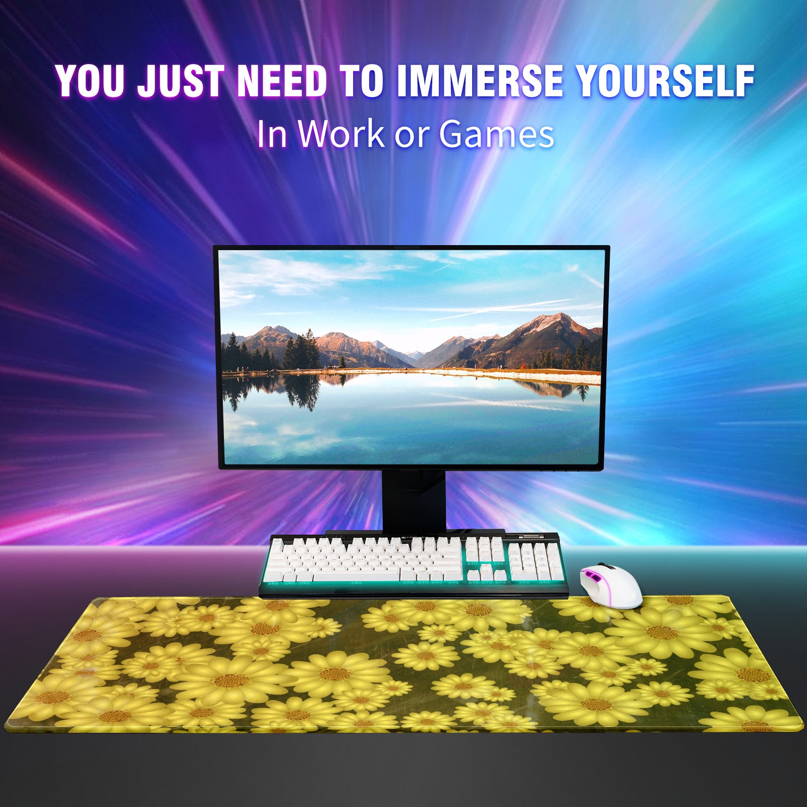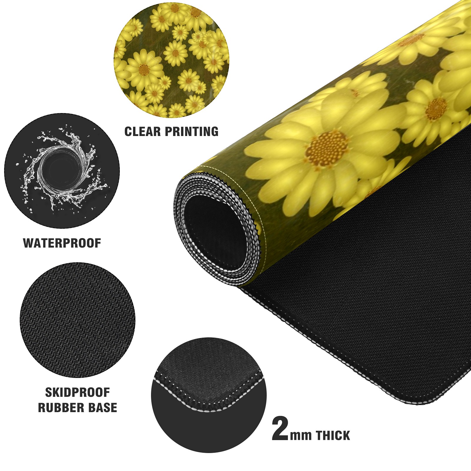 Large Mouse Pad for Desktop, Cute Desk Mat Pad Protector for Work & Gaming, Aesthetic Pretty Anti-Slip Laptop Blotter Cover for Office School Home Supplies, Flowers Pattern , 35.4inx15.7in