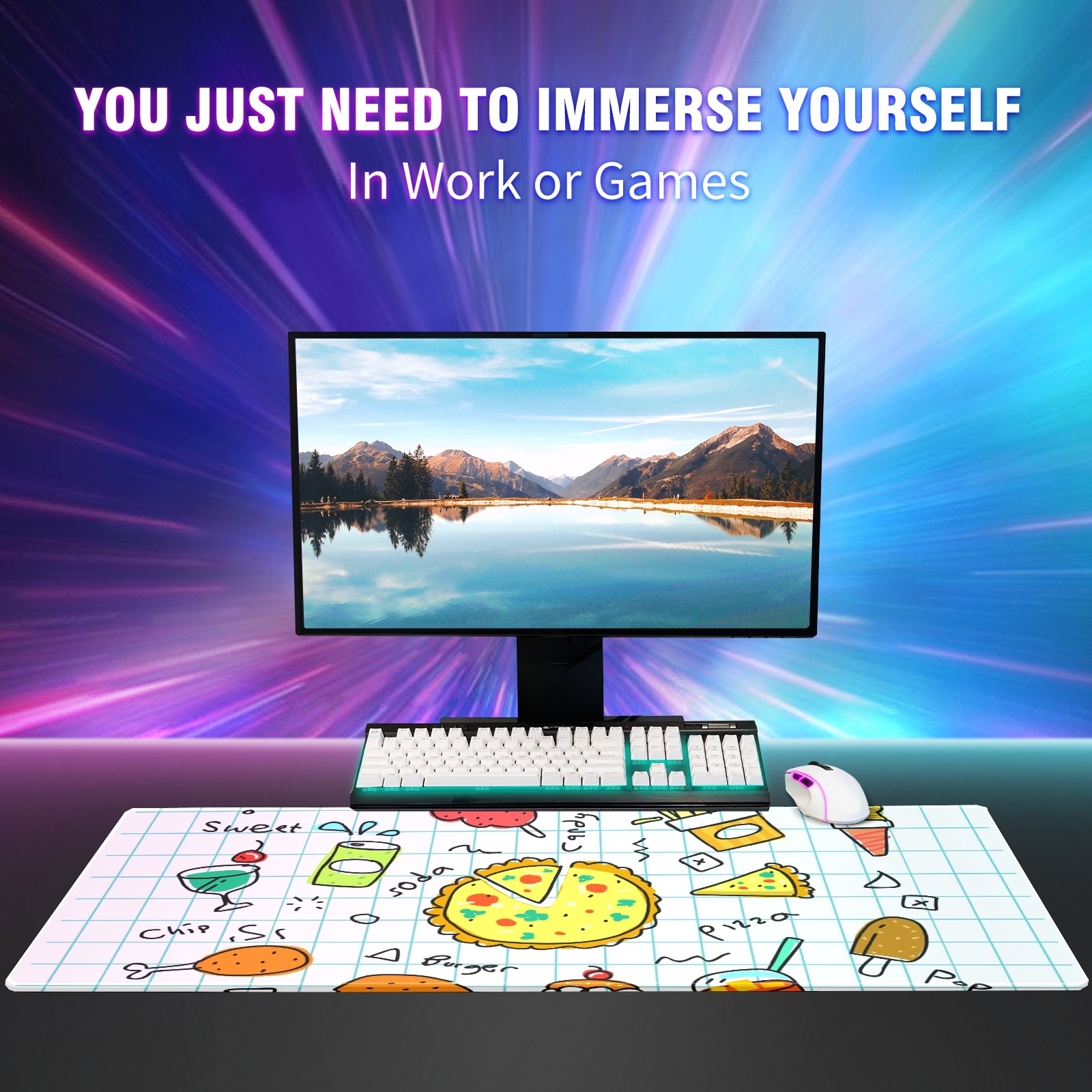 Large Mouse Pad for Desktop, Cute Desk Mat Pad Protector for Work & Gaming, Aesthetic Pretty Anti-Slip Laptop Blotter Cover for Office School Home Supplies, Colorful Doodle , 35.4inx15.7in