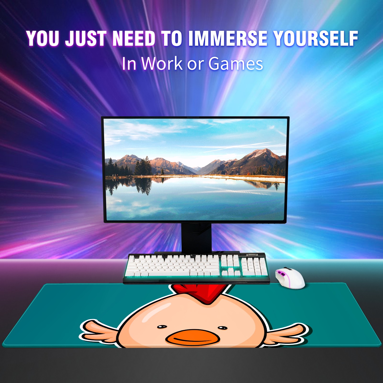 Large Mouse Pad for Desktop, Cute Desk Mat Pad Protector for Work & Gaming, Aesthetic Pretty Anti-Slip Laptop Blotter Cover for Office School Home Supplies, Cartoon Chick , 35.4inx15.7in