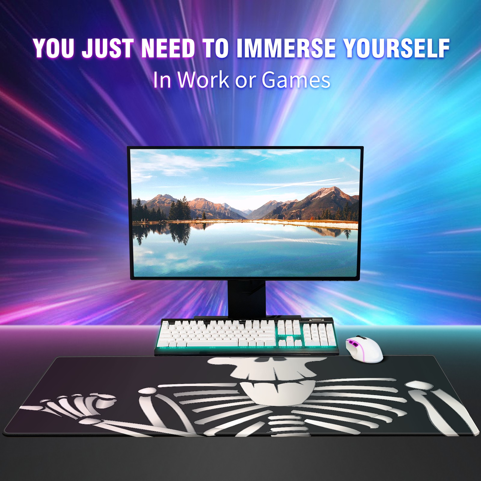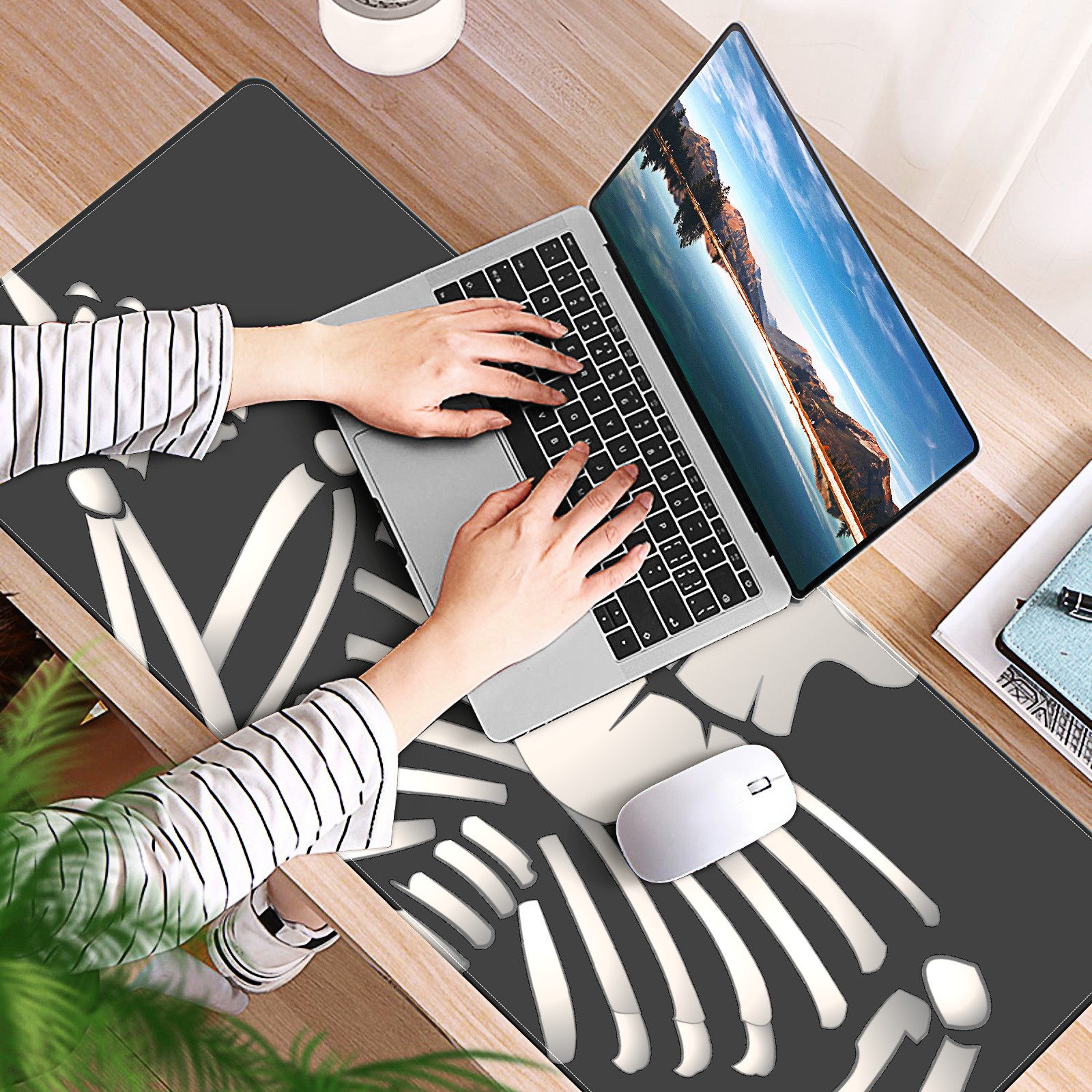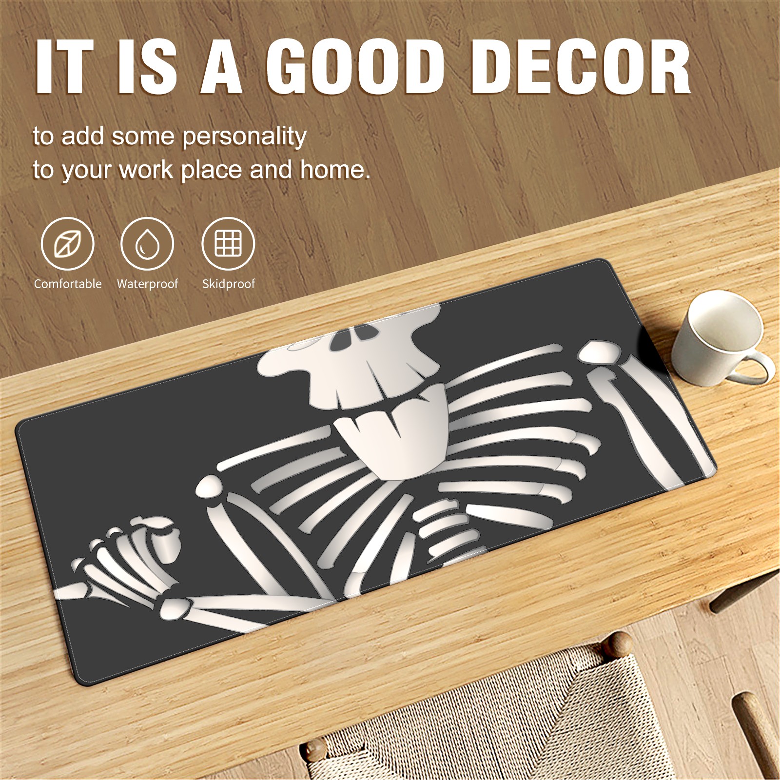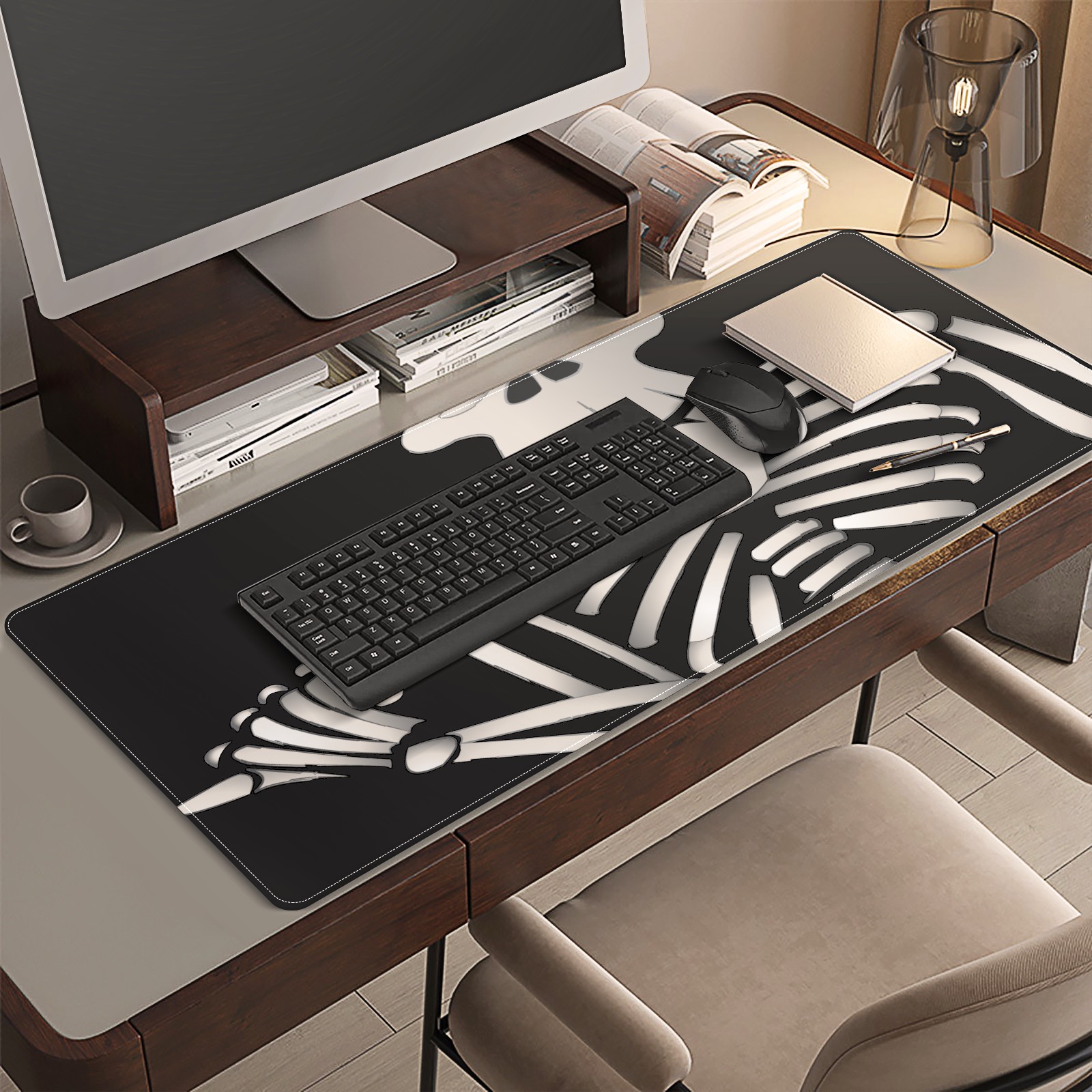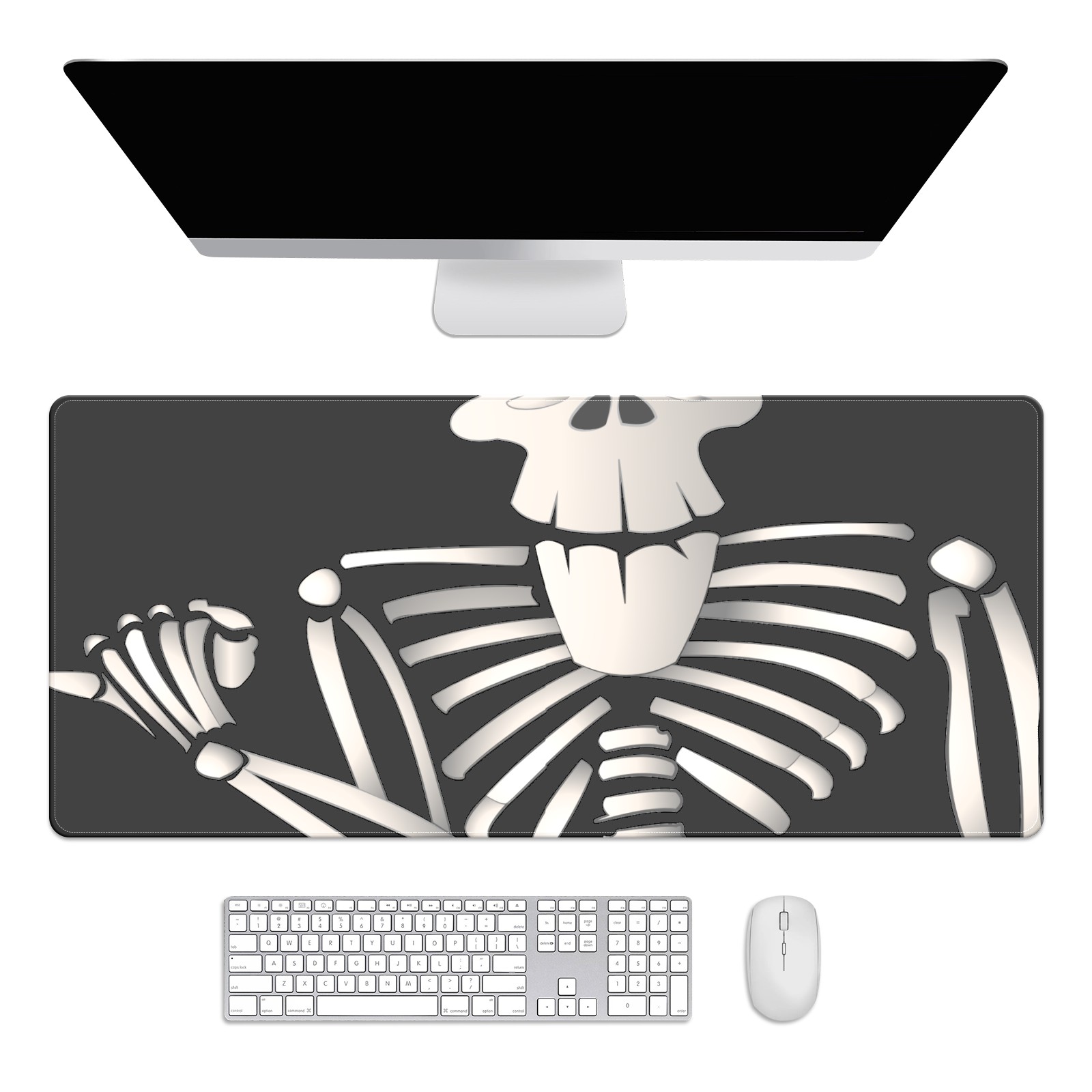 Large Mouse Pad for Desktop, Cute Desk Mat Pad Protector for Work & Gaming, Aesthetic Pretty Anti-Slip Laptop Blotter Cover for Office School Home Supplies, Cartoon Skeleton , 35.4inx15.7in