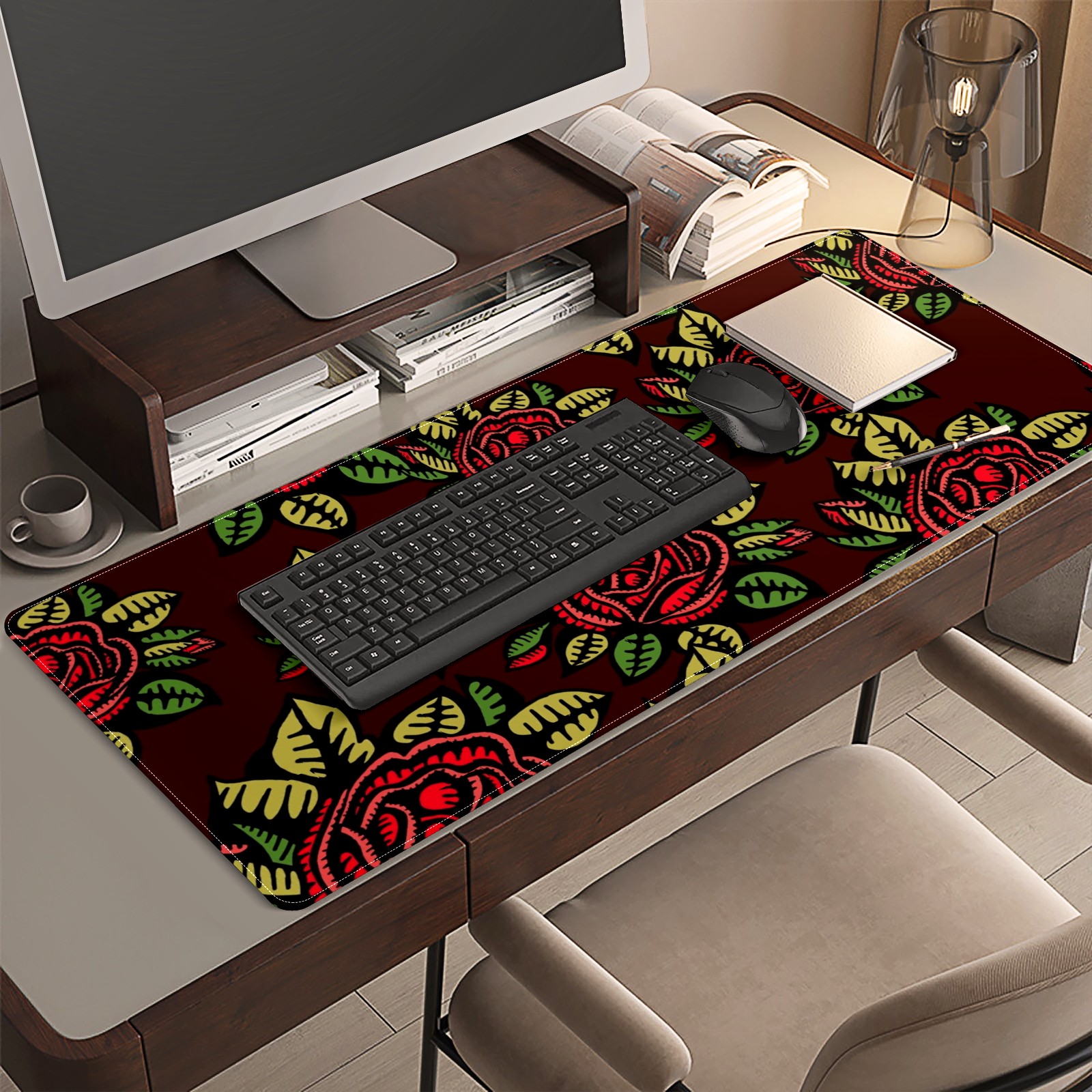<p>This 35.4” × 15.7” extended desk mat offers ample space for your keyboard, mouse and essentials, working as a smooth work/writing pad while protecting your desktop from scratches.</p><p>With stylish artistic patterns, it adds personality to your home office, study or gaming setup. The high-density woven surface ensures precise, smooth mouse tracking for work and gaming.</p><p>Featuring an anti-slip natural rubber base for firm grip and stability, the mat is soft, elastic and odorless. Reinforced stitched edges prevent fraying and curling for long-lasting durability.</p>