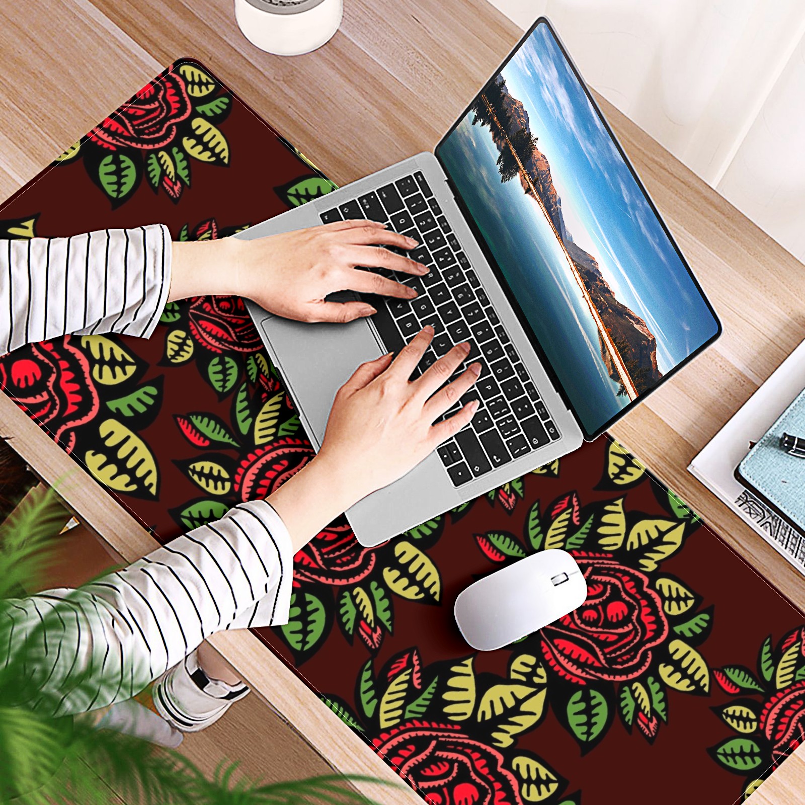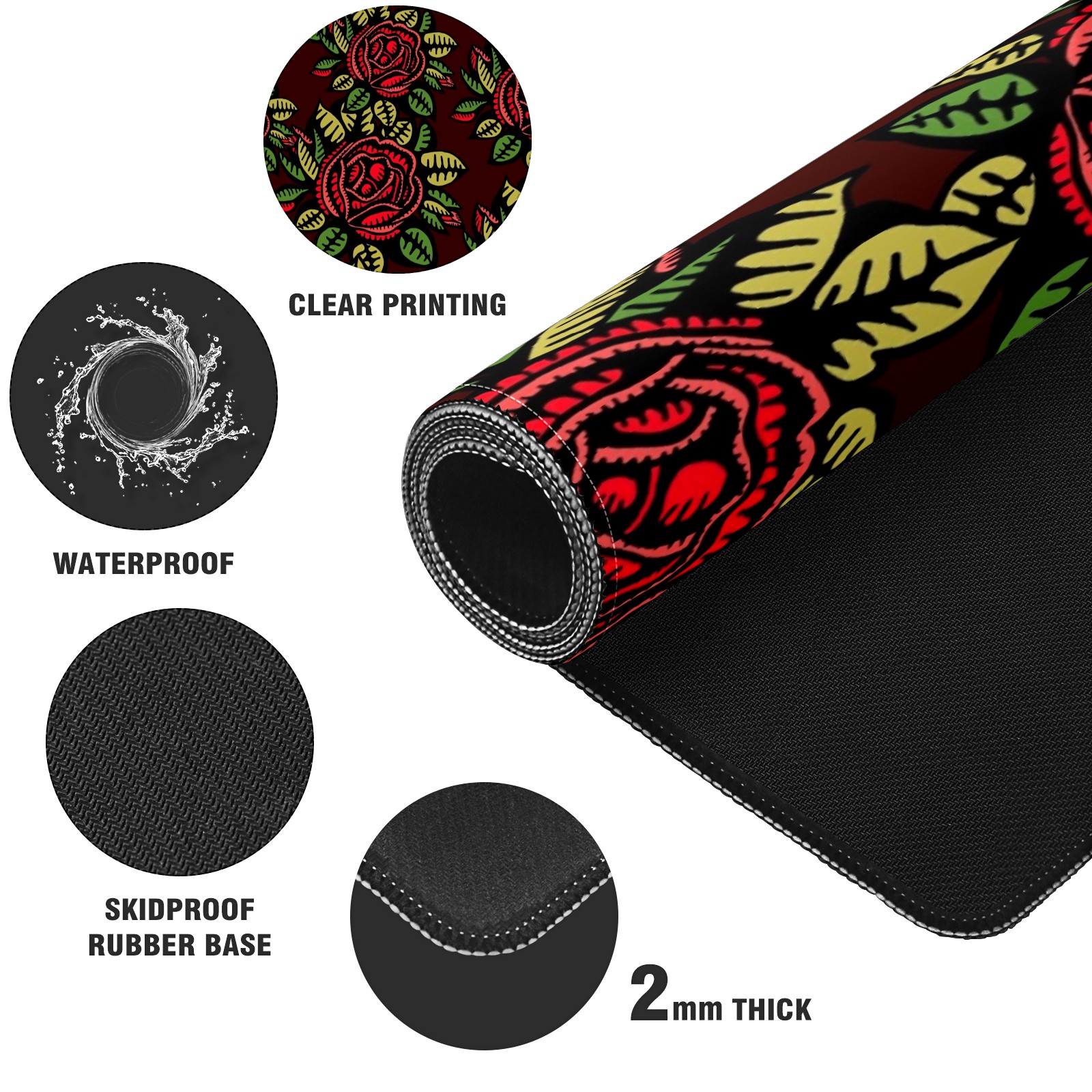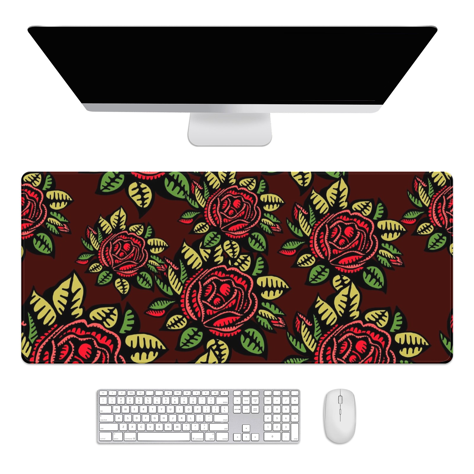 Large Mouse Pad for Desktop, Cute Desk Mat Pad Protector for Work & Gaming, Aesthetic Pretty Anti-Slip Laptop Blotter Cover for Office School Home Supplies, Red Rose , 35.4inx15.7in