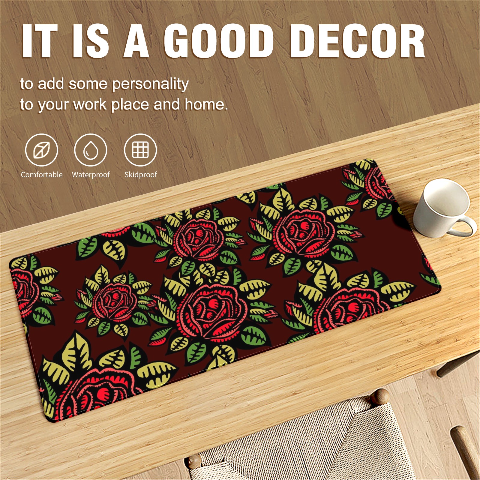 • <p>This 35.4” × 15.7” extended desk mat offers ample space for your keyboard, mouse and essentials, working as a smooth work/writing pad while protecting your desktop from scratches.</p><p>With stylish artistic patterns, it adds personality to your home office, study or gaming setup. The high-density woven surface ensures precise, smooth mouse tracking for work and gaming.</p><p>Featuring an anti-slip natural rubber base for firm grip and stability, the mat is soft, elastic and odorless. Reinforced stitched edges prevent fraying and curling for long-lasting durability.</p>
