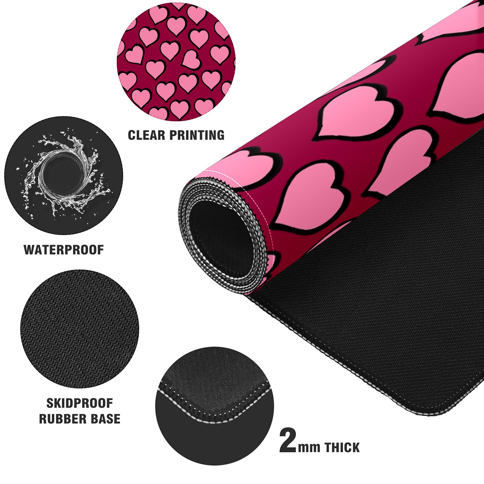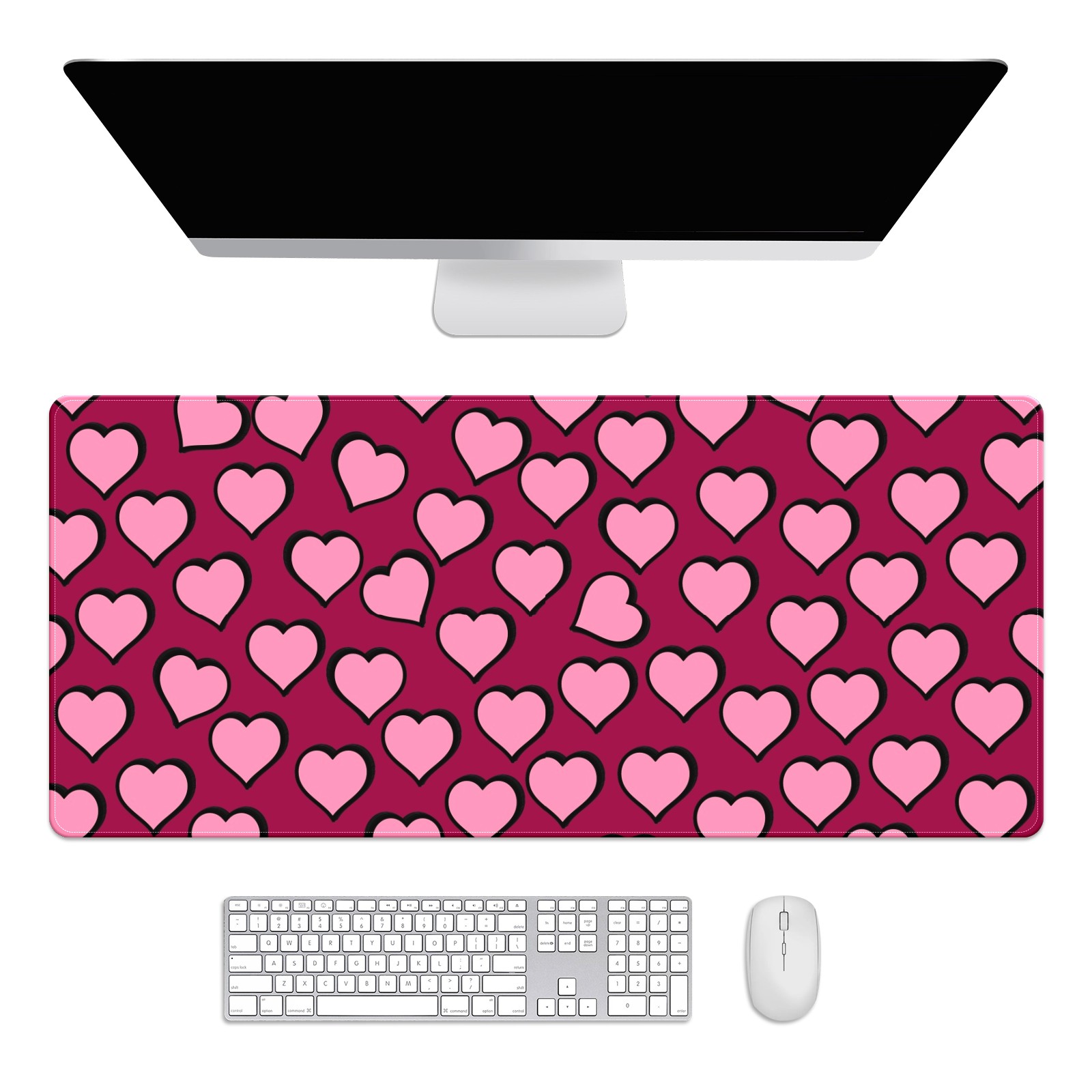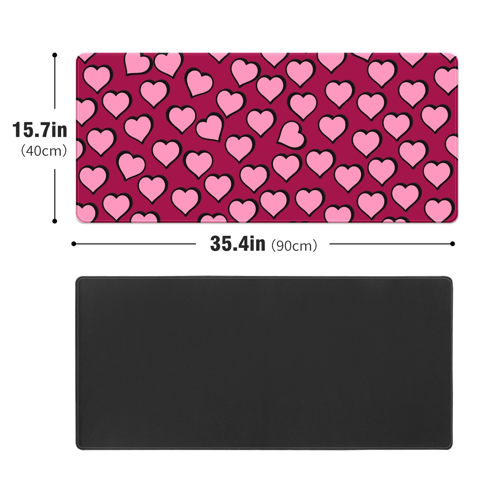 Large Mouse Pad for Desktop, Cute Desk Mat Pad Protector for Work & Gaming, Aesthetic Pretty Anti-Slip Laptop Blotter Cover for Office School Home Supplies, Heart Pattern , 35.4inx15.7in