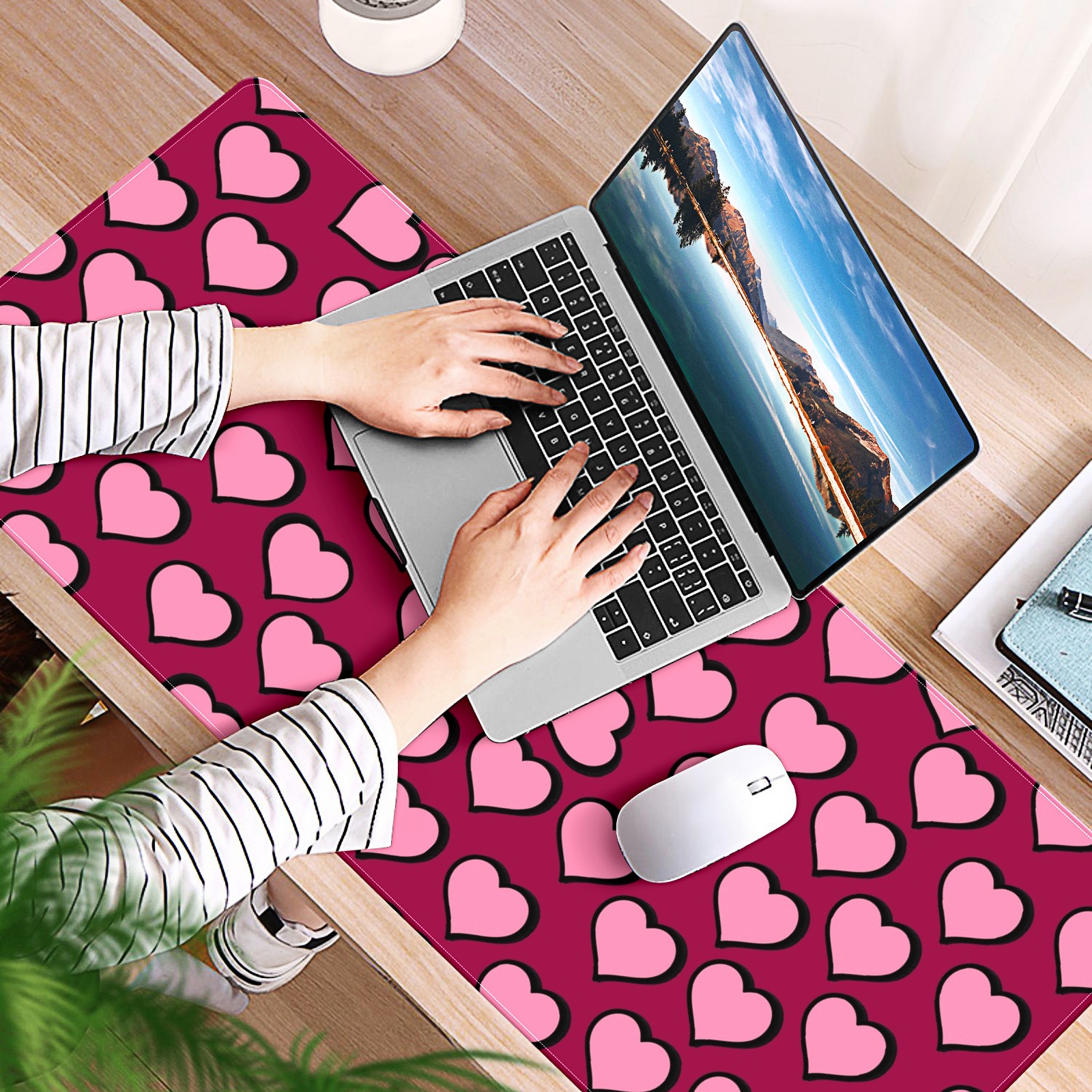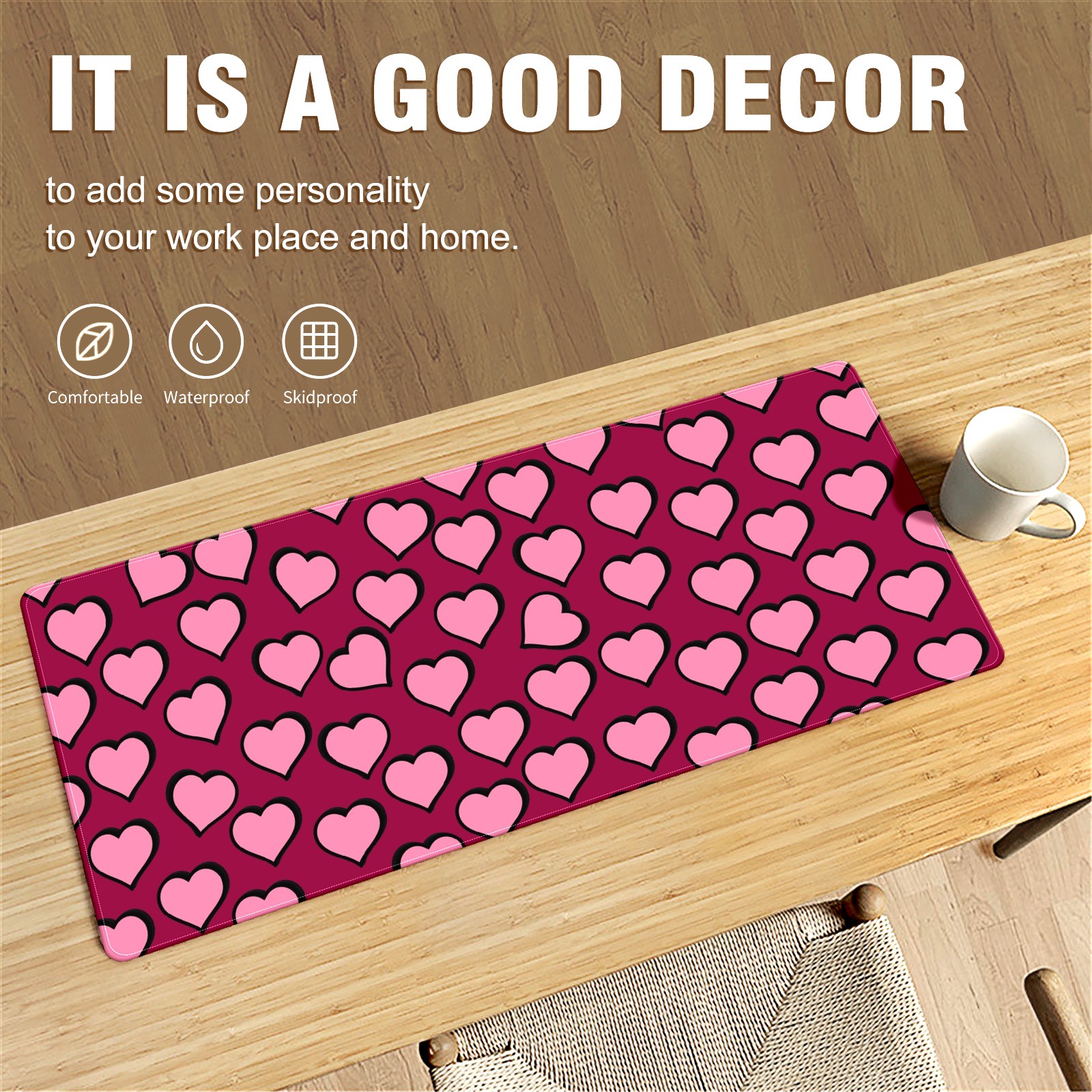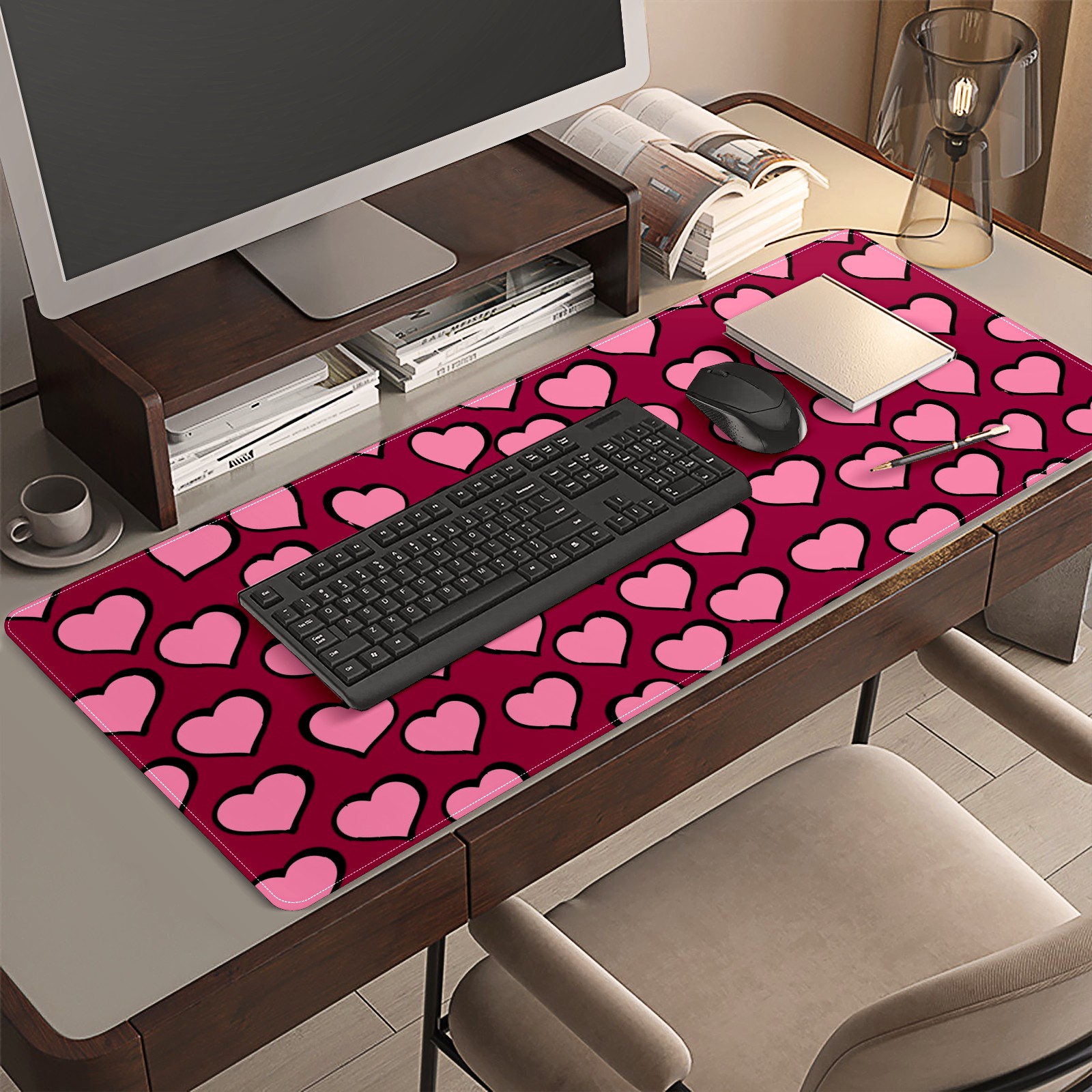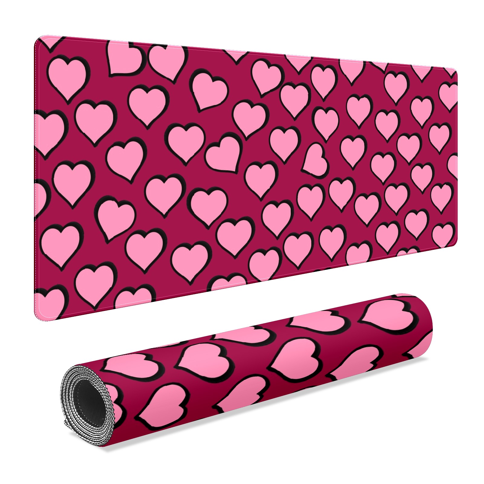 Large Mouse Pad for Desktop, Cute Desk Mat Pad Protector for Work & Gaming, Aesthetic Pretty Anti-Slip Laptop Blotter Cover for Office School Home Supplies, Heart Pattern , 35.4inx15.7in
