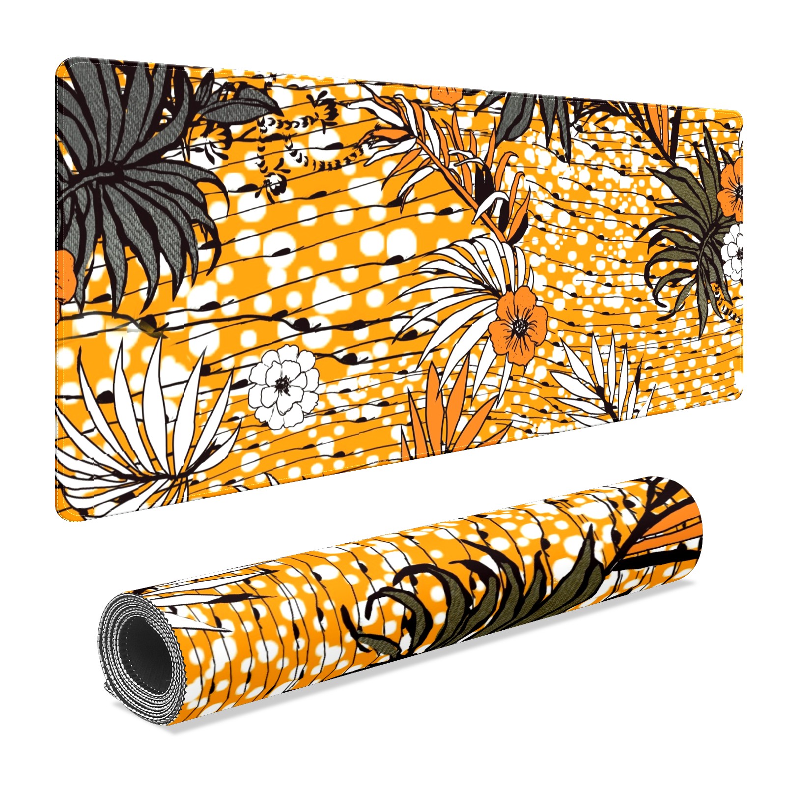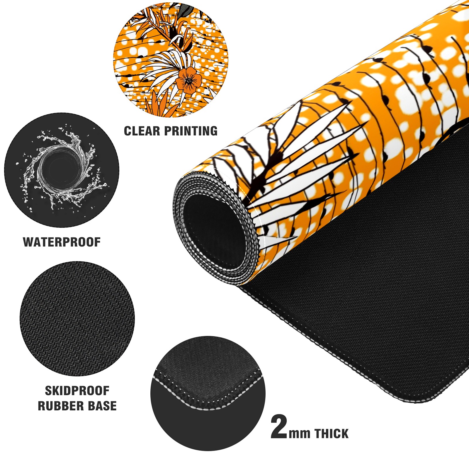 Large Mouse Pad for Desktop, Cute Desk Mat Pad Protector for Work & Gaming, Aesthetic Pretty Anti-Slip Laptop Blotter Cover for Office School Home Supplies, Leaf Flowers , 35.4inx15.7in