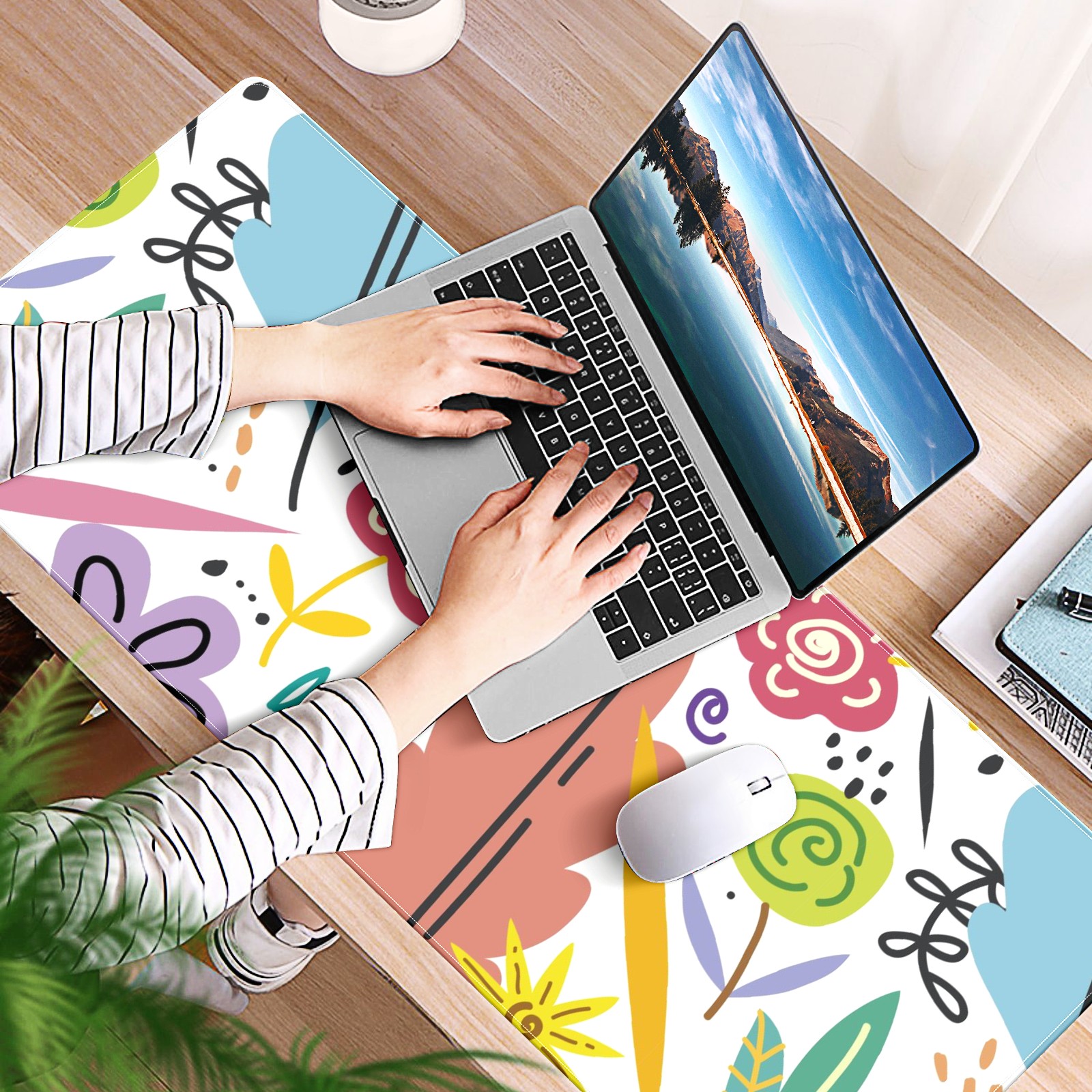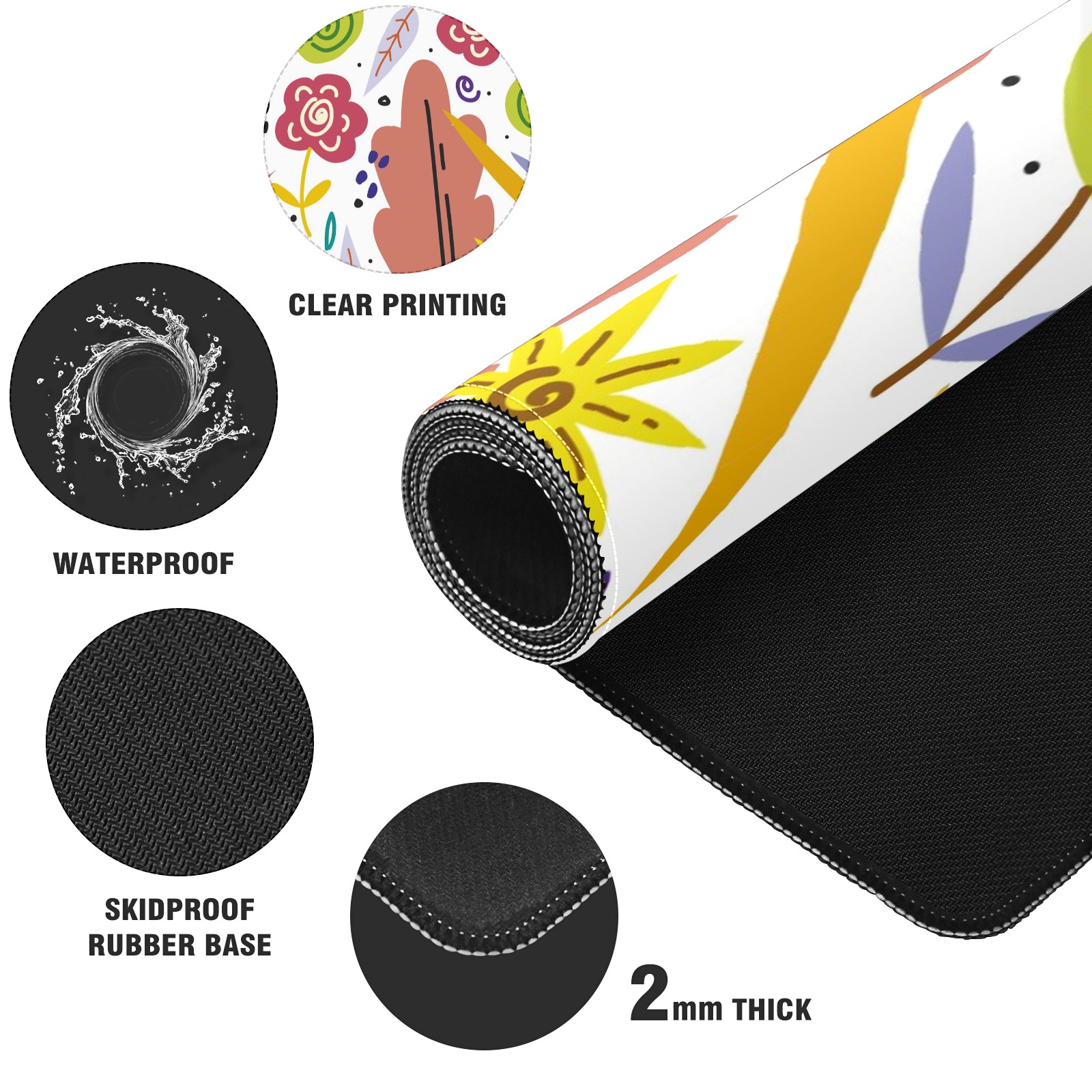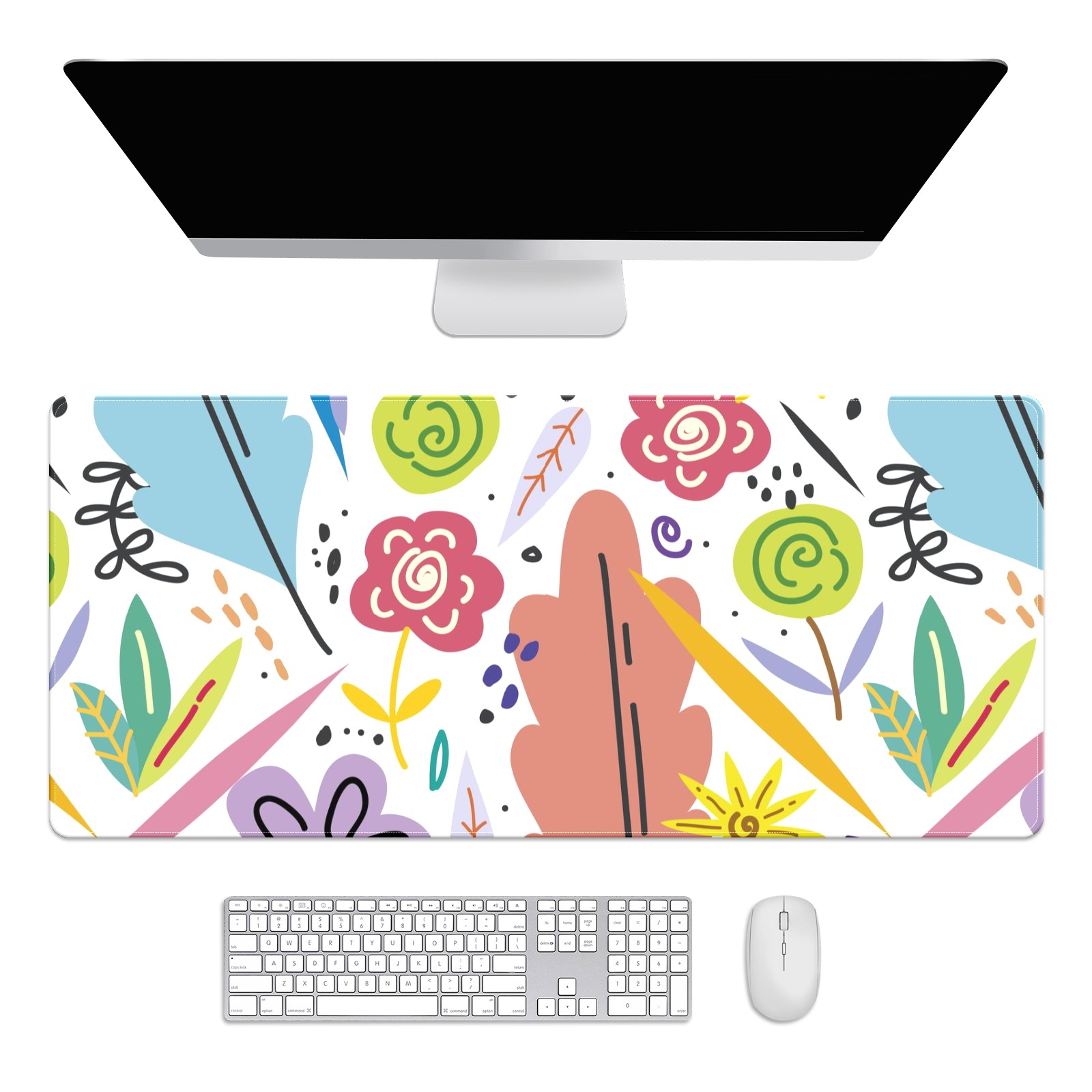 Large Mouse Pad for Desktop, Cute Desk Mat Pad Protector for Work & Gaming, Aesthetic Pretty Anti-Slip Laptop Blotter Cover for Office School Home Supplies, Color Flowers , 35.4inx15.7in