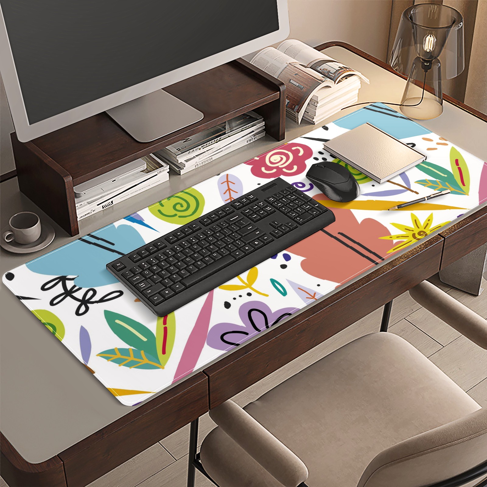 <p>This 35.4” × 15.7” extended desk mat offers ample space for your keyboard, mouse and essentials, working as a smooth work/writing pad while protecting your desktop from scratches.</p><p>With stylish artistic patterns, it adds personality to your home office, study or gaming setup. The high-density woven surface ensures precise, smooth mouse tracking for work and gaming.</p><p>Featuring an anti-slip natural rubber base for firm grip and stability, the mat is soft, elastic and odorless. Reinforced stitched edges prevent fraying and curling for long-lasting durability.</p>