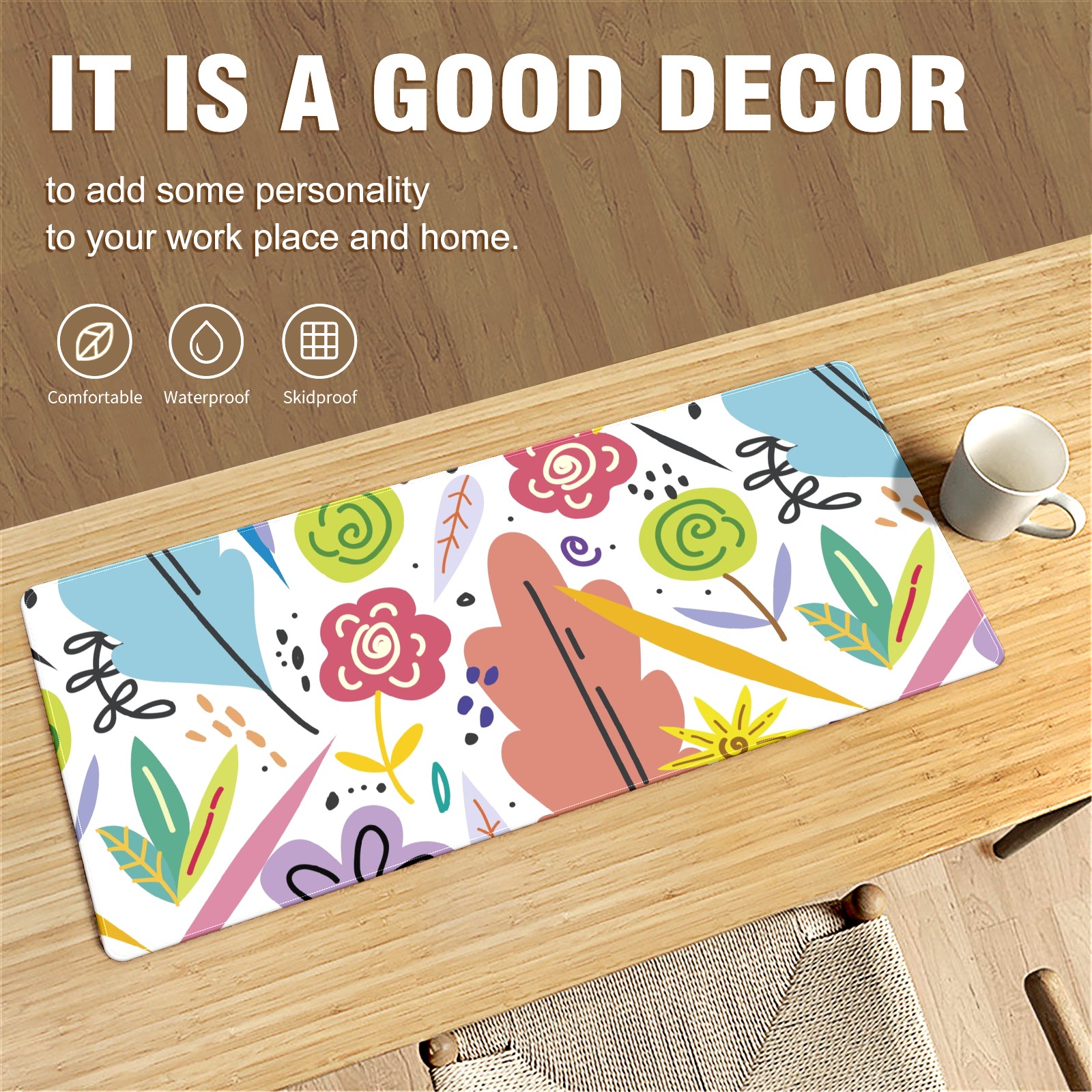 • <p>This 35.4” × 15.7” extended desk mat offers ample space for your keyboard, mouse and essentials, working as a smooth work/writing pad while protecting your desktop from scratches.</p><p>With stylish artistic patterns, it adds personality to your home office, study or gaming setup. The high-density woven surface ensures precise, smooth mouse tracking for work and gaming.</p><p>Featuring an anti-slip natural rubber base for firm grip and stability, the mat is soft, elastic and odorless. Reinforced stitched edges prevent fraying and curling for long-lasting durability.</p>