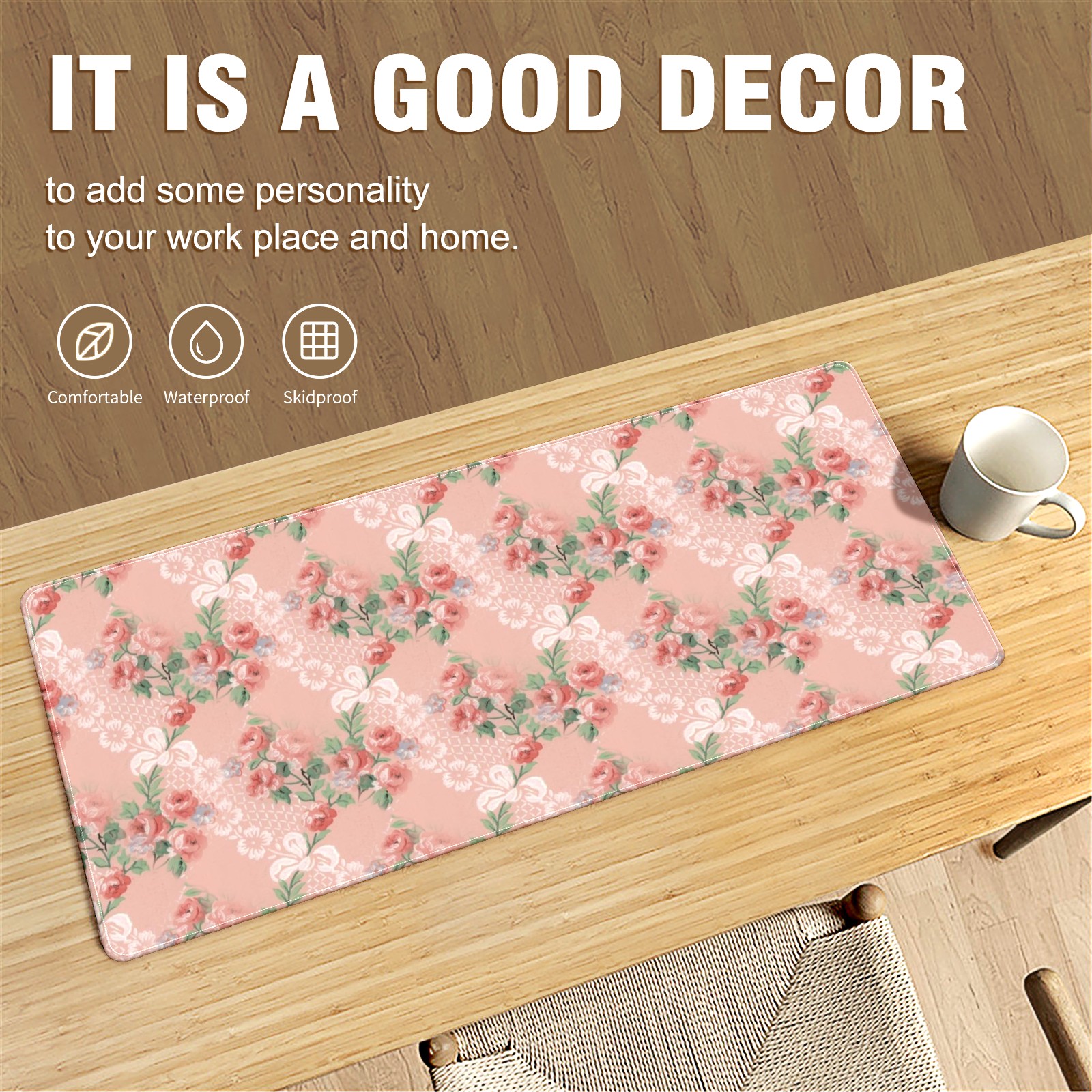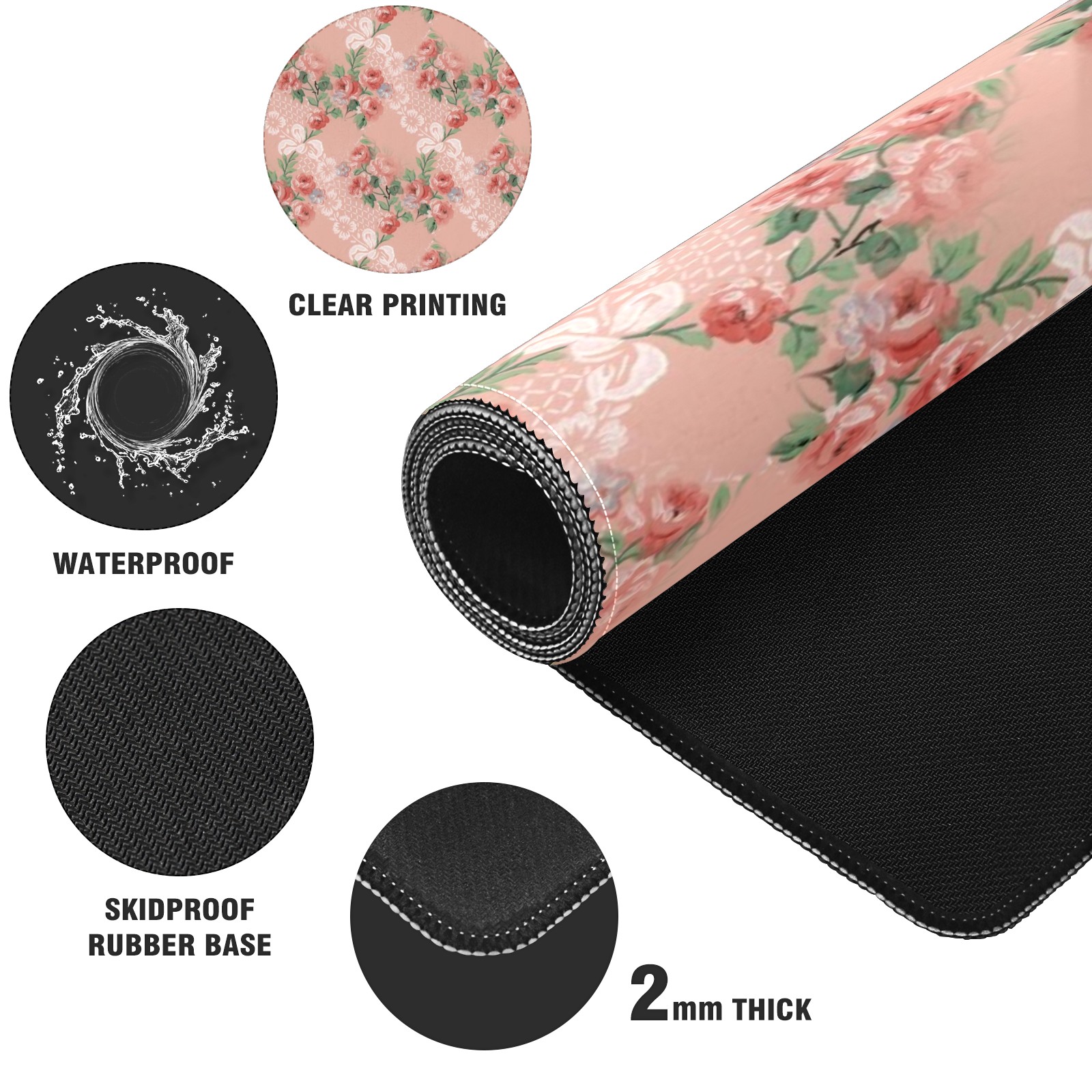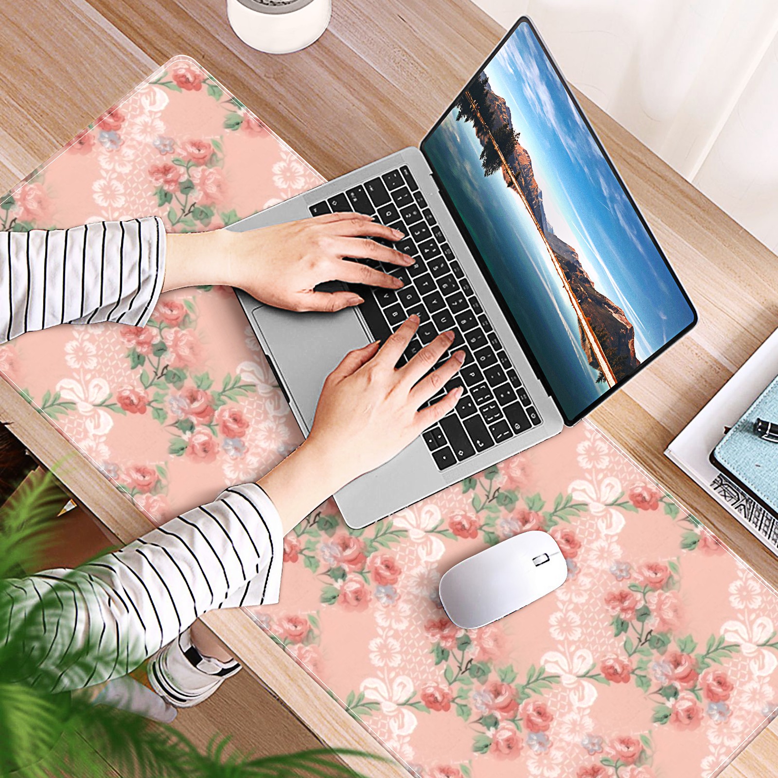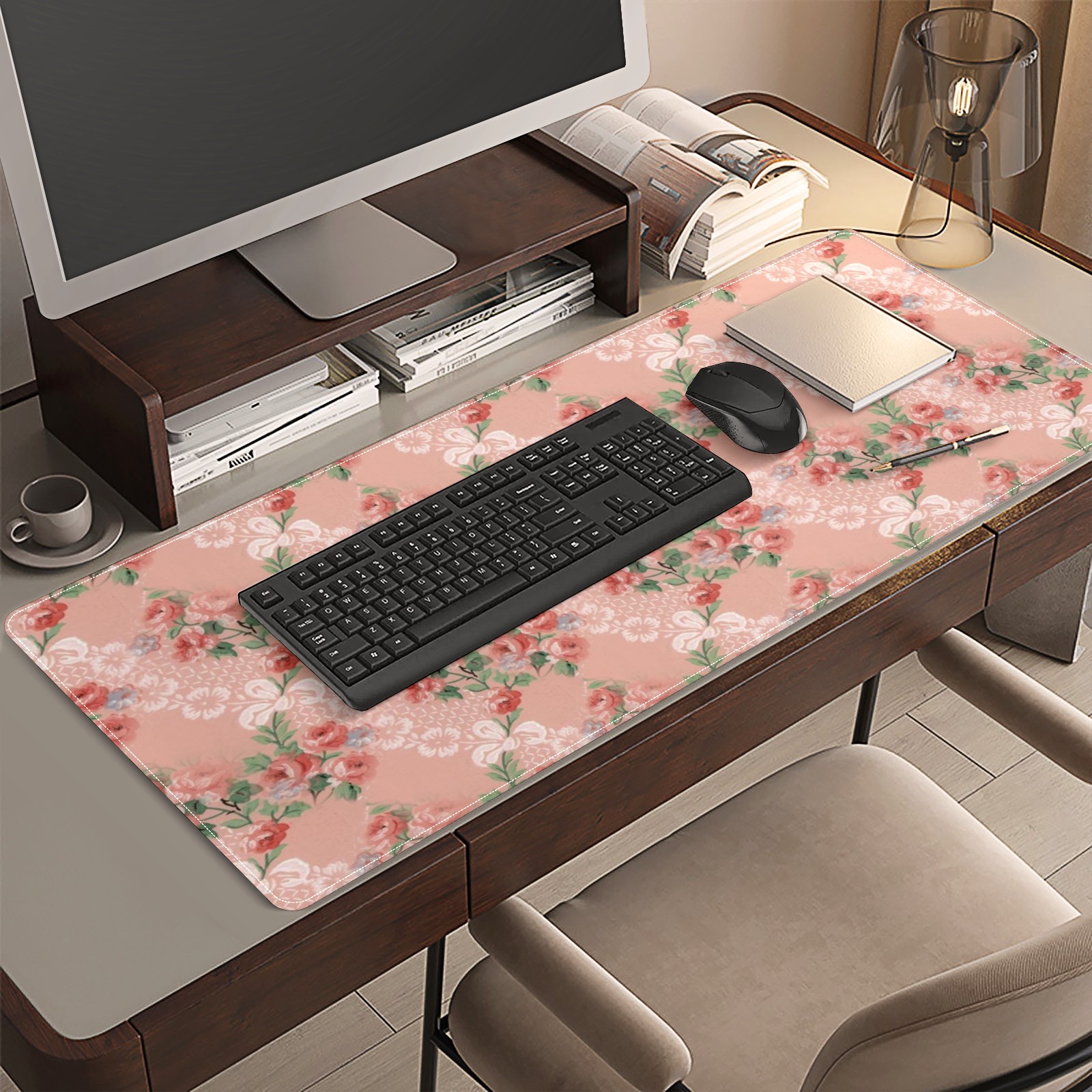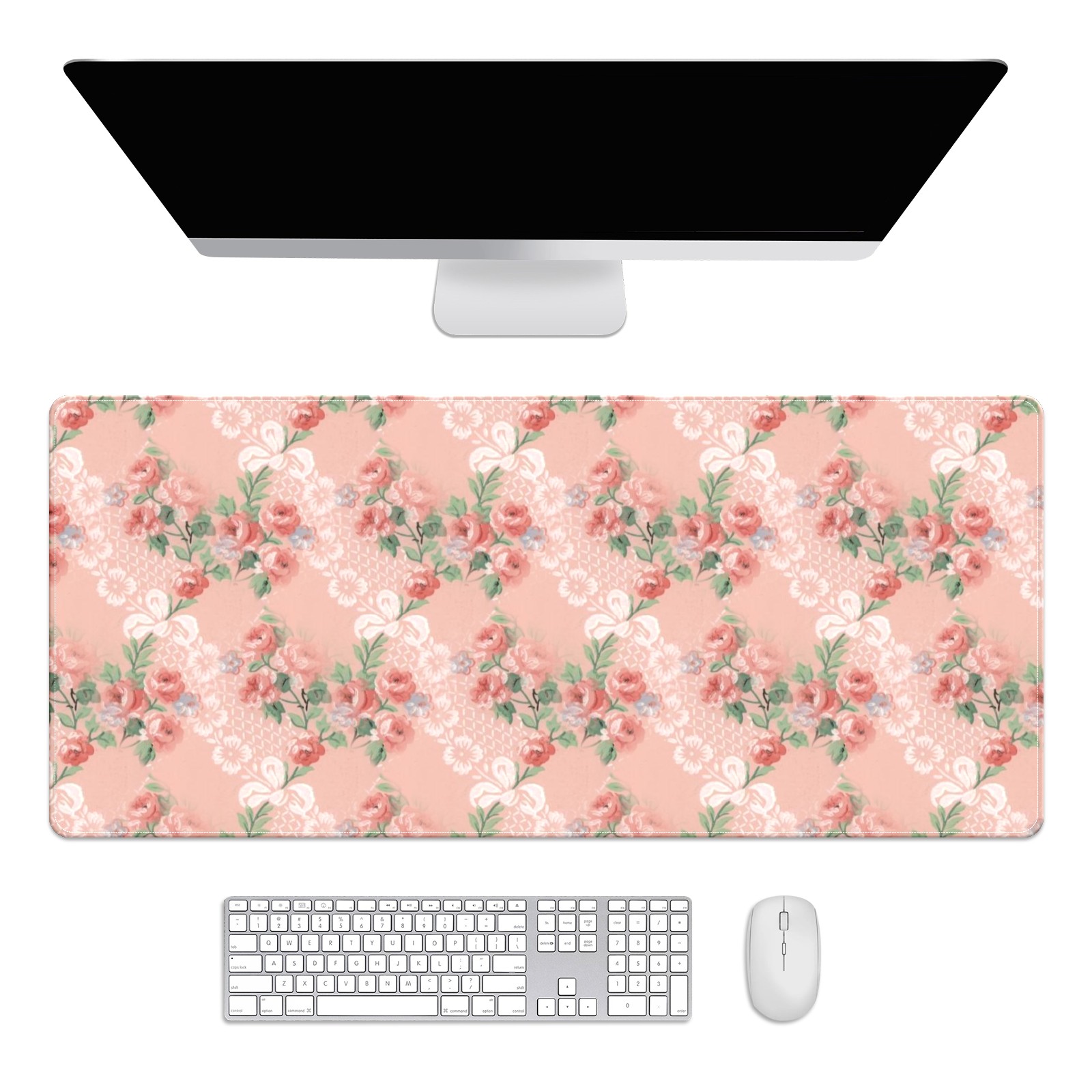 Large Mouse Pad for Desktop, Cute Desk Mat Pad Protector for Work & Gaming, Aesthetic Pretty Anti-Slip Laptop Blotter Cover for Office School Home Supplies, Floral Background , 35.4inx15.7in