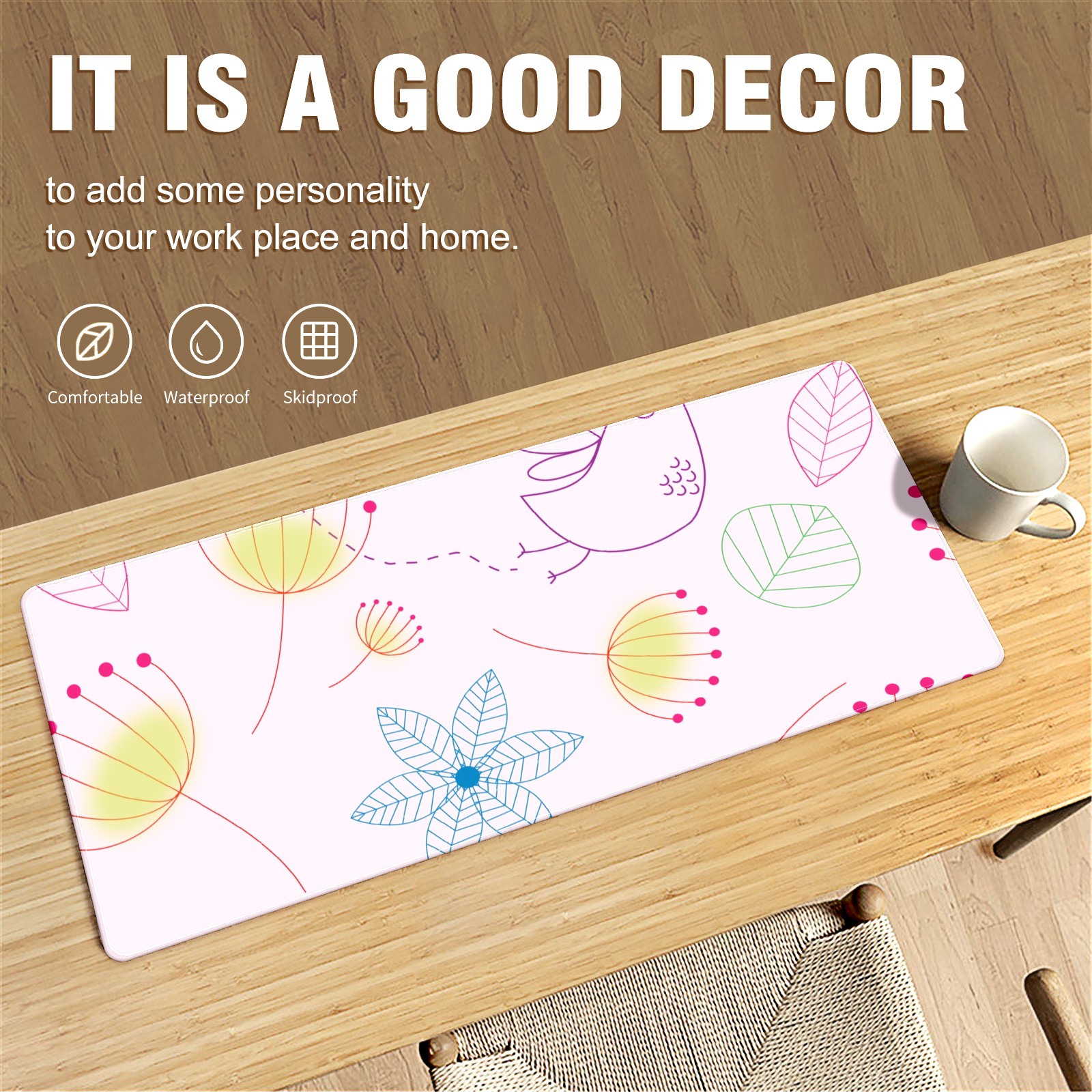 • <p>This 35.4” × 15.7” extended desk mat offers ample space for your keyboard, mouse and essentials, working as a smooth work/writing pad while protecting your desktop from scratches.</p><p>With stylish artistic patterns, it adds personality to your home office, study or gaming setup. The high-density woven surface ensures precise, smooth mouse tracking for work and gaming.</p><p>Featuring an anti-slip natural rubber base for firm grip and stability, the mat is soft, elastic and odorless. Reinforced stitched edges prevent fraying and curling for long-lasting durability.</p>