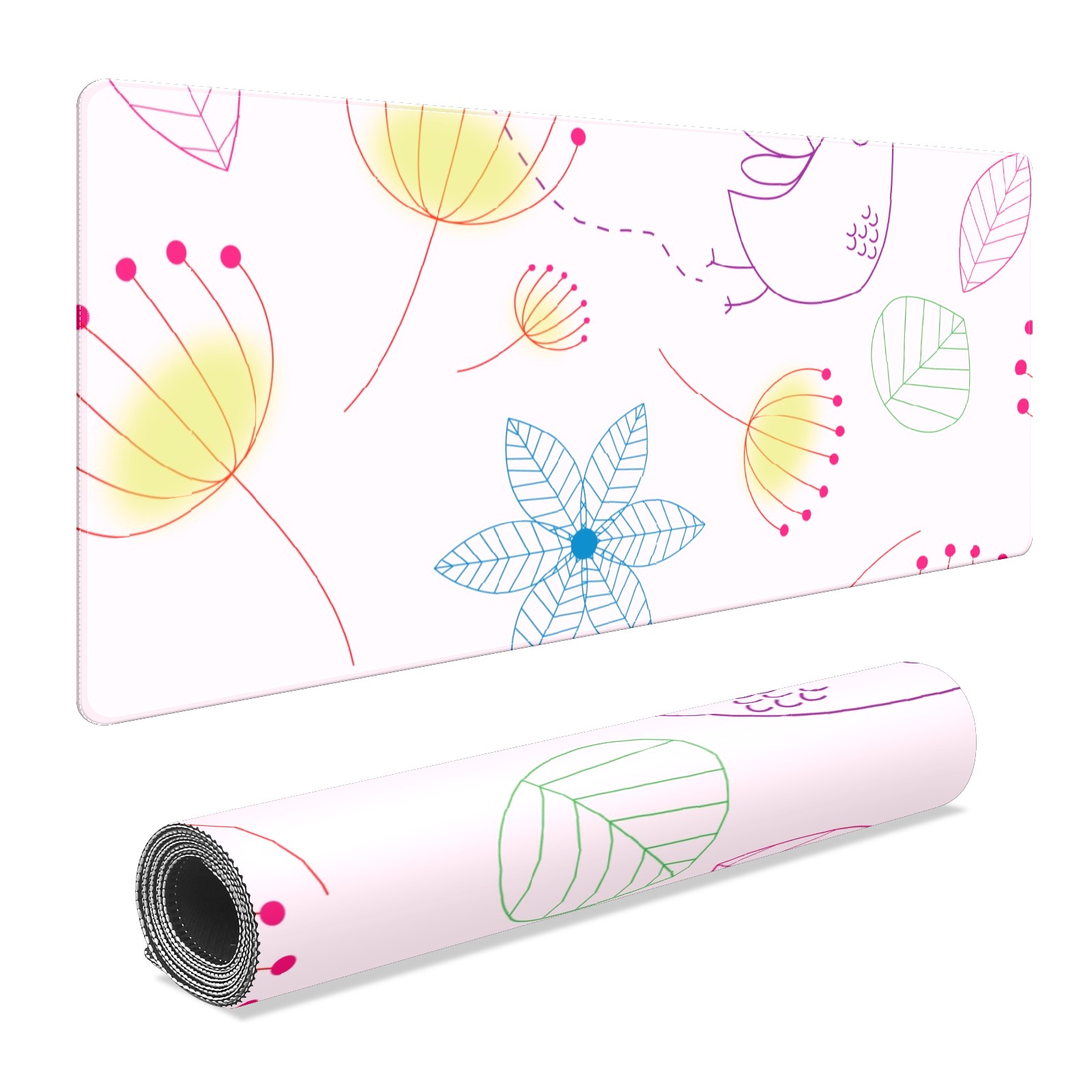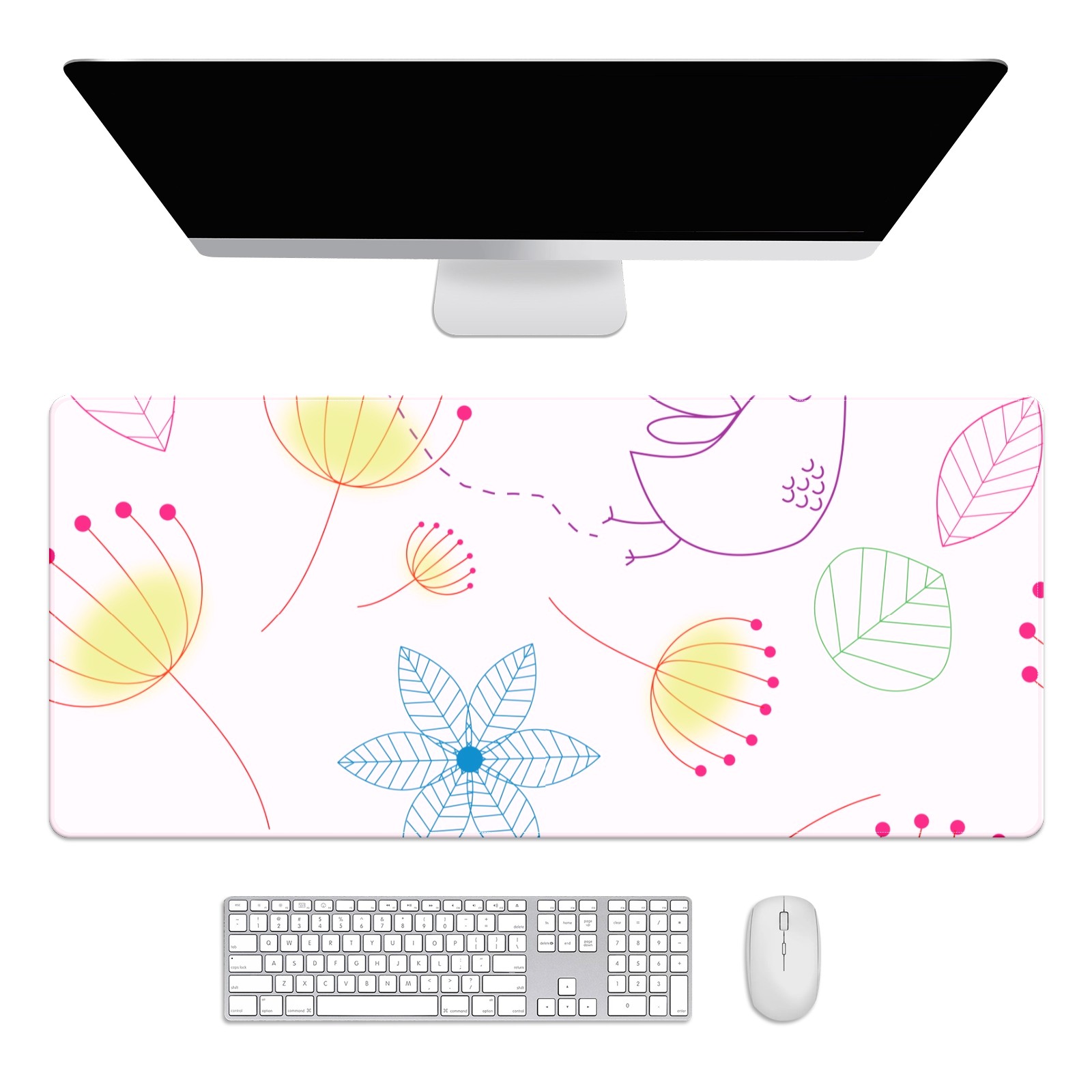 Large Mouse Pad for Desktop, Cute Desk Mat Pad Protector for Work & Gaming, Aesthetic Pretty Anti-Slip Laptop Blotter Cover for Office School Home Supplies, Floral Bird , 35.4inx15.7in