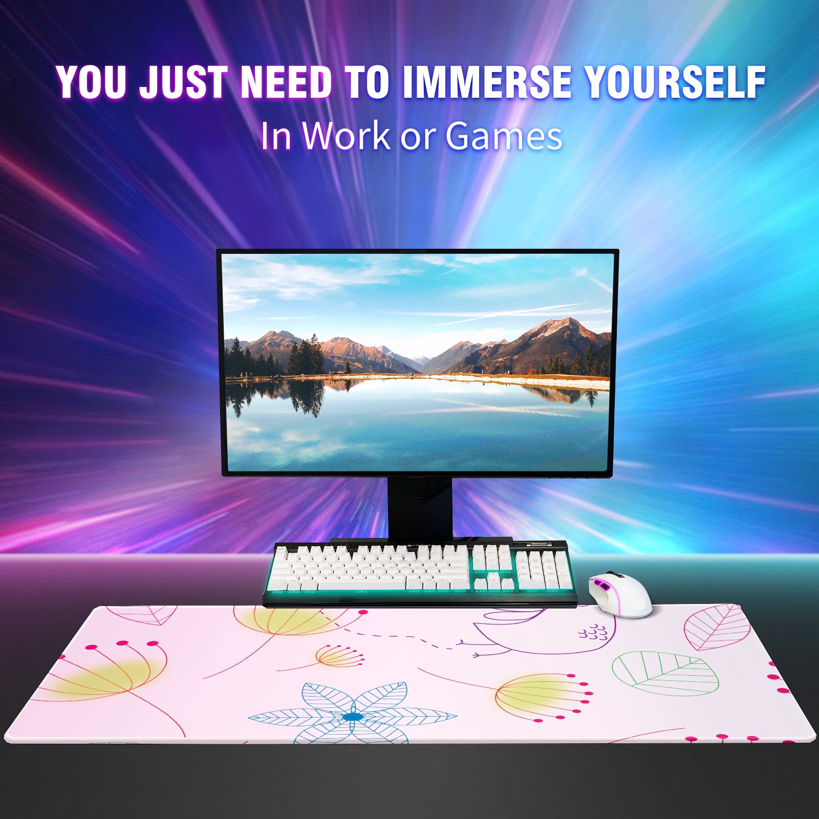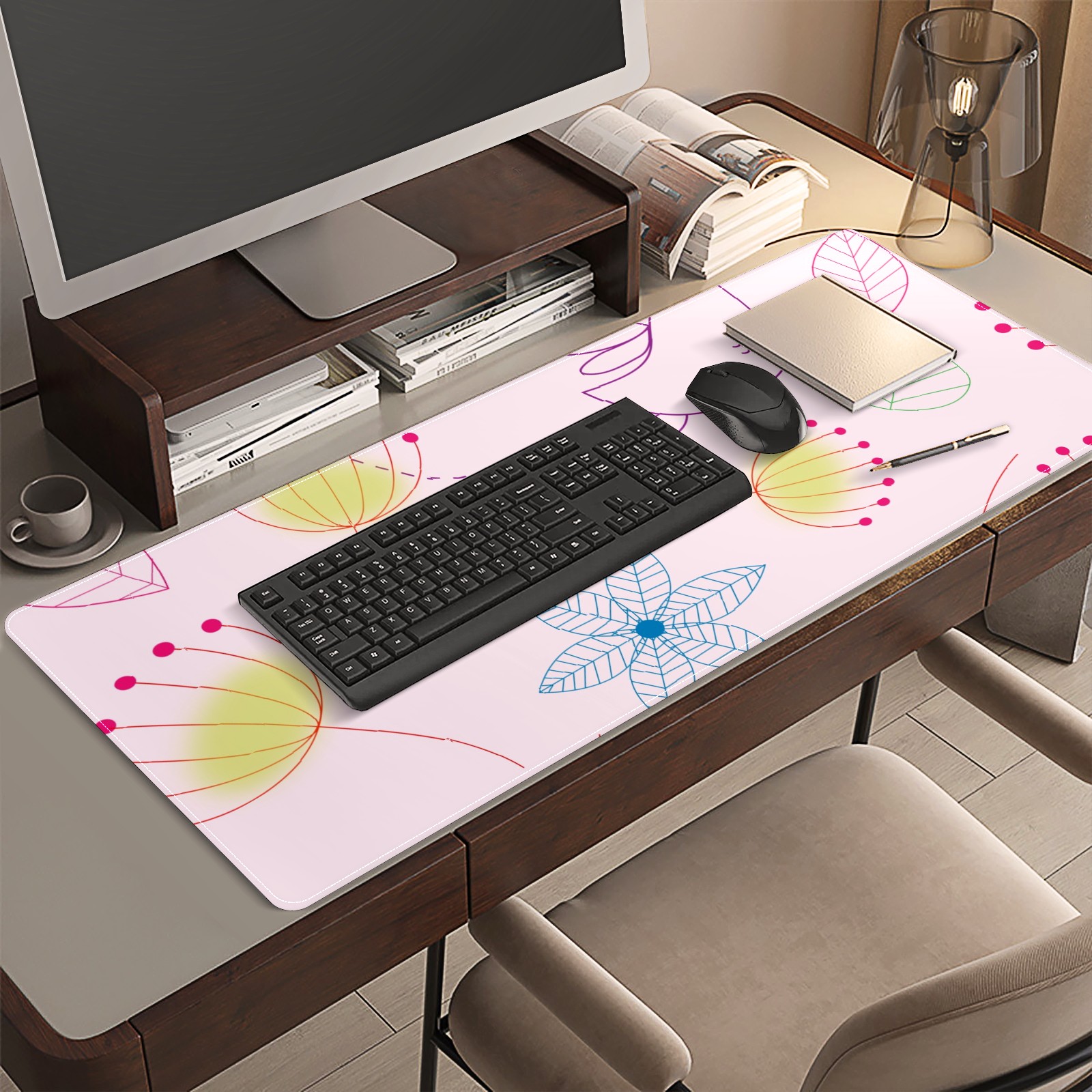<p>This 35.4” × 15.7” extended desk mat offers ample space for your keyboard, mouse and essentials, working as a smooth work/writing pad while protecting your desktop from scratches.</p><p>With stylish artistic patterns, it adds personality to your home office, study or gaming setup. The high-density woven surface ensures precise, smooth mouse tracking for work and gaming.</p><p>Featuring an anti-slip natural rubber base for firm grip and stability, the mat is soft, elastic and odorless. Reinforced stitched edges prevent fraying and curling for long-lasting durability.</p>