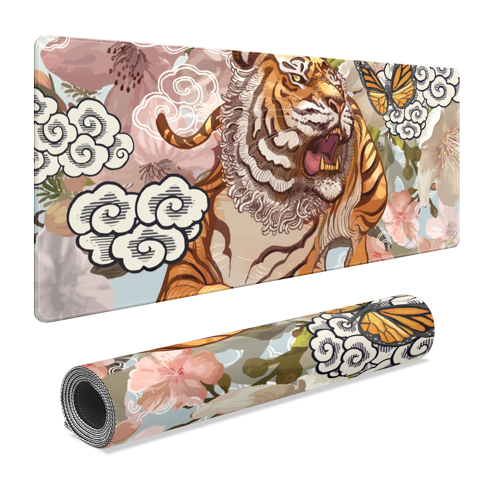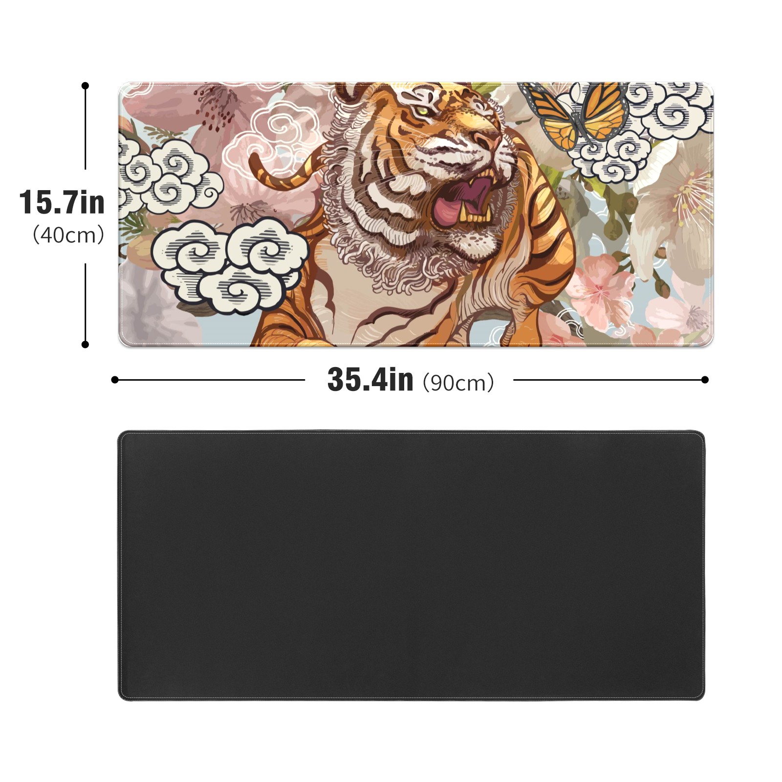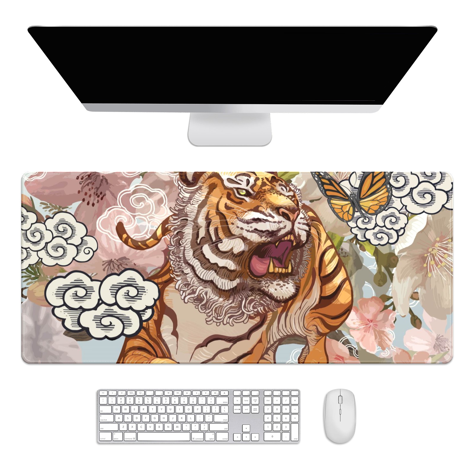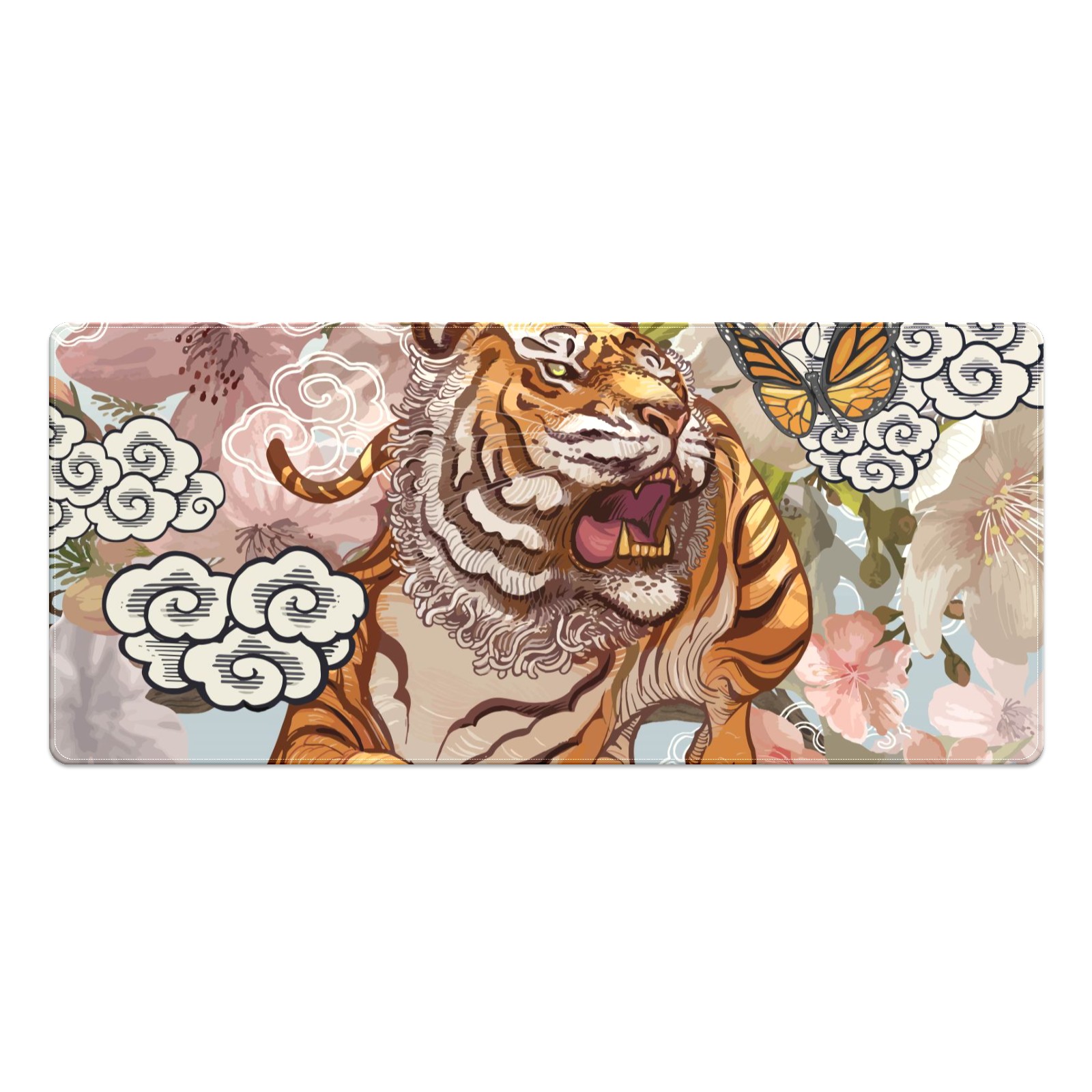 Large Mouse Pad for Desktop, Cute Desk Mat Pad Protector for Work & Gaming, Aesthetic Pretty Anti-Slip Laptop Blotter Cover for Office School Home Supplies, Ferocious Tiger , 35.4inx15.7in