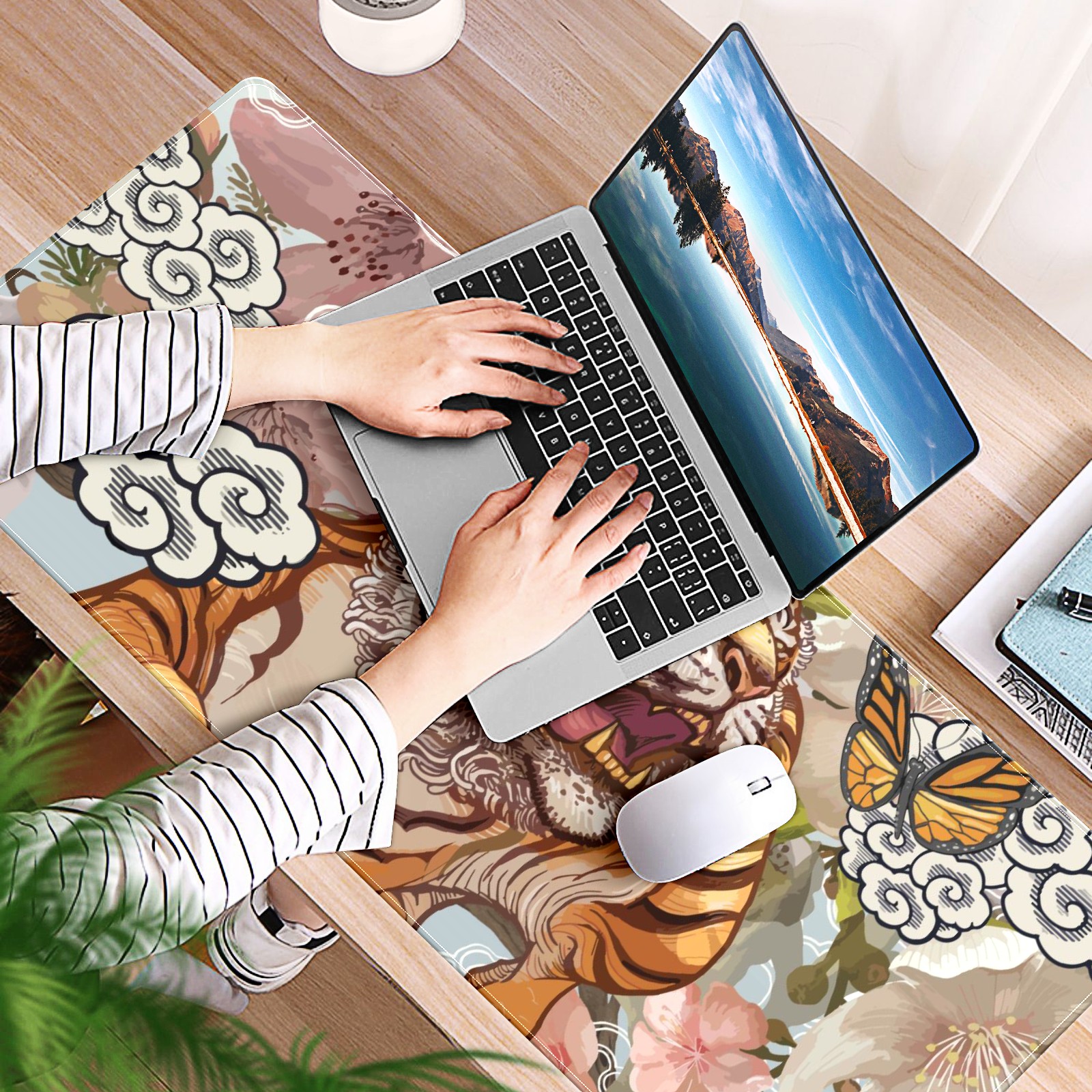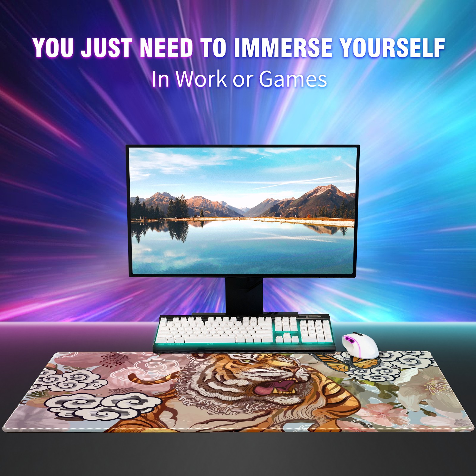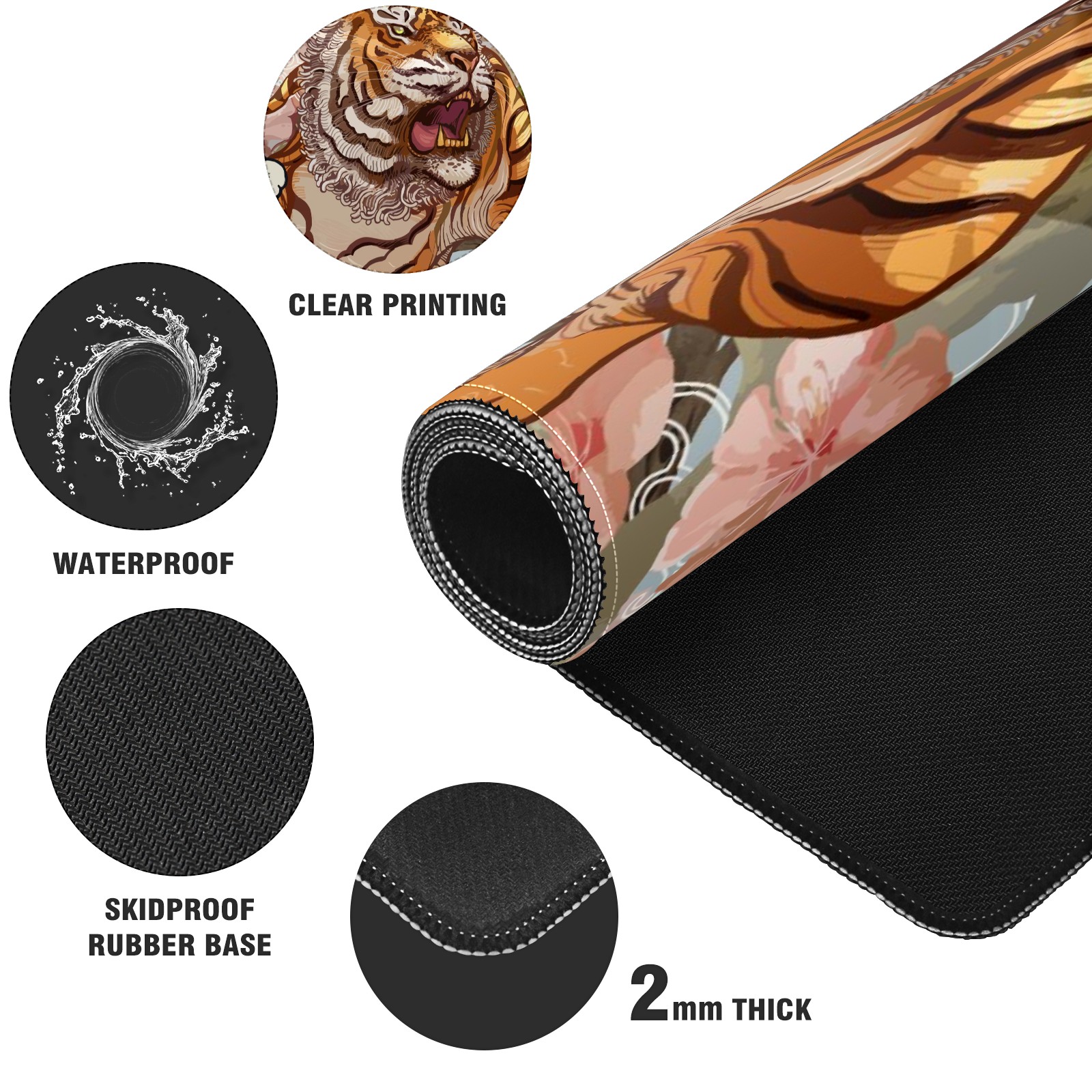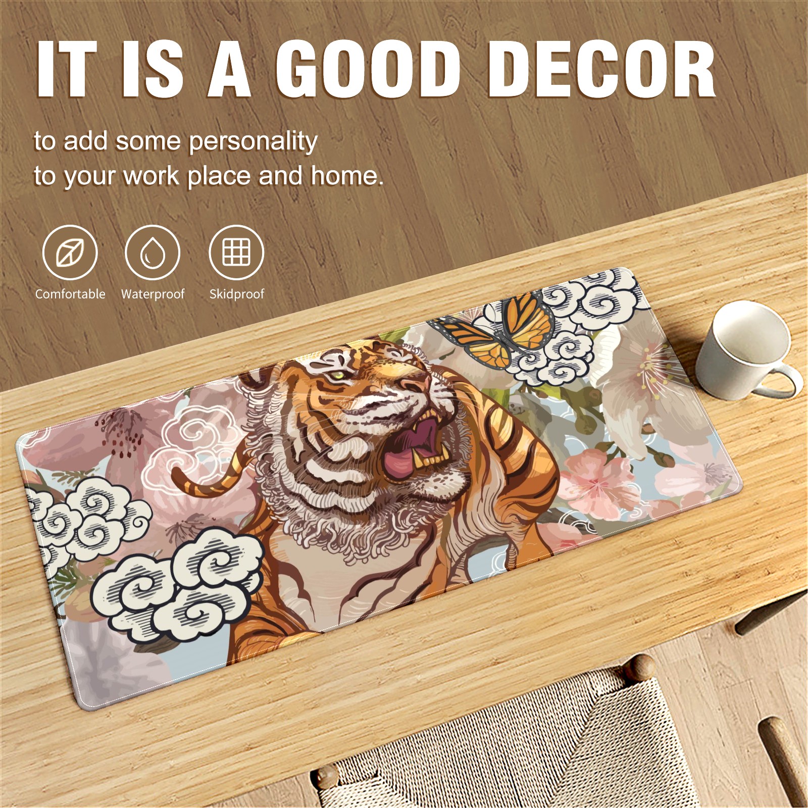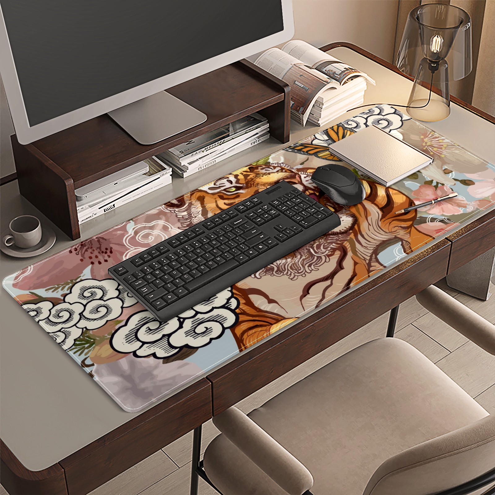 Large Mouse Pad for Desktop, Cute Desk Mat Pad Protector for Work & Gaming, Aesthetic Pretty Anti-Slip Laptop Blotter Cover for Office School Home Supplies, Ferocious Tiger , 35.4inx15.7in