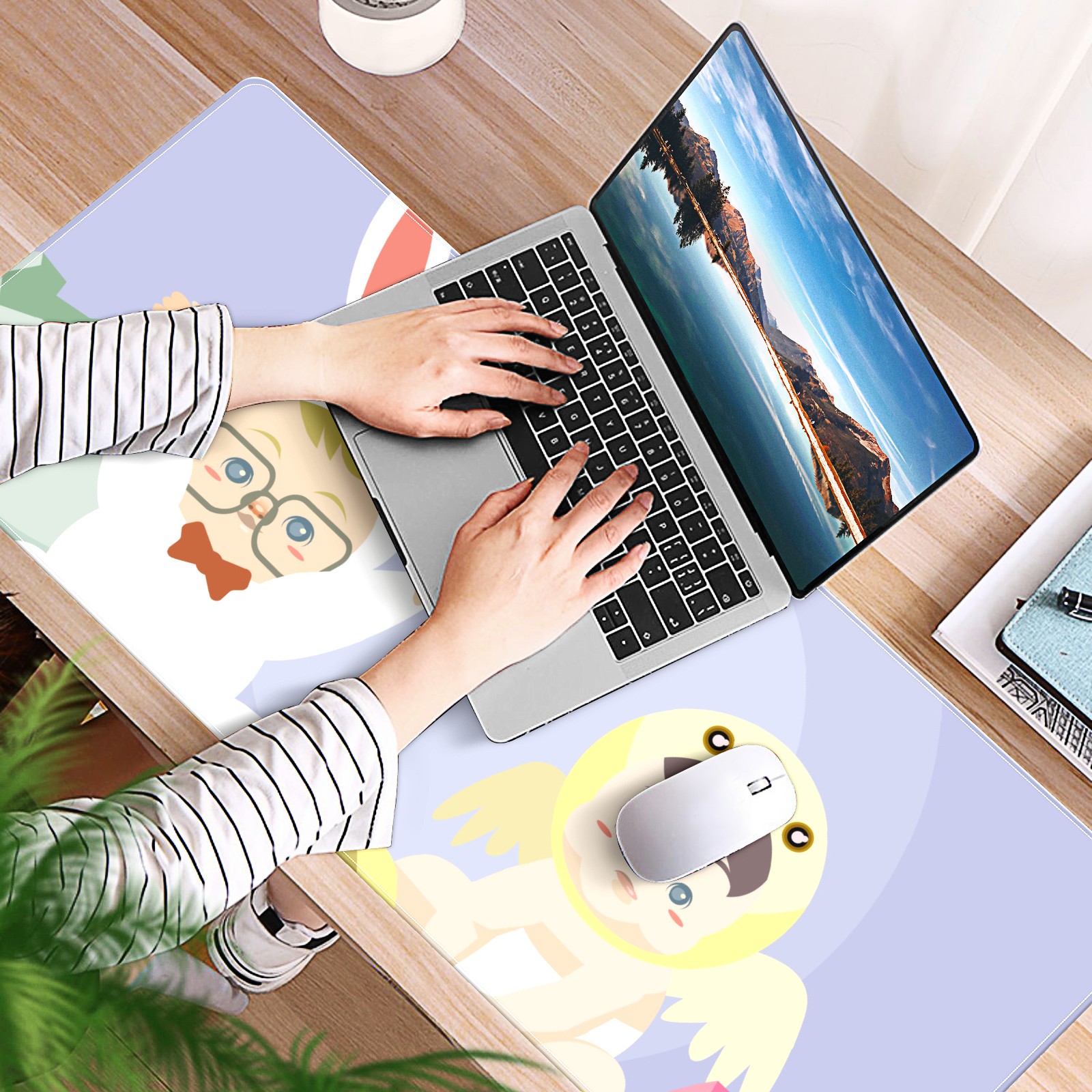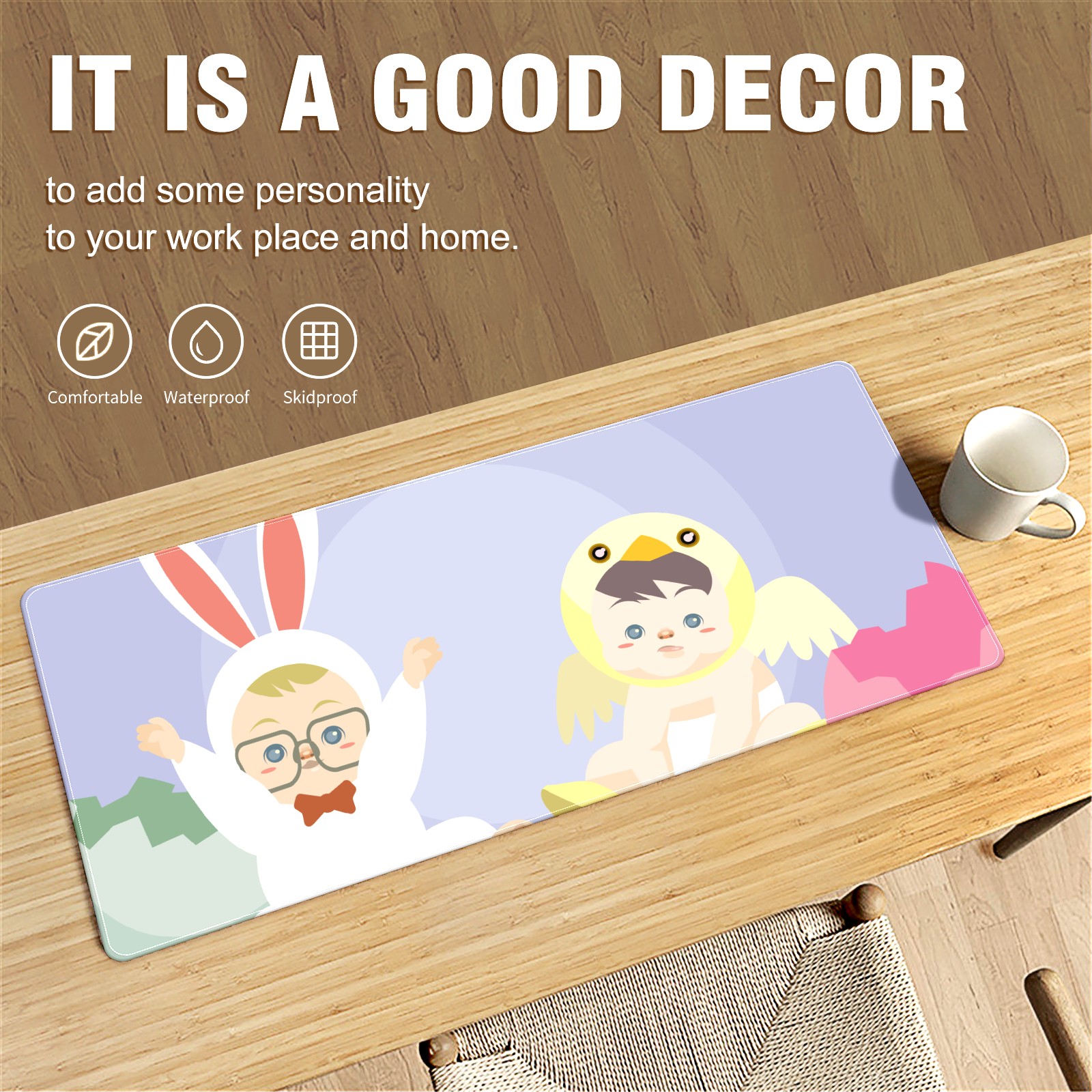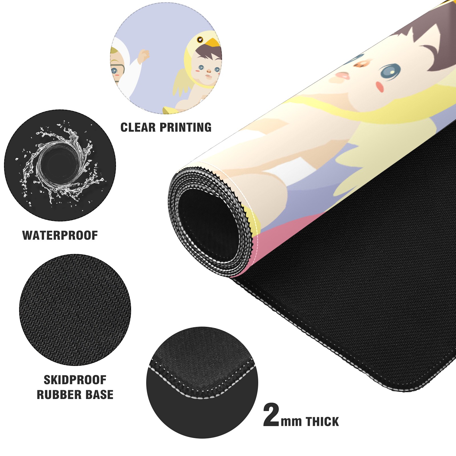 Large Mouse Pad for Desktop, Cute Desk Mat Pad Protector for Work & Gaming, Aesthetic Pretty Anti-Slip Laptop Blotter Cover for Office School Home Supplies, Cute Baby , 35.4inx15.7in