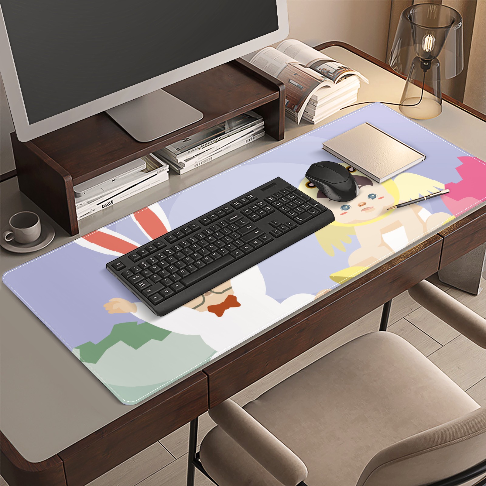 <p>This 35.4” × 15.7” extended desk mat offers ample space for your keyboard, mouse and essentials, working as a smooth work/writing pad while protecting your desktop from scratches.</p><p>With stylish artistic patterns, it adds personality to your home office, study or gaming setup. The high-density woven surface ensures precise, smooth mouse tracking for work and gaming.</p><p>Featuring an anti-slip natural rubber base for firm grip and stability, the mat is soft, elastic and odorless. Reinforced stitched edges prevent fraying and curling for long-lasting durability.</p>