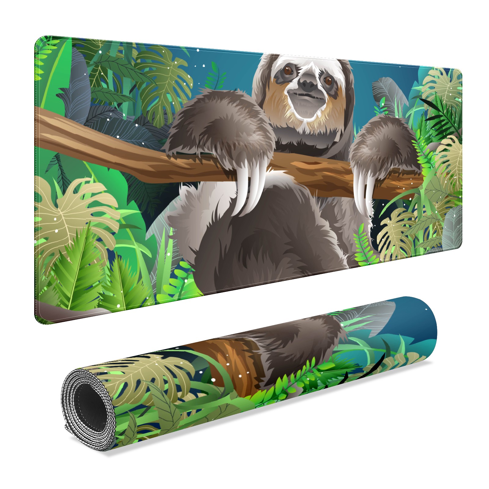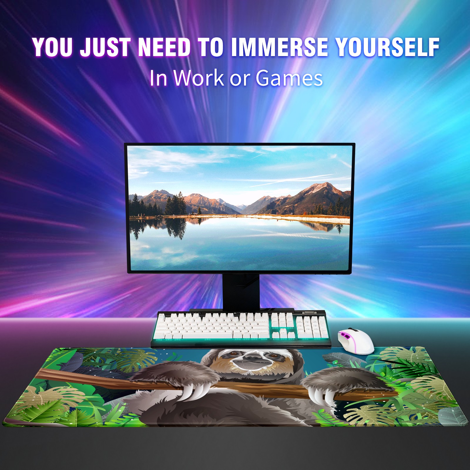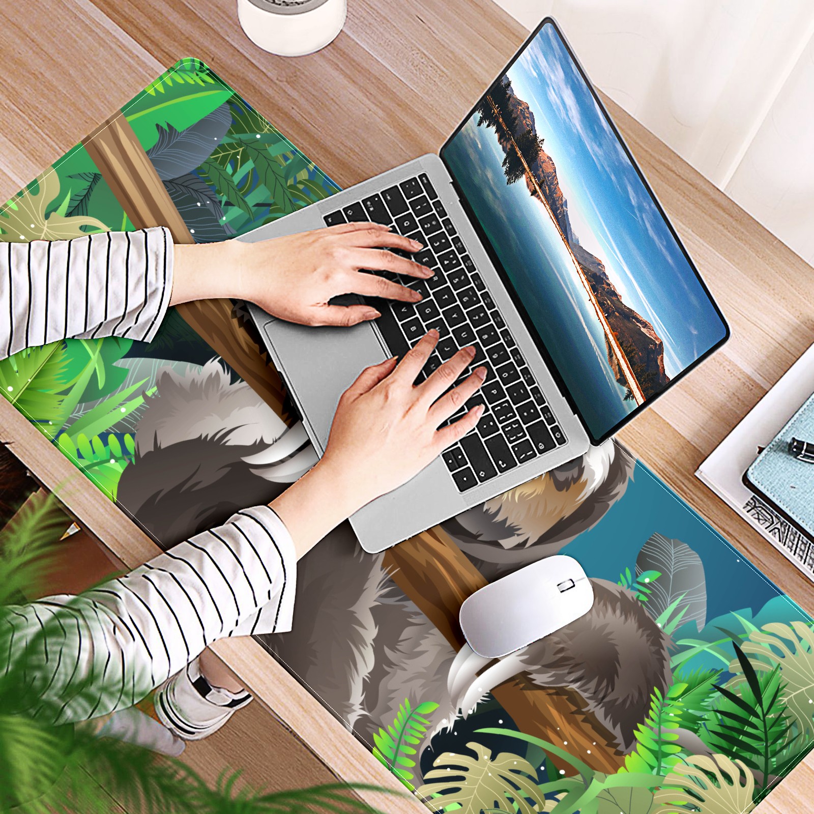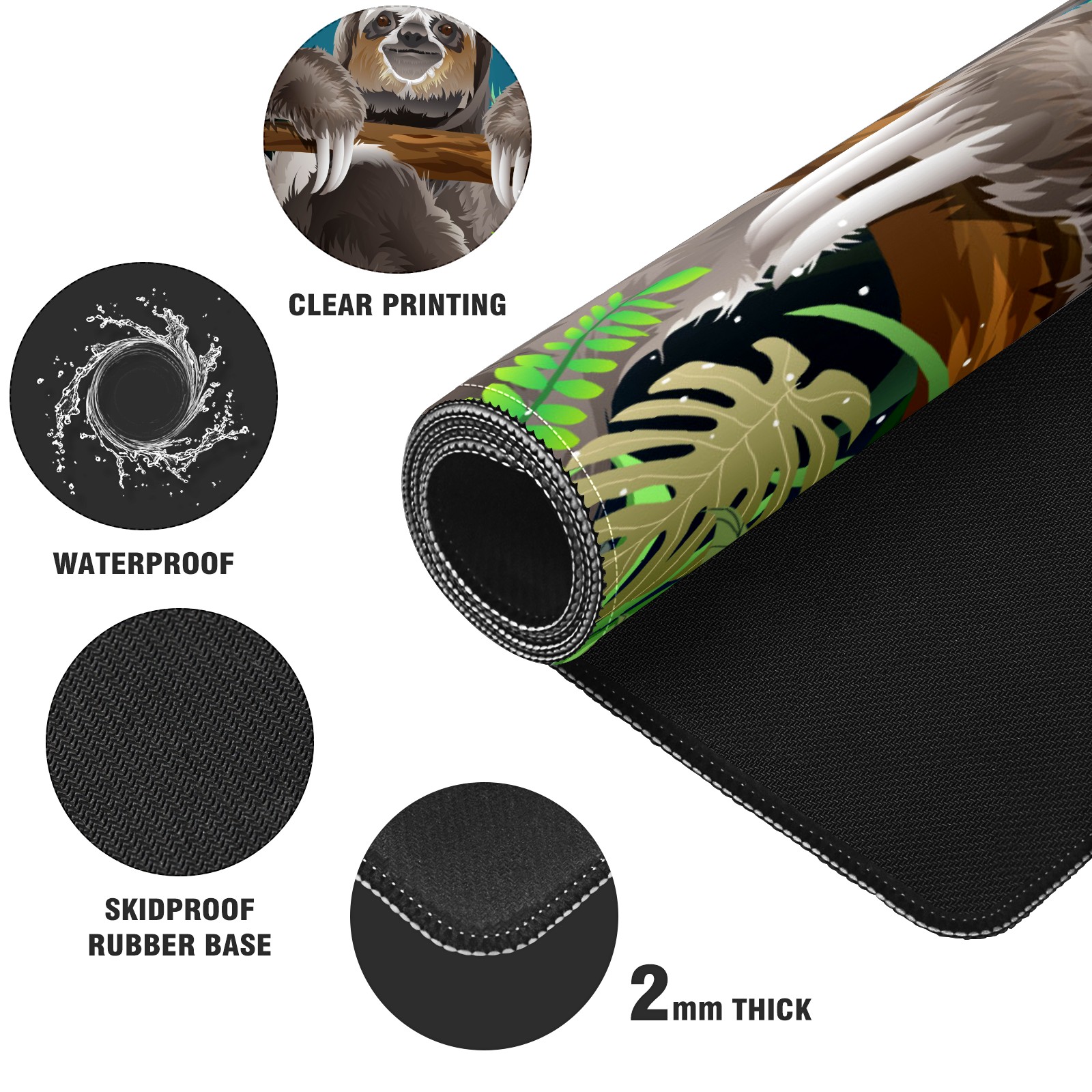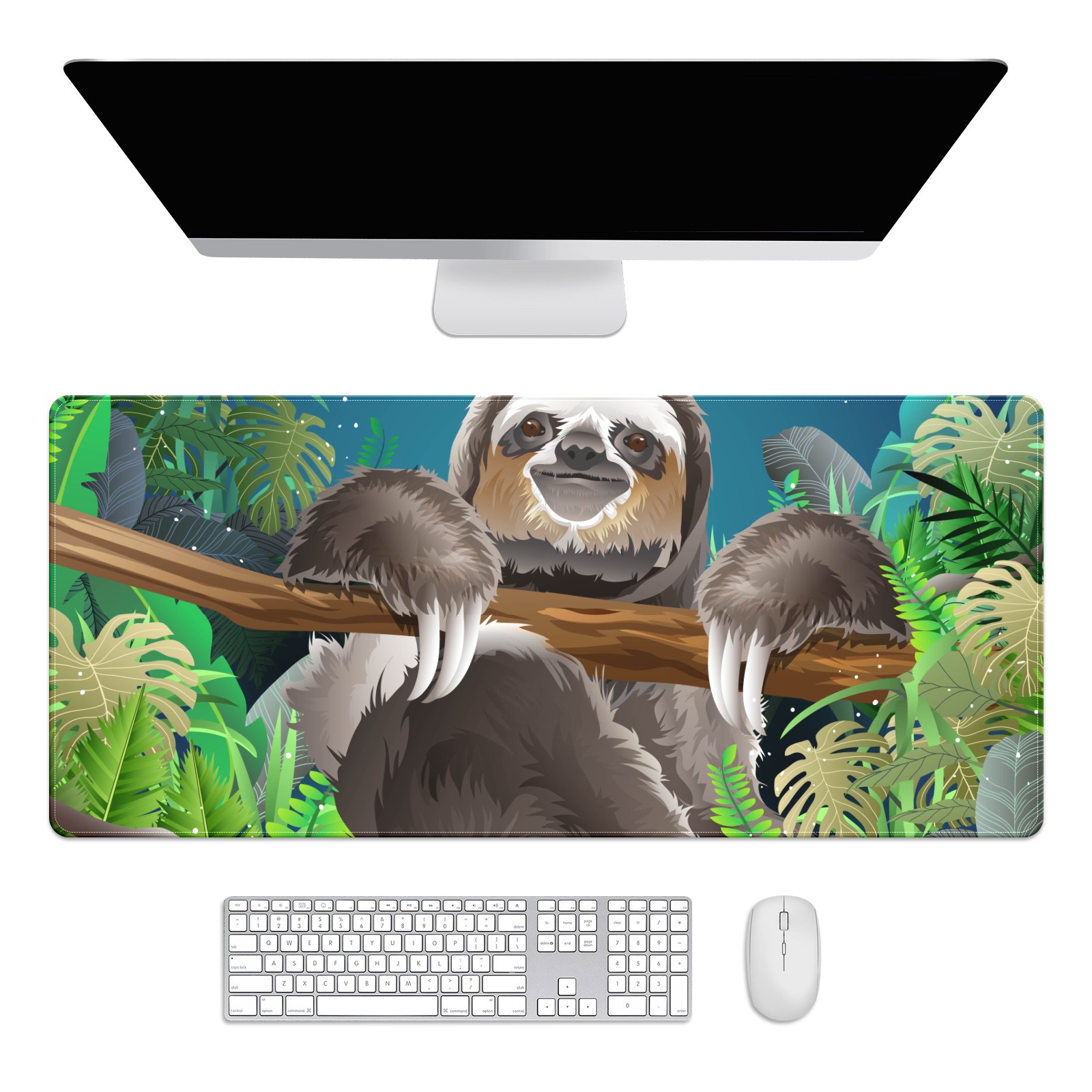 Large Mouse Pad for Desktop, Cute Desk Mat Pad Protector for Work & Gaming, Aesthetic Pretty Anti-Slip Laptop Blotter Cover for Office School Home Supplies, Relax Sloth , 35.4inx15.7in