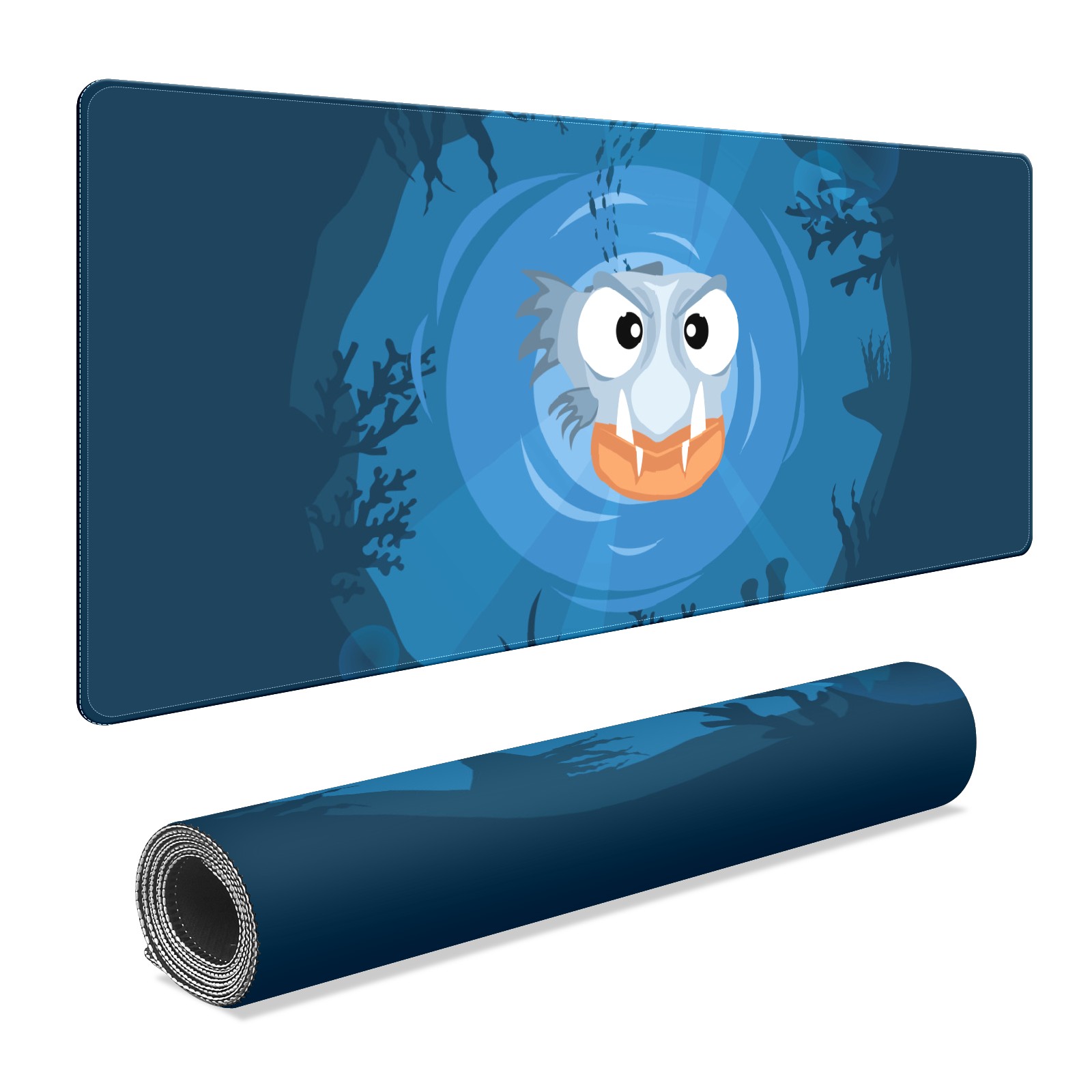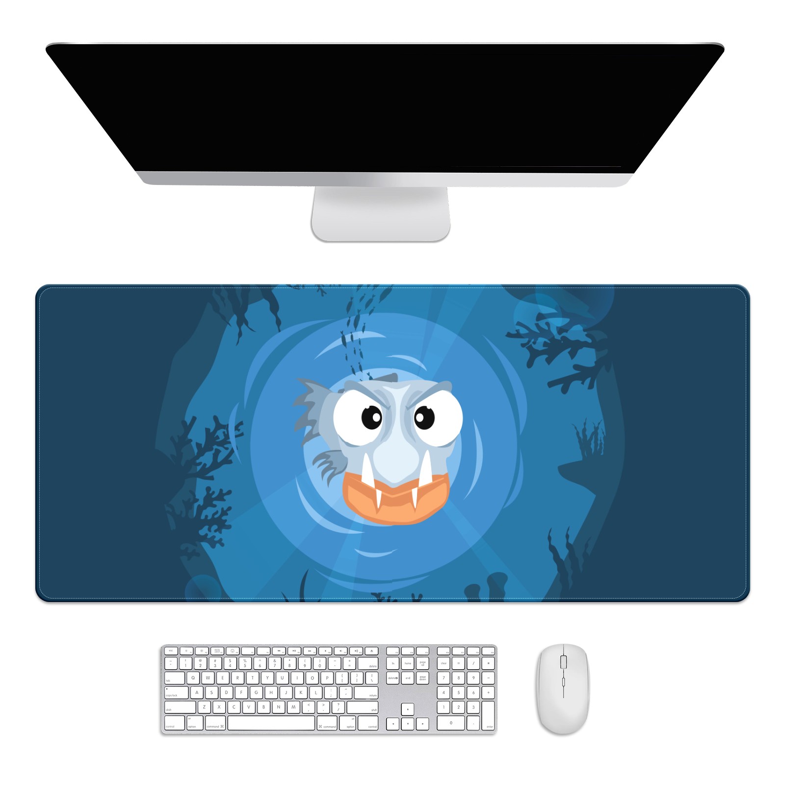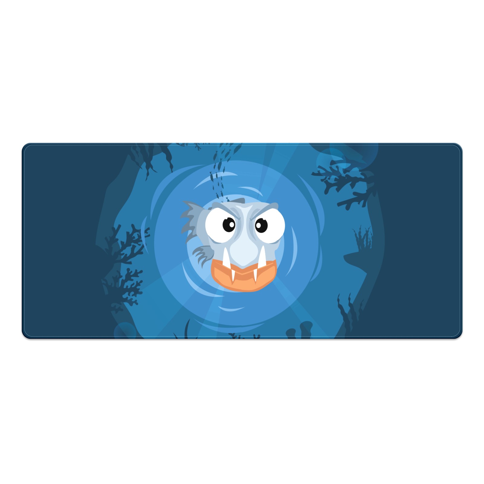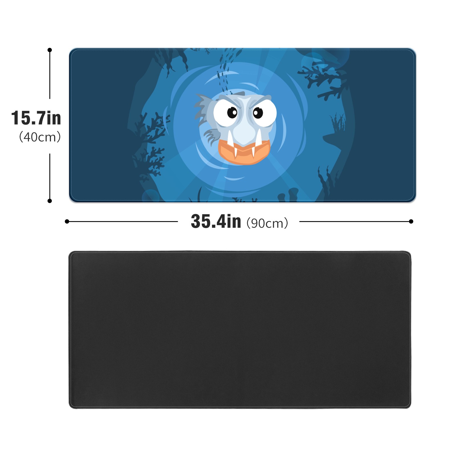Large Mouse Pad for Desktop, Cute Desk Mat Pad Protector for Work & Gaming, Aesthetic Pretty Anti-Slip Laptop Blotter Cover for Office School Home Supplies, Blue Piranha , 35.4inx15.7in