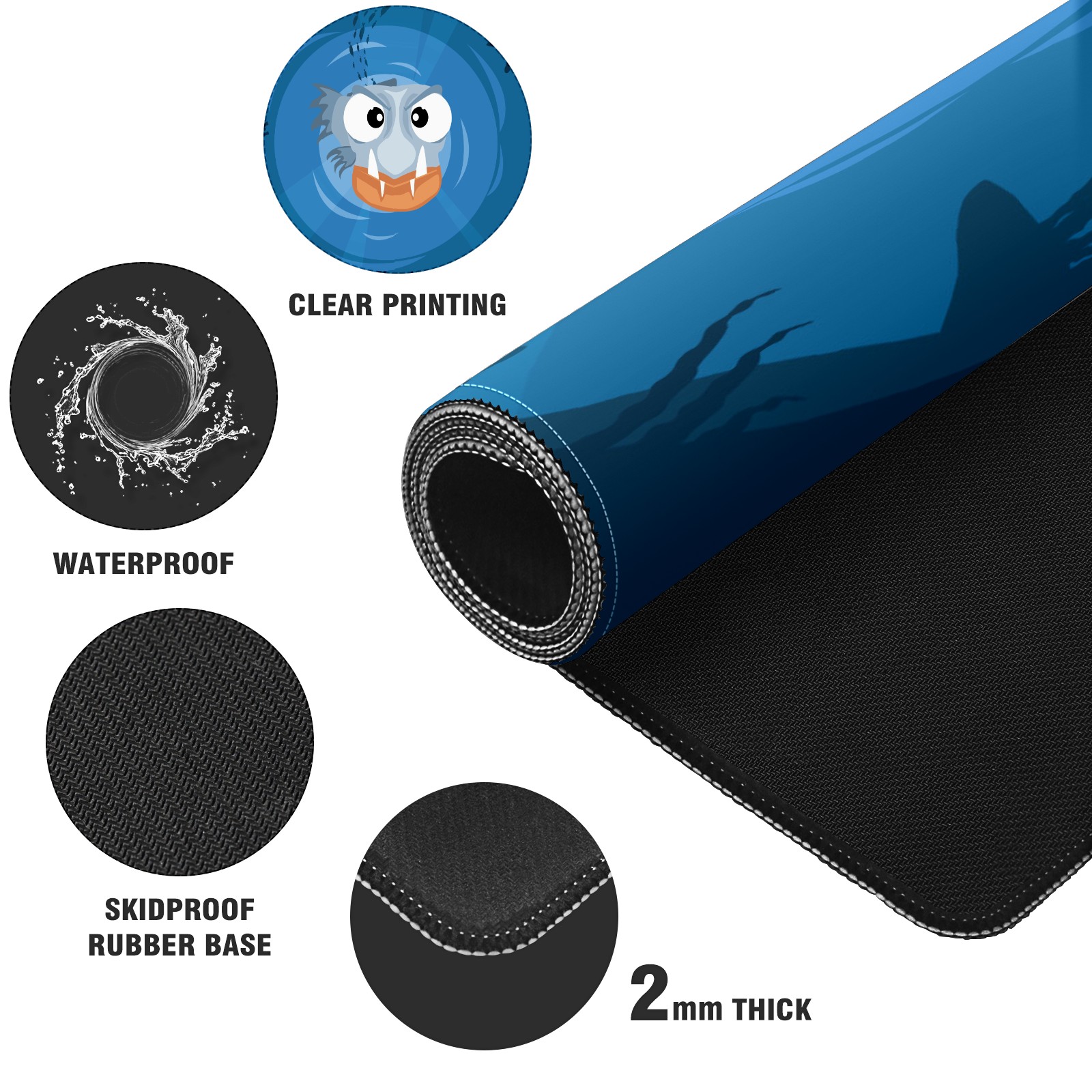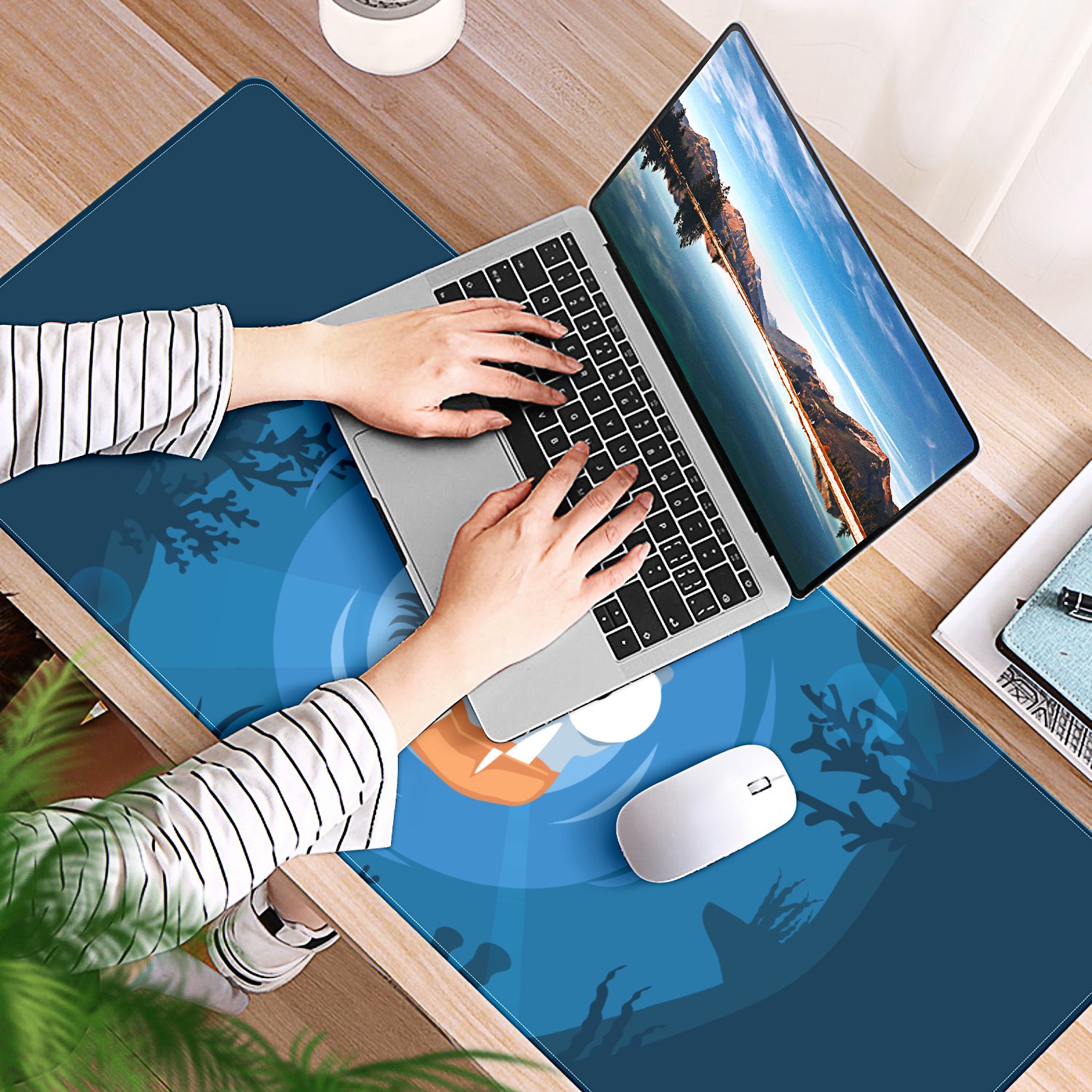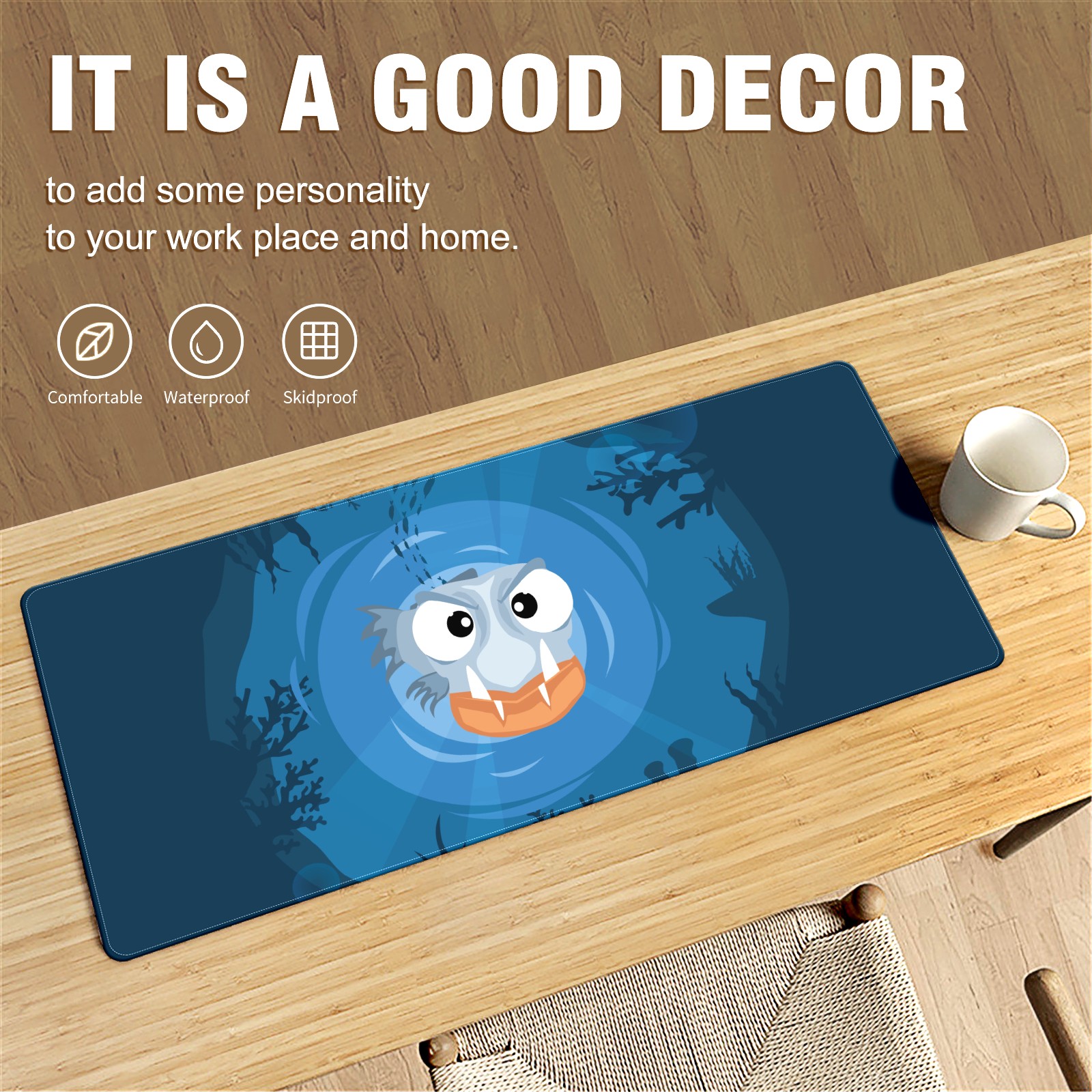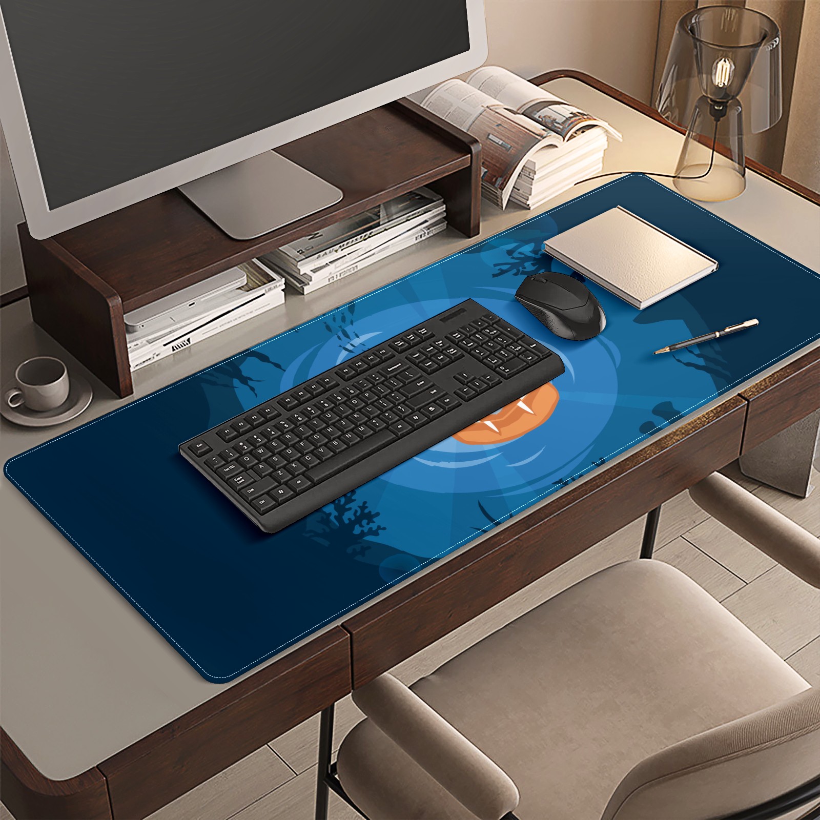Large Mouse Pad for Desktop, Cute Desk Mat Pad Protector for Work & Gaming, Aesthetic Pretty Anti-Slip Laptop Blotter Cover for Office School Home Supplies, Blue Piranha , 35.4inx15.7in