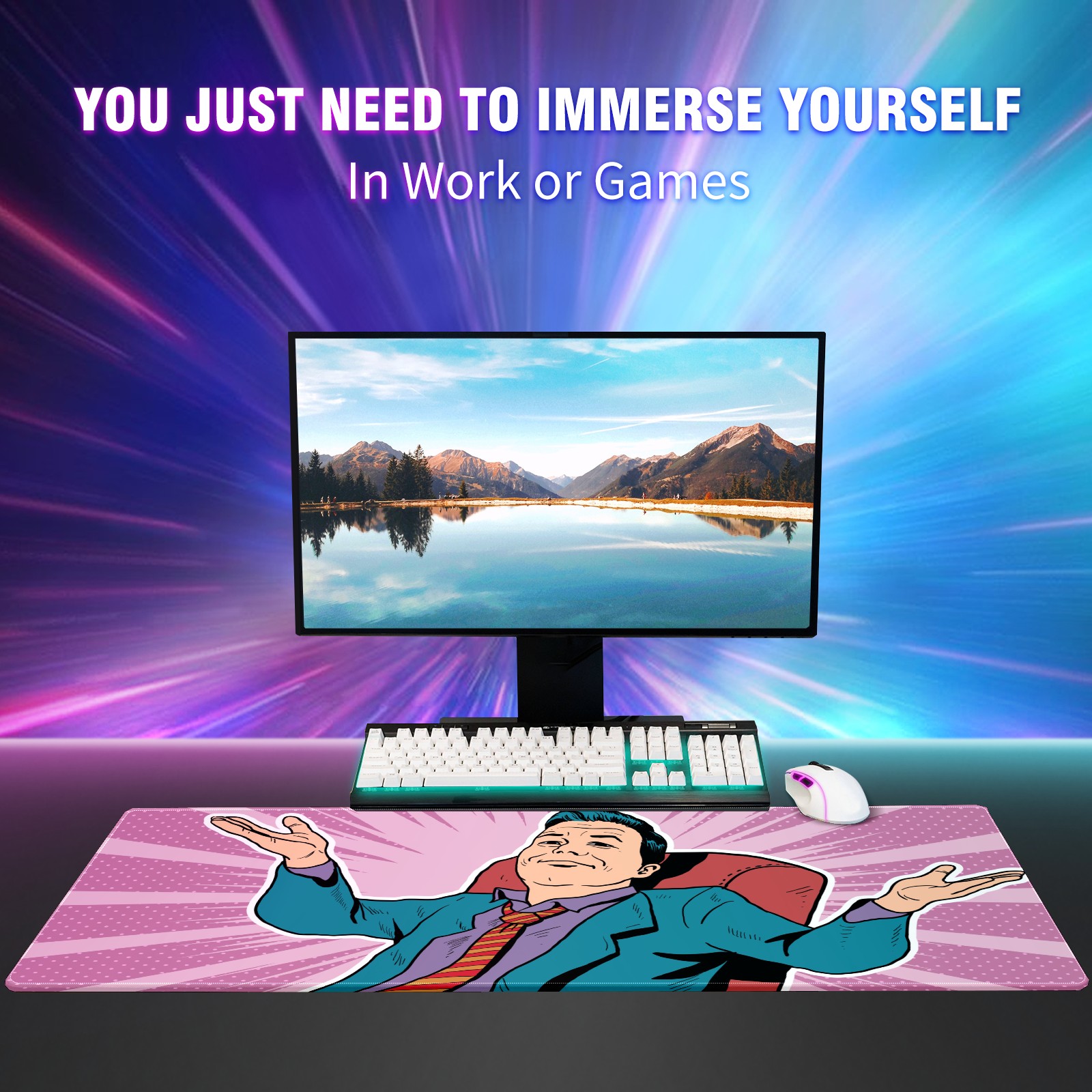Large Mouse Pad for Desktop, Cute Desk Mat Pad Protector for Work & Gaming, Aesthetic Pretty Anti-Slip Laptop Blotter Cover for Office School Home Supplies, Business Man , 35.4inx15.7in
