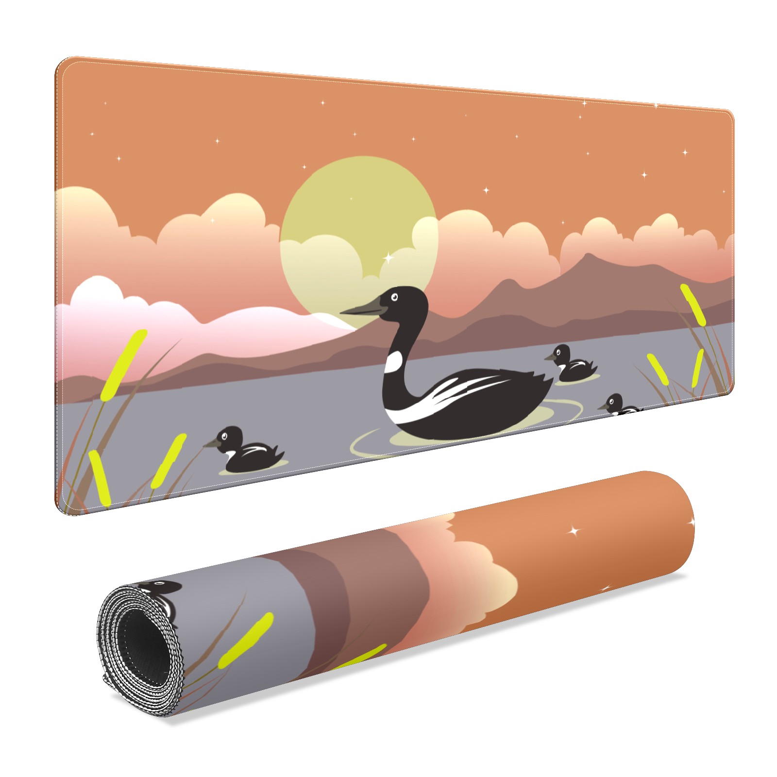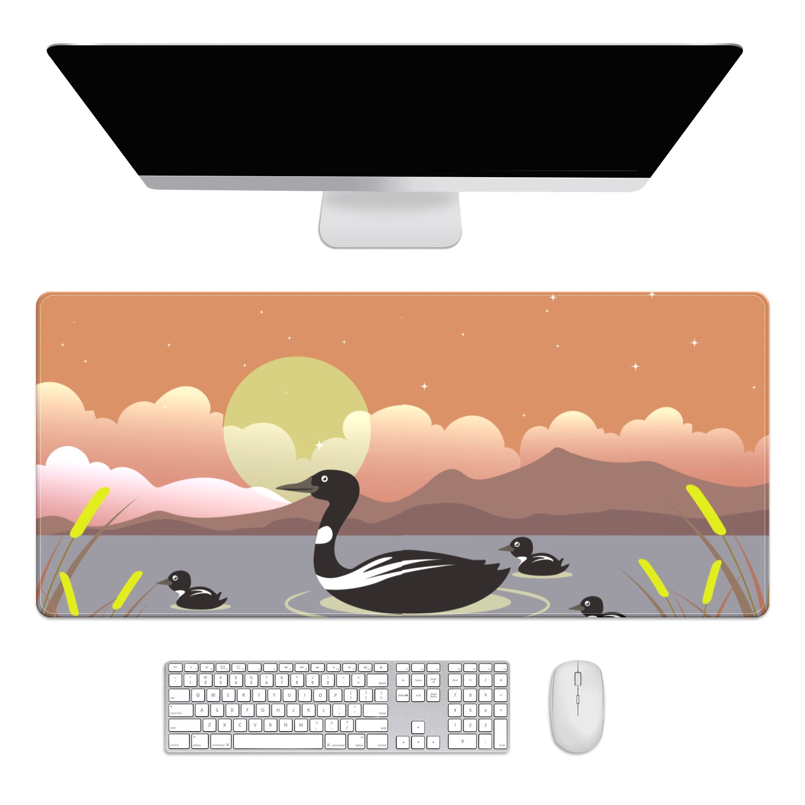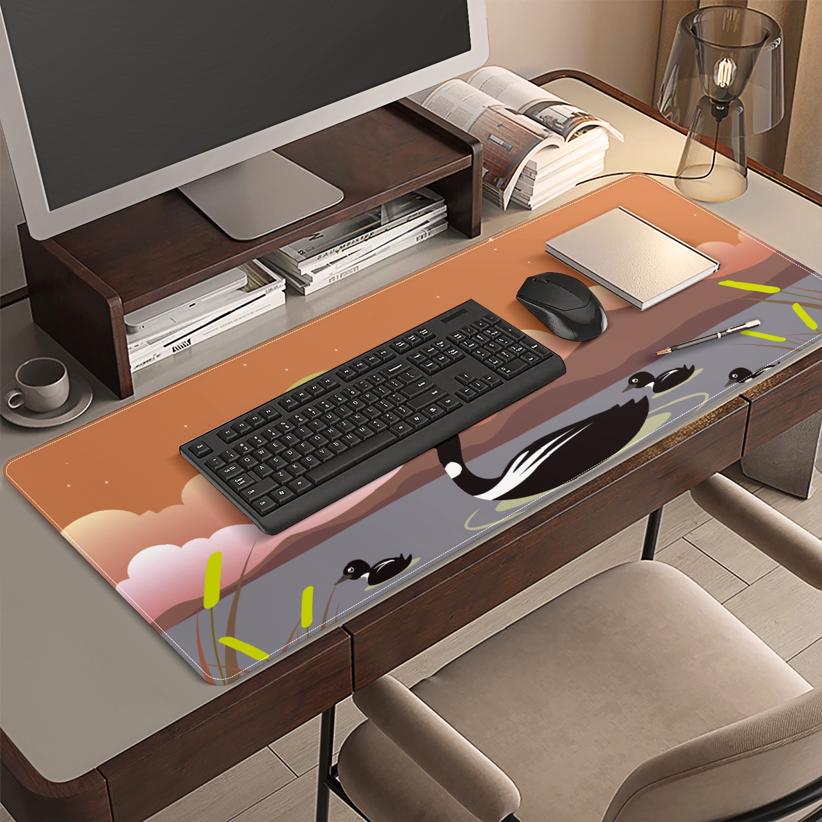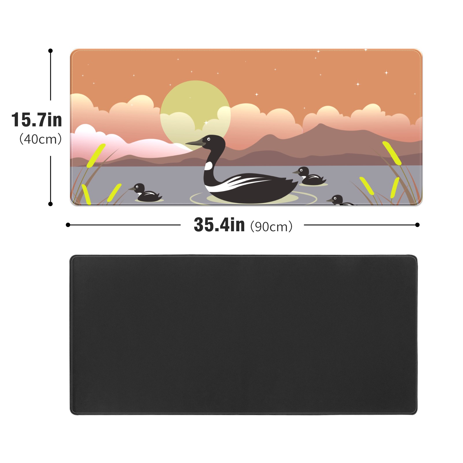 Large Mouse Pad for Desktop, Cute Desk Mat Pad Protector for Work & Gaming, Aesthetic Pretty Anti-Slip Laptop Blotter Cover for Office School Home Supplies, Black Duck , 35.4inx15.7in