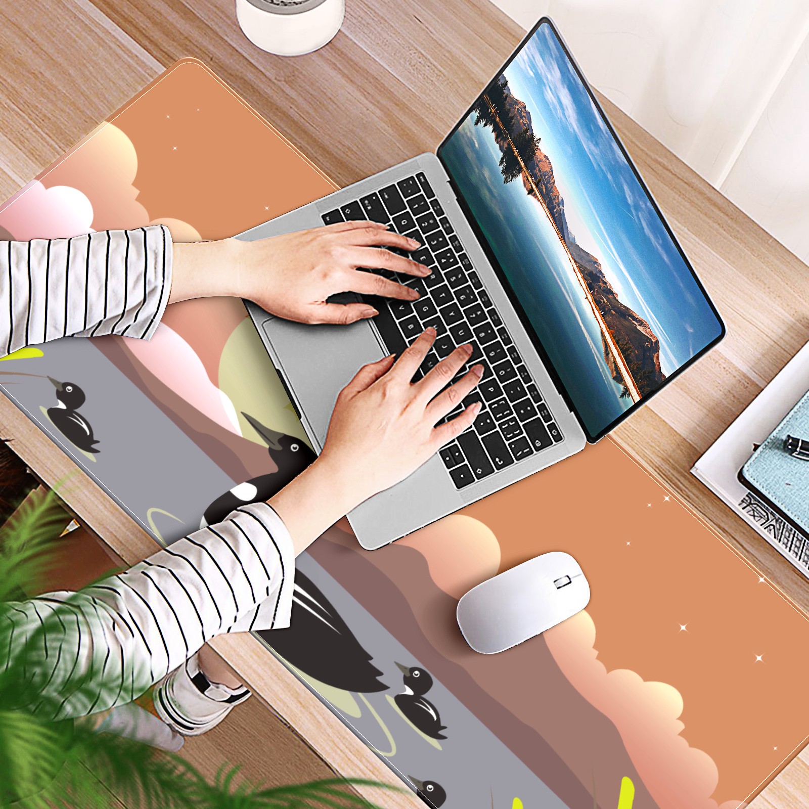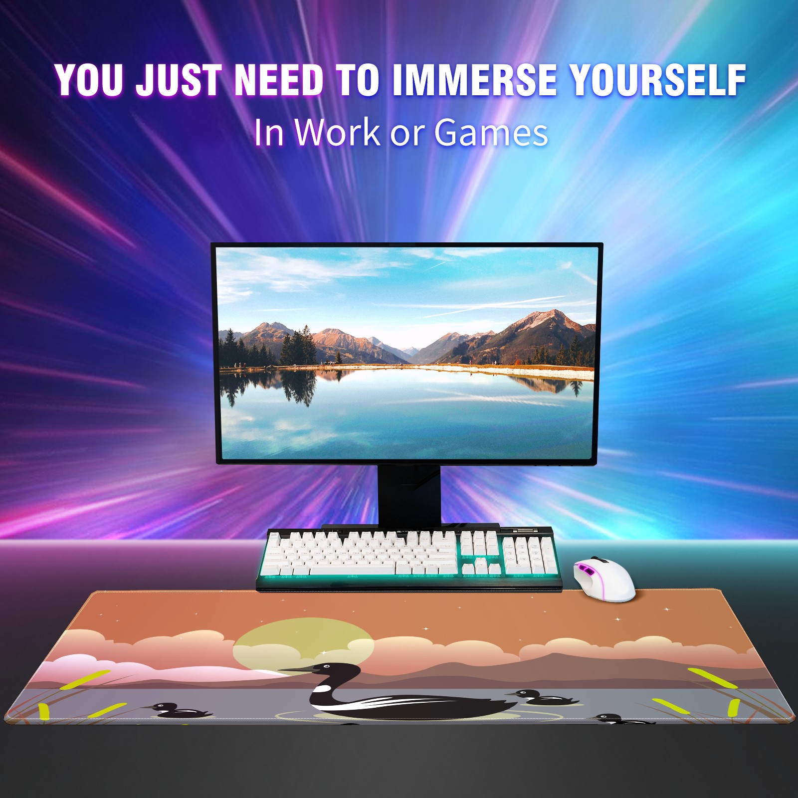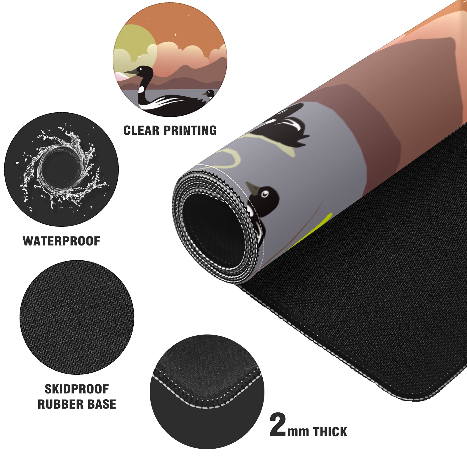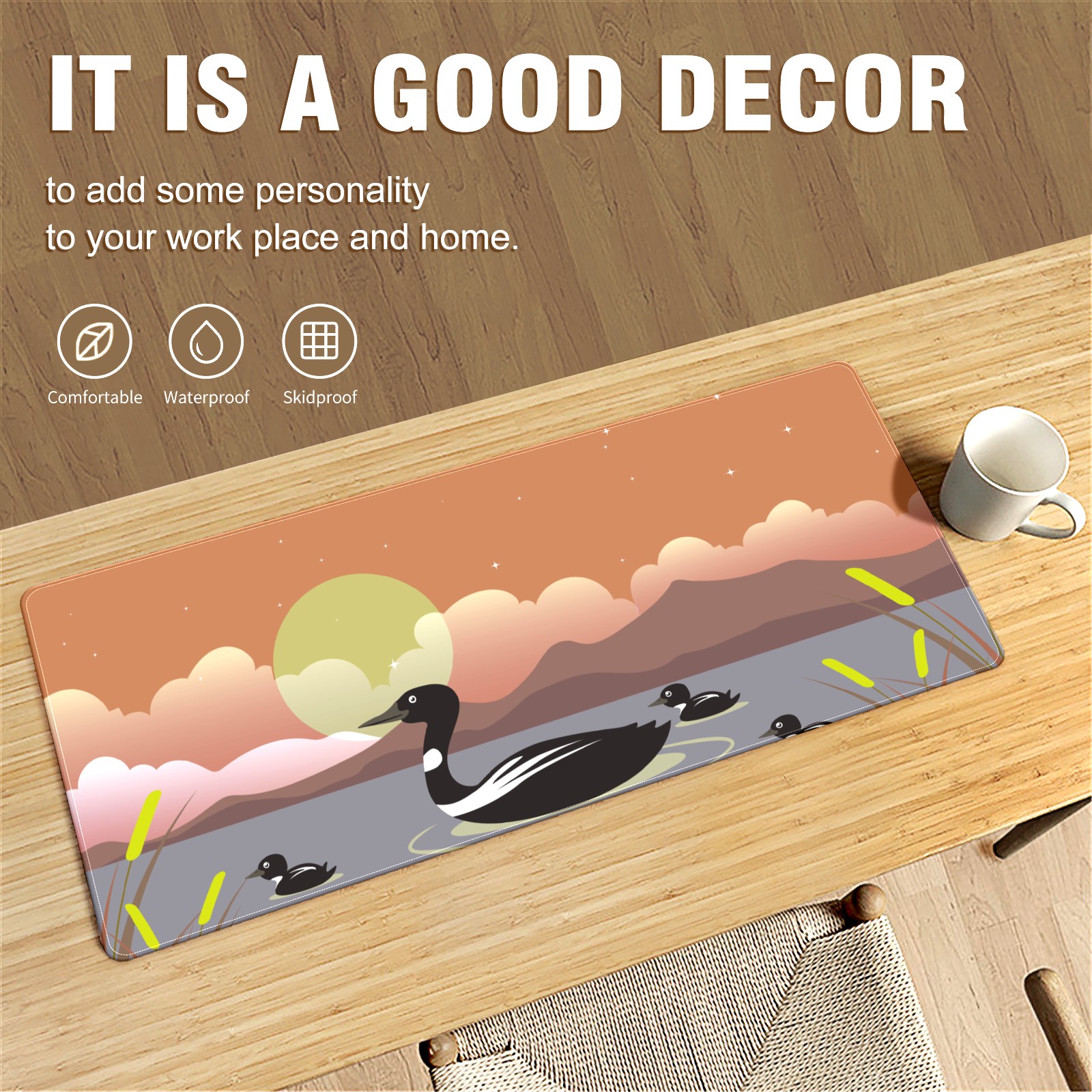 Large Mouse Pad for Desktop, Cute Desk Mat Pad Protector for Work & Gaming, Aesthetic Pretty Anti-Slip Laptop Blotter Cover for Office School Home Supplies, Black Duck , 35.4inx15.7in