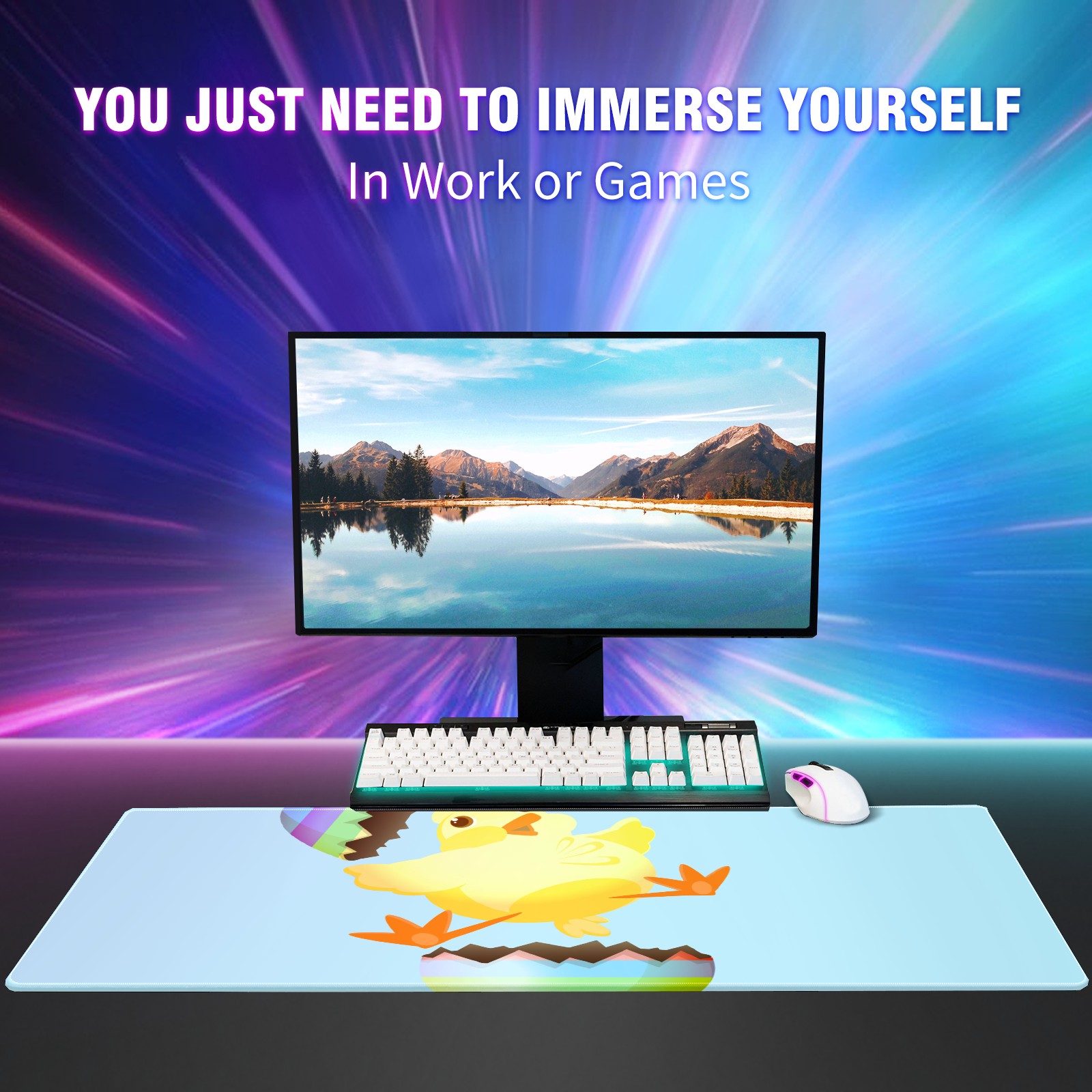 Large Mouse Pad for Desktop, Cute Desk Mat Pad Protector for Work & Gaming, Aesthetic Pretty Anti-Slip Laptop Blotter Cover for Office School Home Supplies, Baby Chick , 35.4inx15.7in