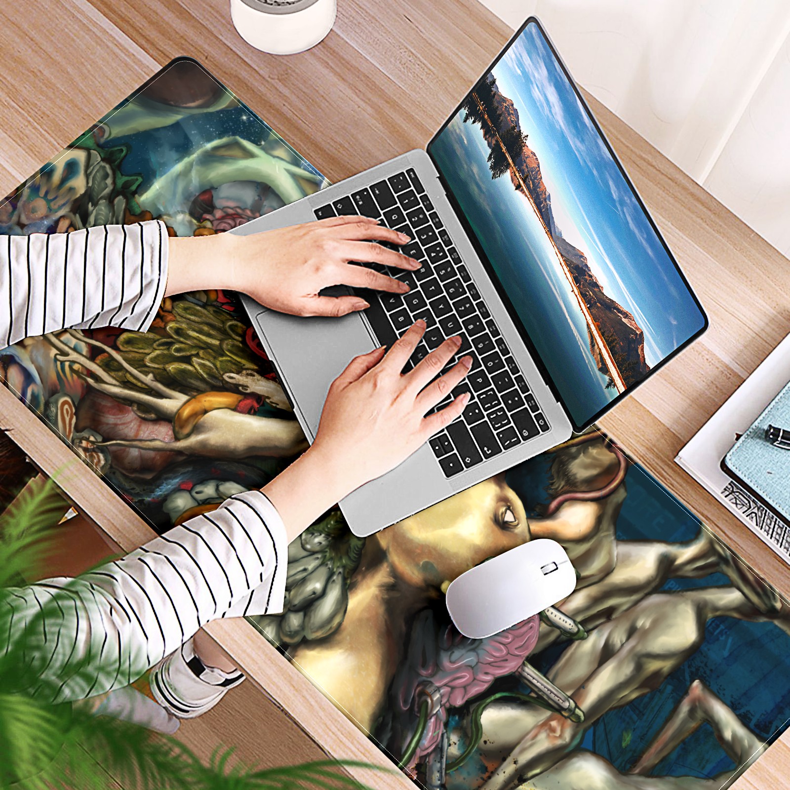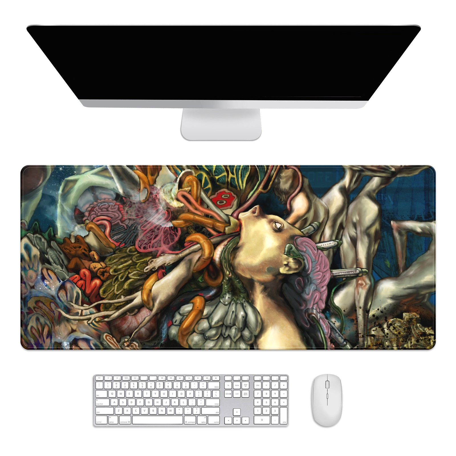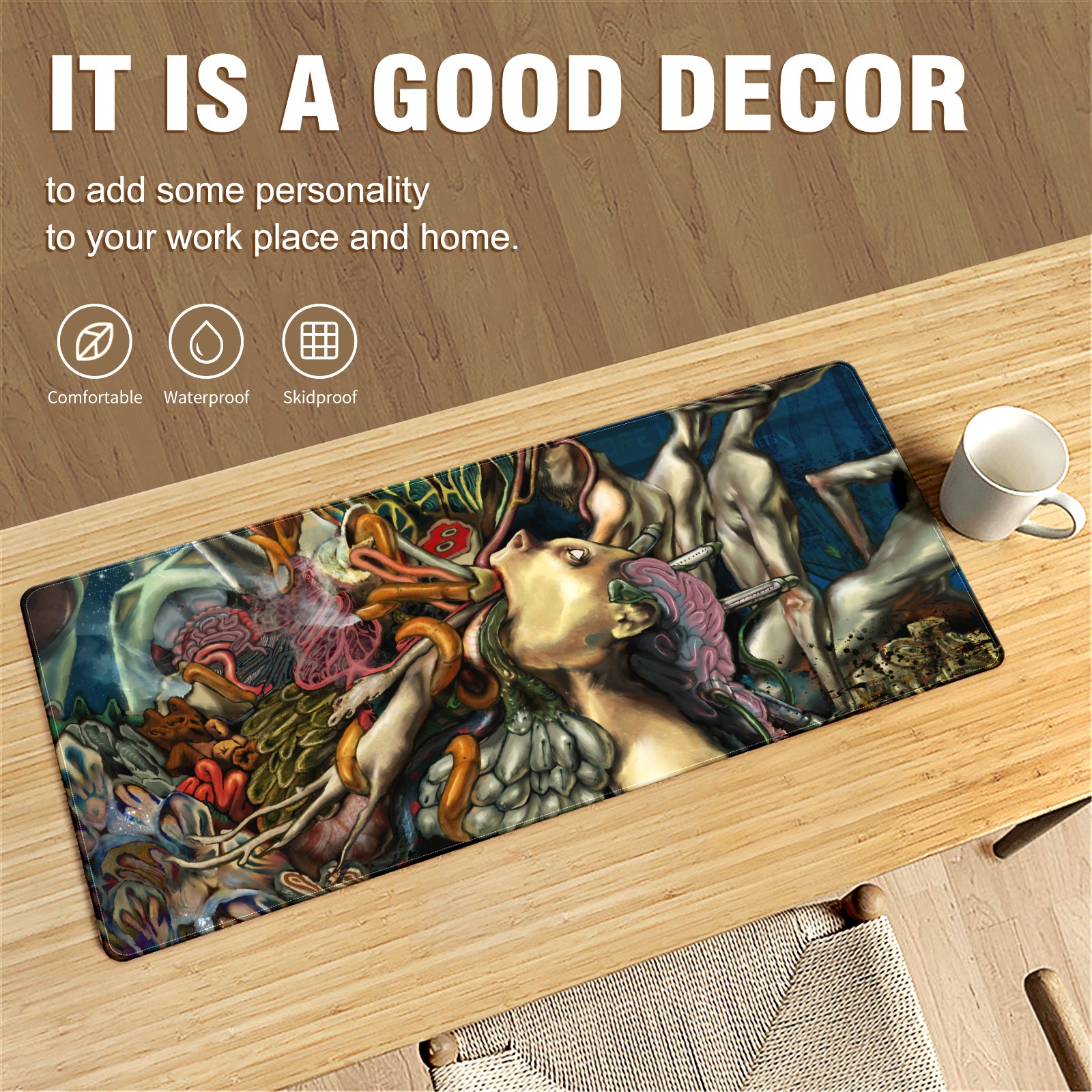 • <p>This 35.4” × 15.7” extended desk mat offers ample space for your keyboard, mouse and essentials, working as a smooth work/writing pad while protecting your desktop from scratches.</p><p>With stylish artistic patterns, it adds personality to your home office, study or gaming setup. The high-density woven surface ensures precise, smooth mouse tracking for work and gaming.</p><p>Featuring an anti-slip natural rubber base for firm grip and stability, the mat is soft, elastic and odorless. Reinforced stitched edges prevent fraying and curling for long-lasting durability.</p>