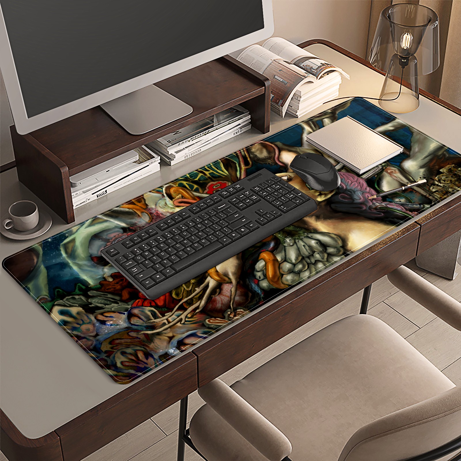 <p>This 35.4” × 15.7” extended desk mat offers ample space for your keyboard, mouse and essentials, working as a smooth work/writing pad while protecting your desktop from scratches.</p><p>With stylish artistic patterns, it adds personality to your home office, study or gaming setup. The high-density woven surface ensures precise, smooth mouse tracking for work and gaming.</p><p>Featuring an anti-slip natural rubber base for firm grip and stability, the mat is soft, elastic and odorless. Reinforced stitched edges prevent fraying and curling for long-lasting durability.</p>