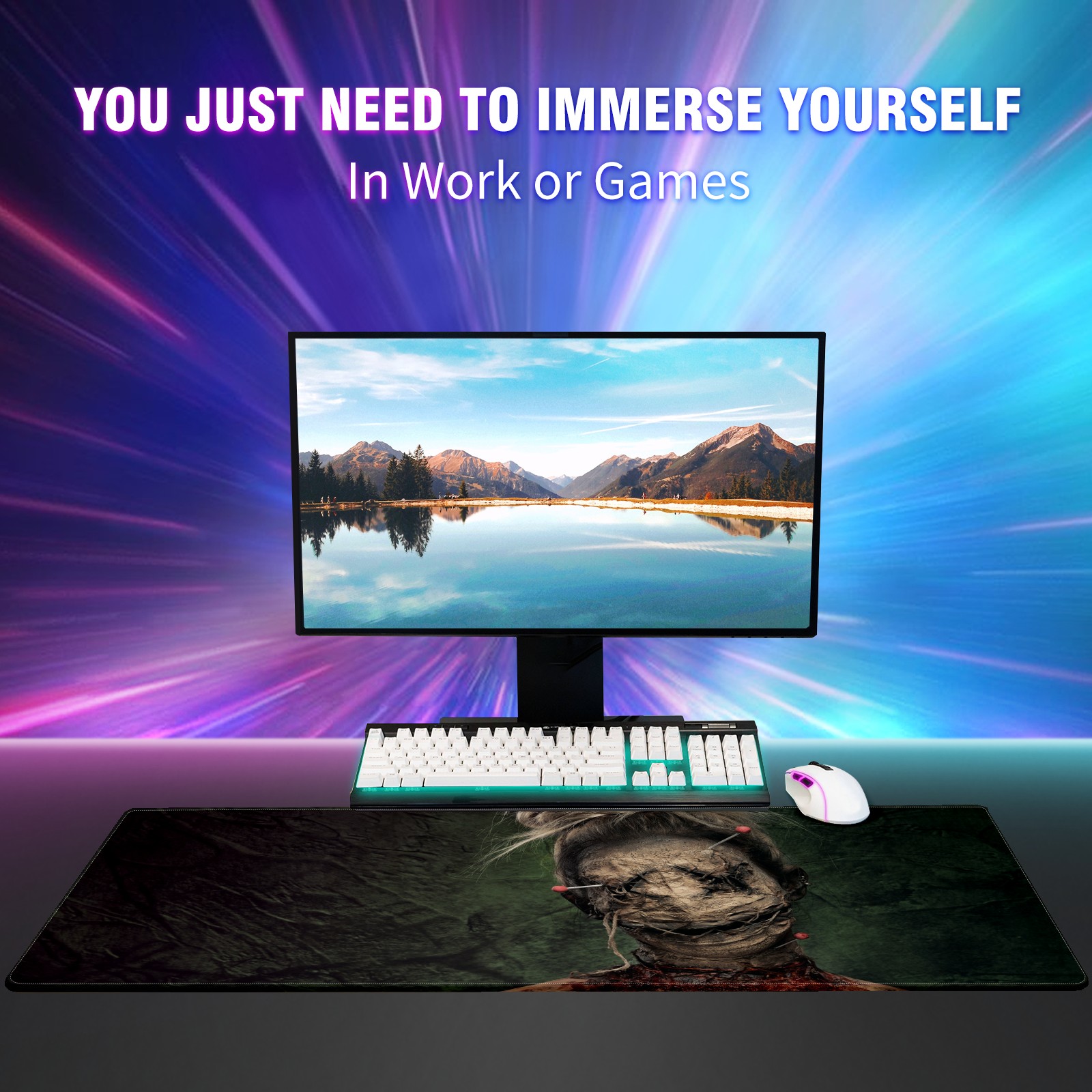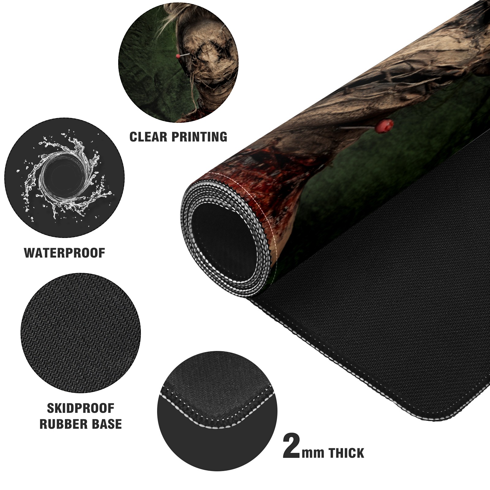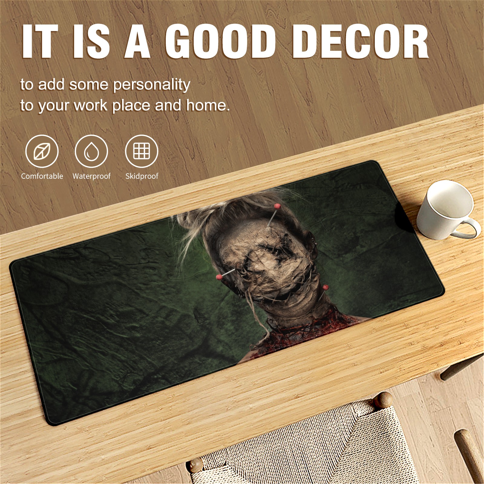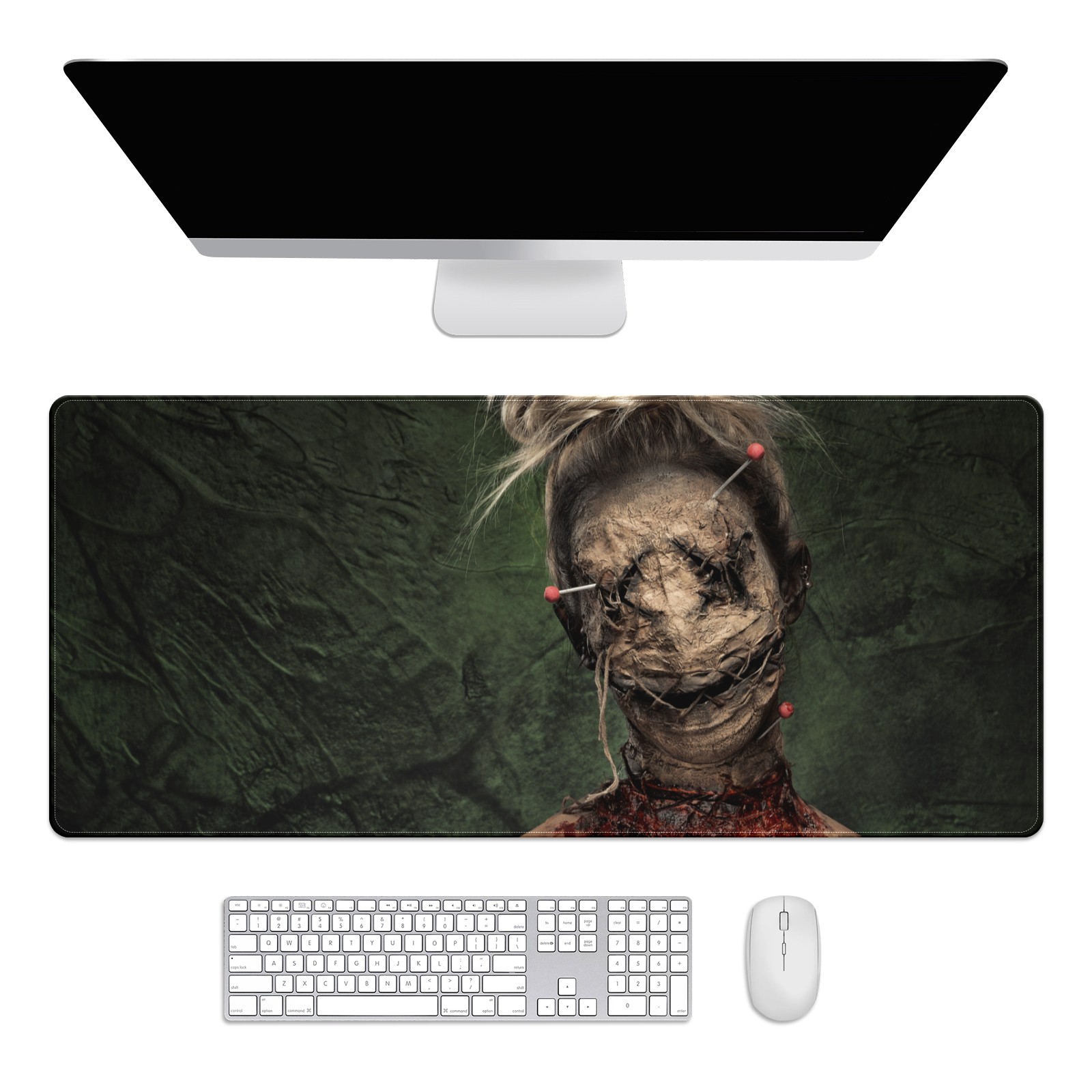 Large Mouse Pad for Desktop, Cute Desk Mat Pad Protector for Work & Gaming, Aesthetic Pretty Anti-Slip Laptop Blotter Cover for Office School Home Supplies, Horror Zombie , 35.4inx15.7in