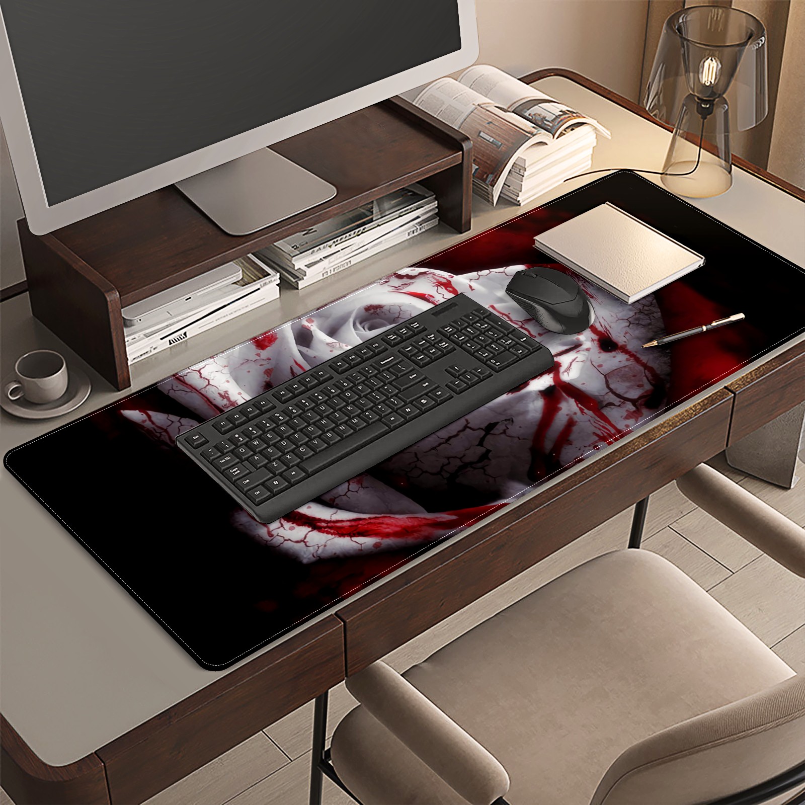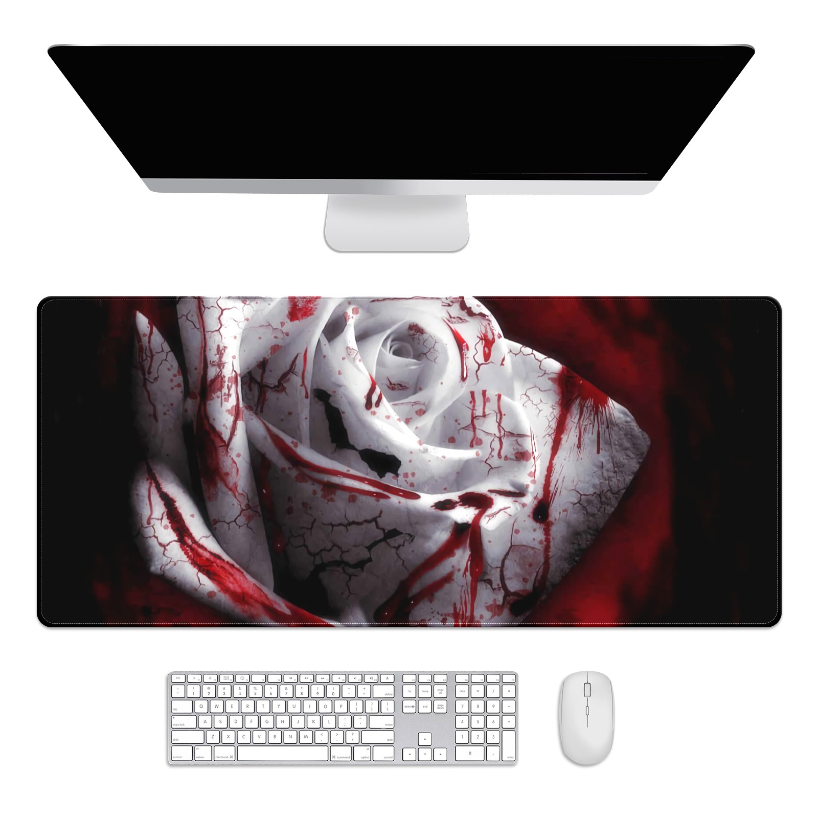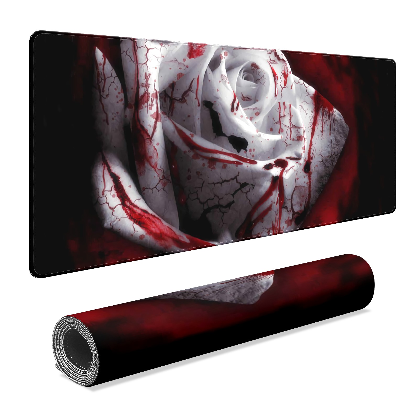 Large Mouse Pad for Desktop, Cute Desk Mat Pad Protector for Work & Gaming, Aesthetic Pretty Anti-Slip Laptop Blotter Cover for Office School Home Supplies, Bloody Rose , 35.4inx15.7in