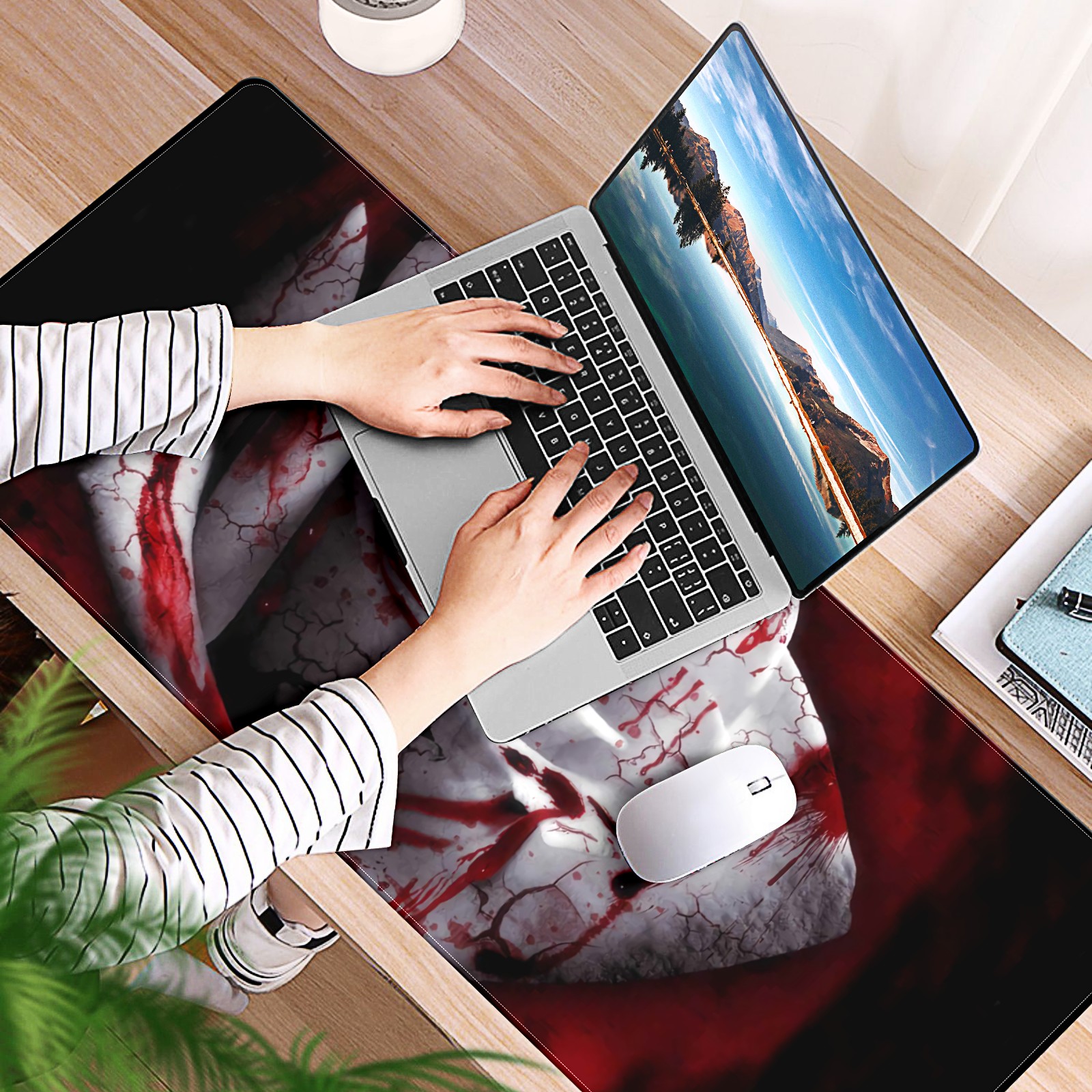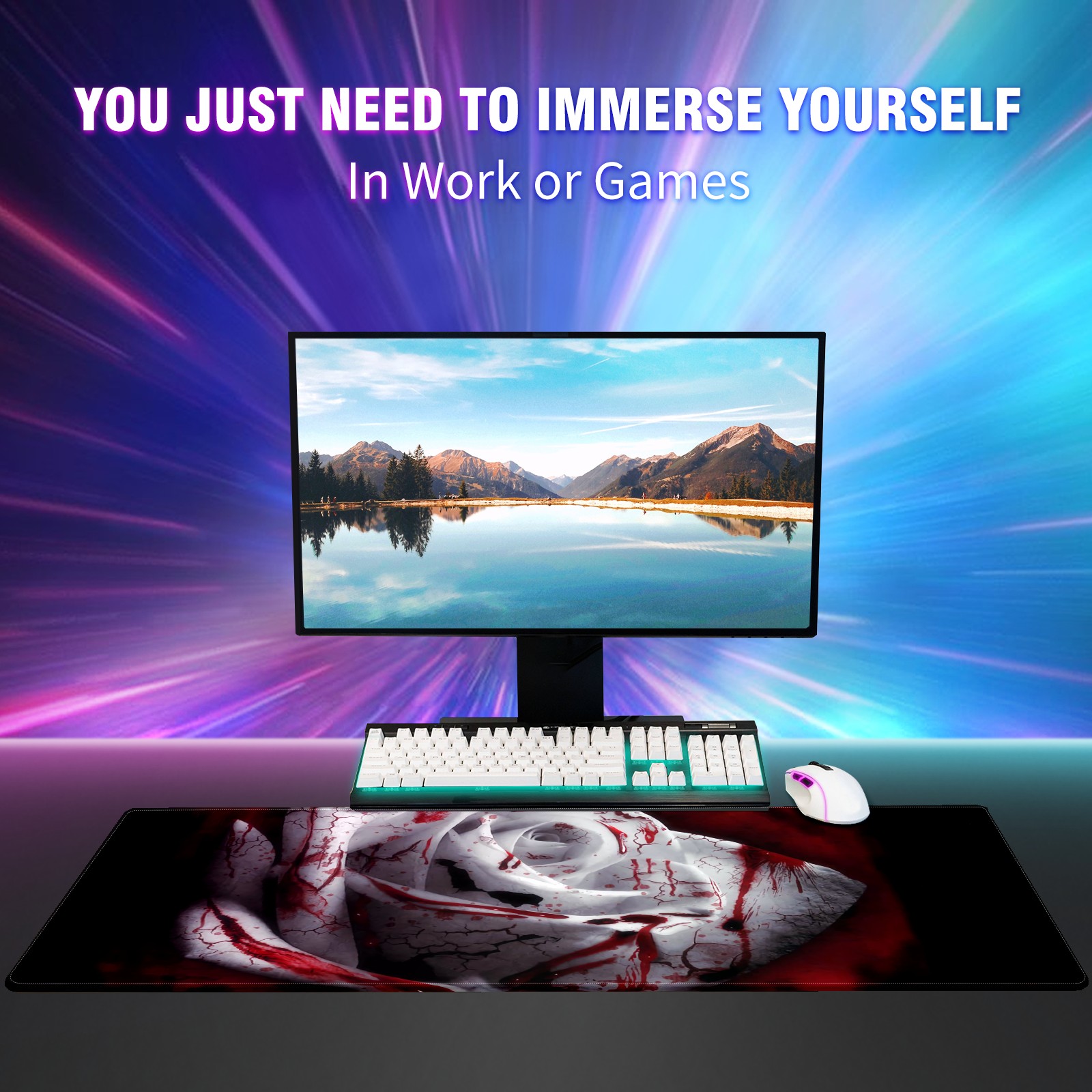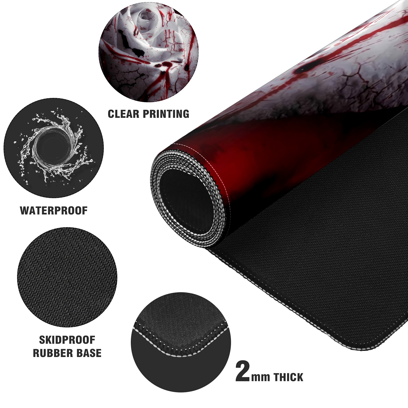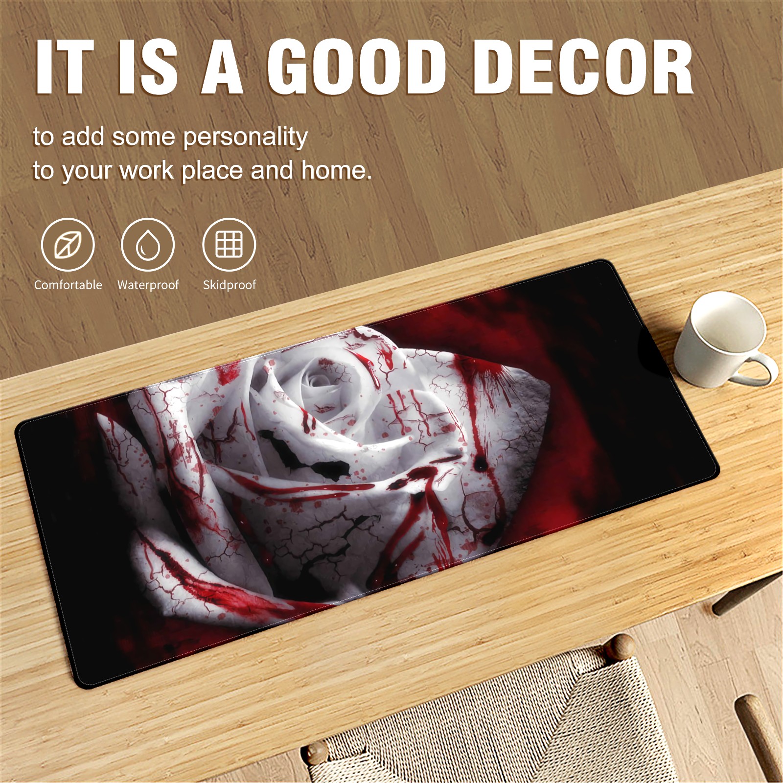 Large Mouse Pad for Desktop, Cute Desk Mat Pad Protector for Work & Gaming, Aesthetic Pretty Anti-Slip Laptop Blotter Cover for Office School Home Supplies, Bloody Rose , 35.4inx15.7in