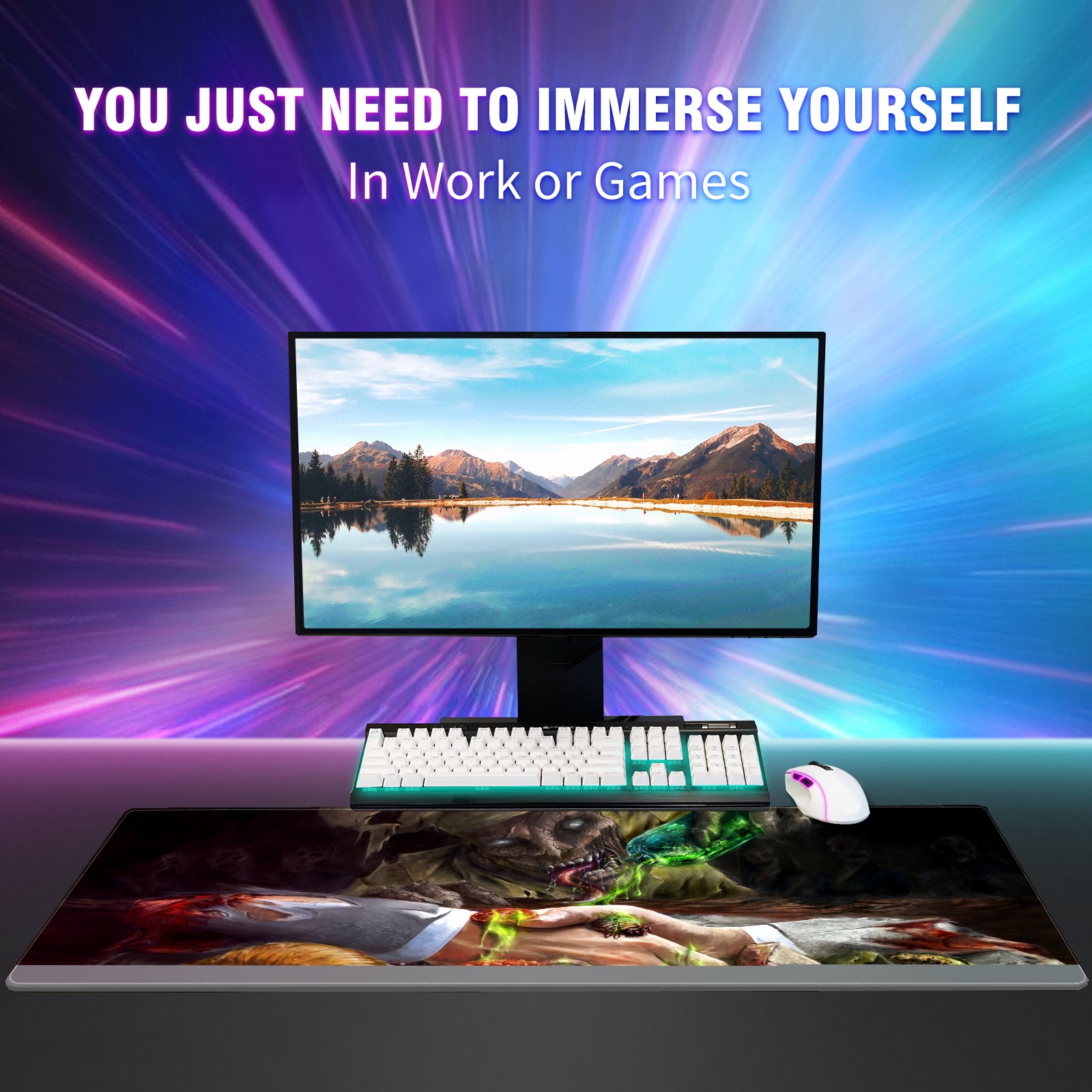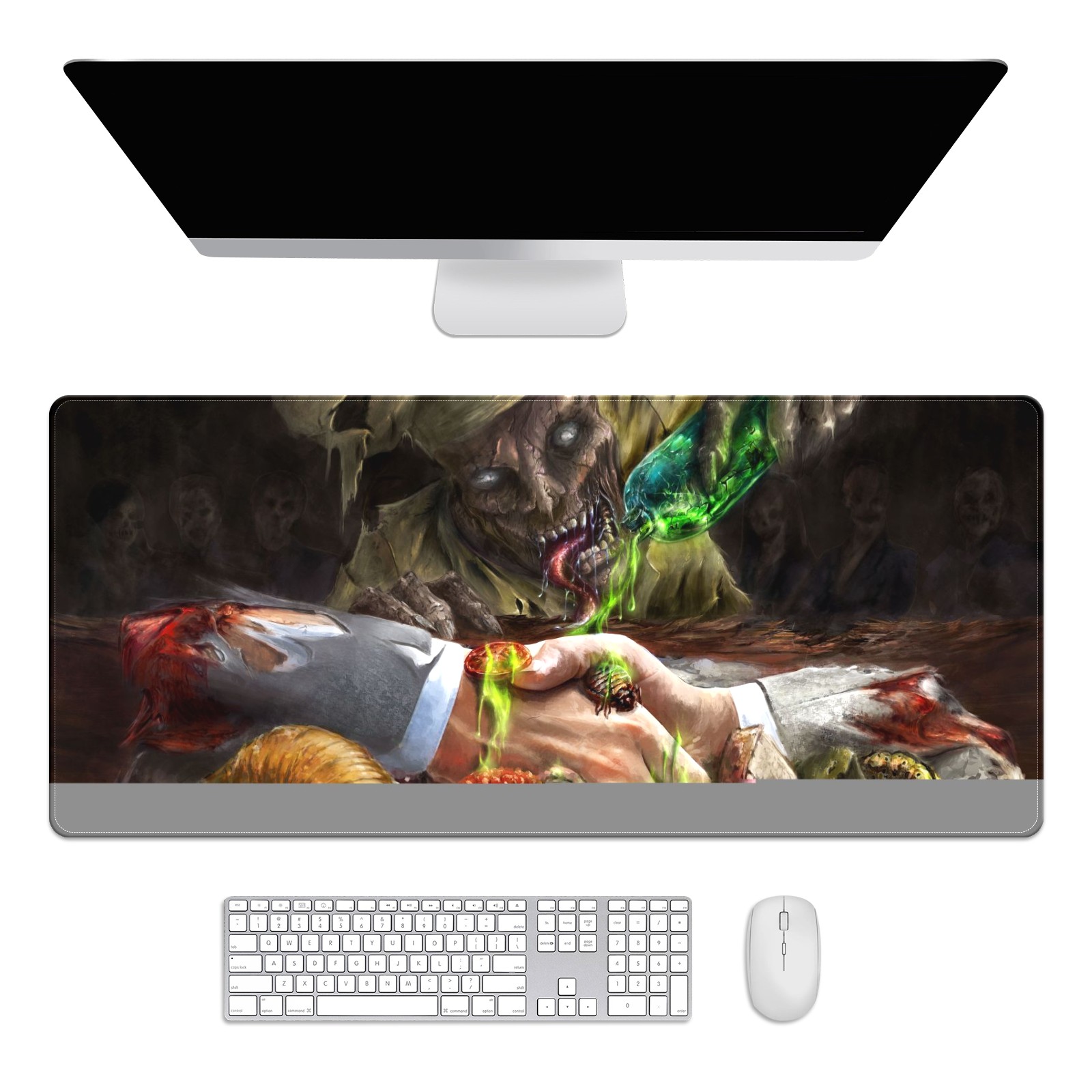 Large Mouse Pad for Desktop, Cute Desk Mat Pad Protector for Work & Gaming, Aesthetic Pretty Anti-Slip Laptop Blotter Cover for Office School Home Supplies, Zombie Spooky , 35.4inx15.7in