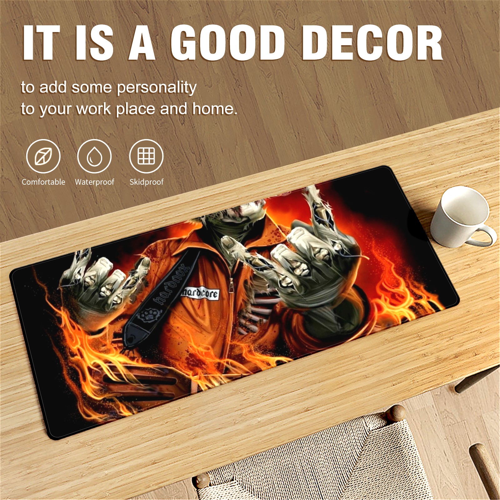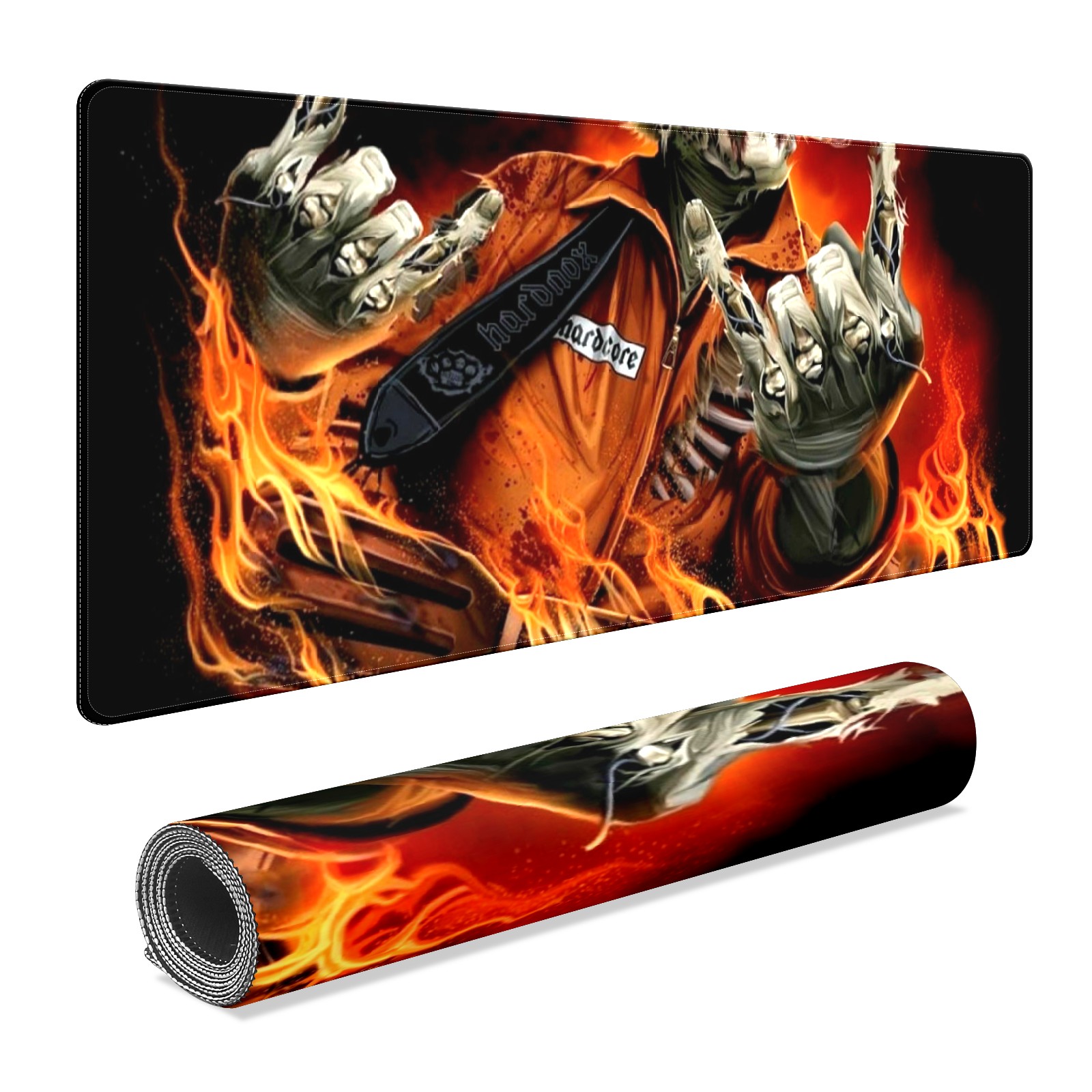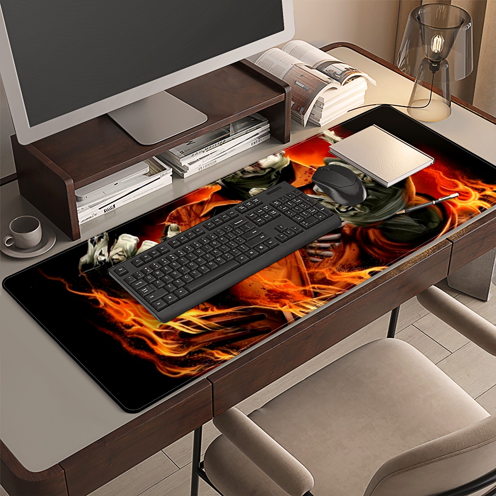 Large Mouse Pad for Desktop, Cute Desk Mat Pad Protector for Work & Gaming, Aesthetic Pretty Anti-Slip Laptop Blotter Cover for Office School Home Supplies, Skeleton Fire , 35.4inx15.7in