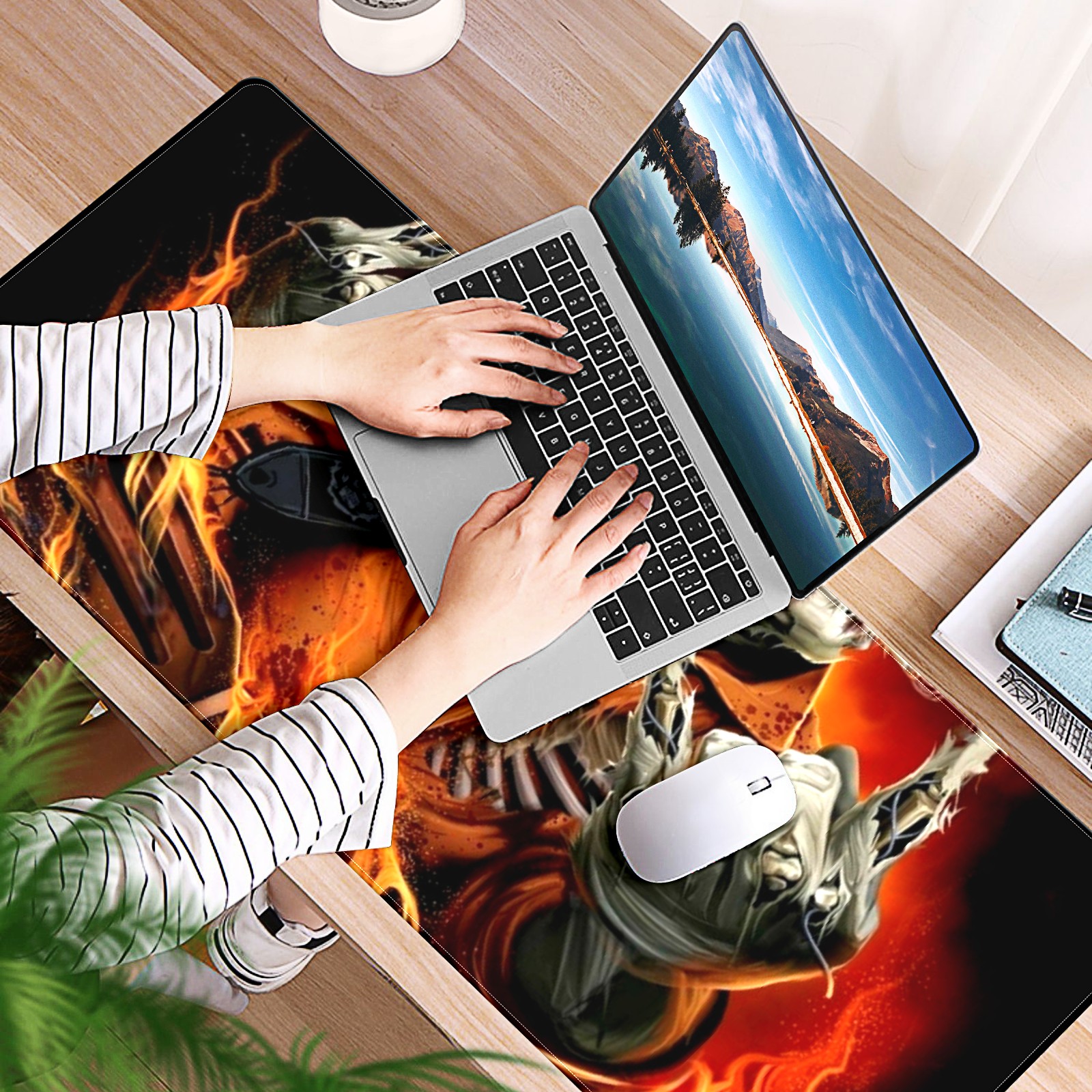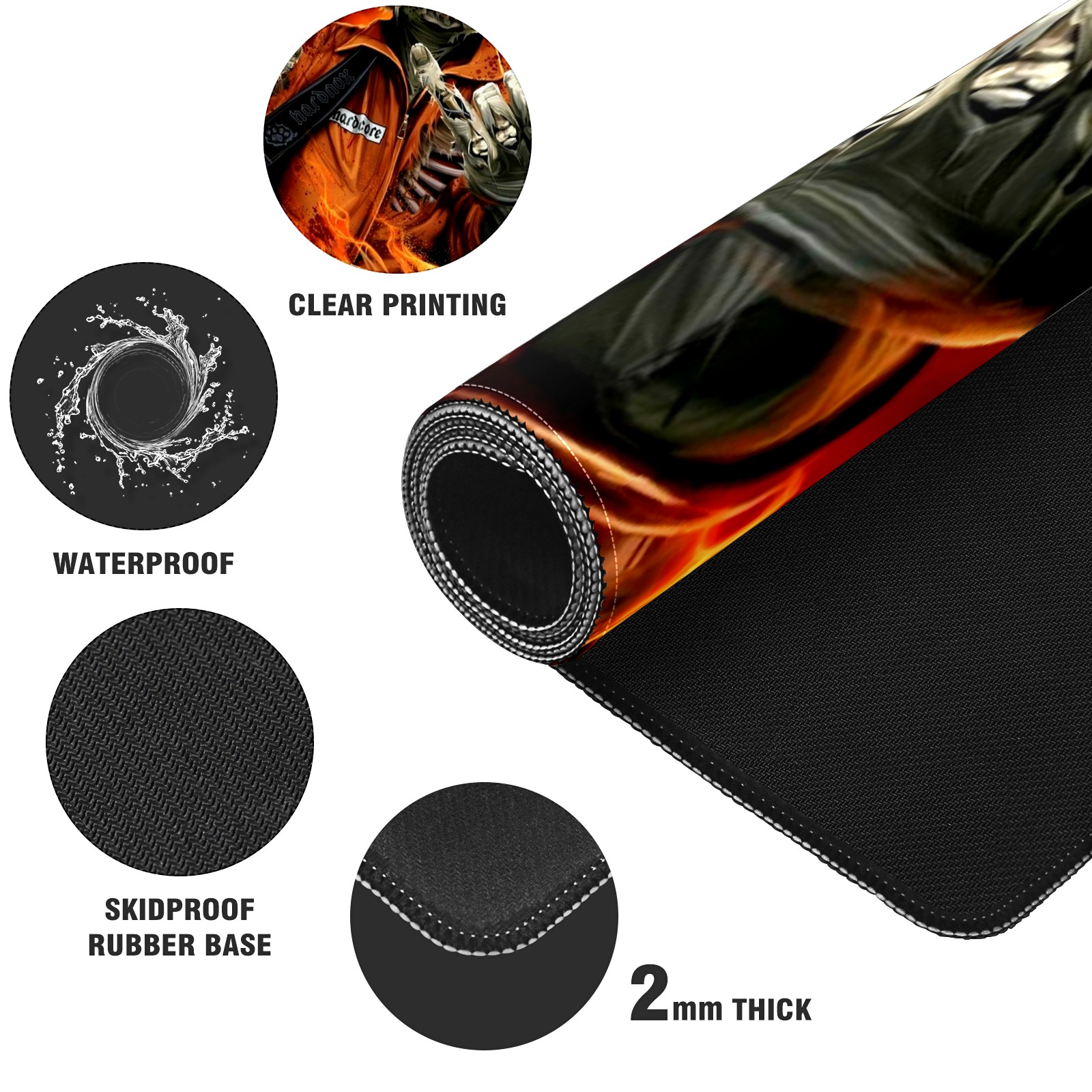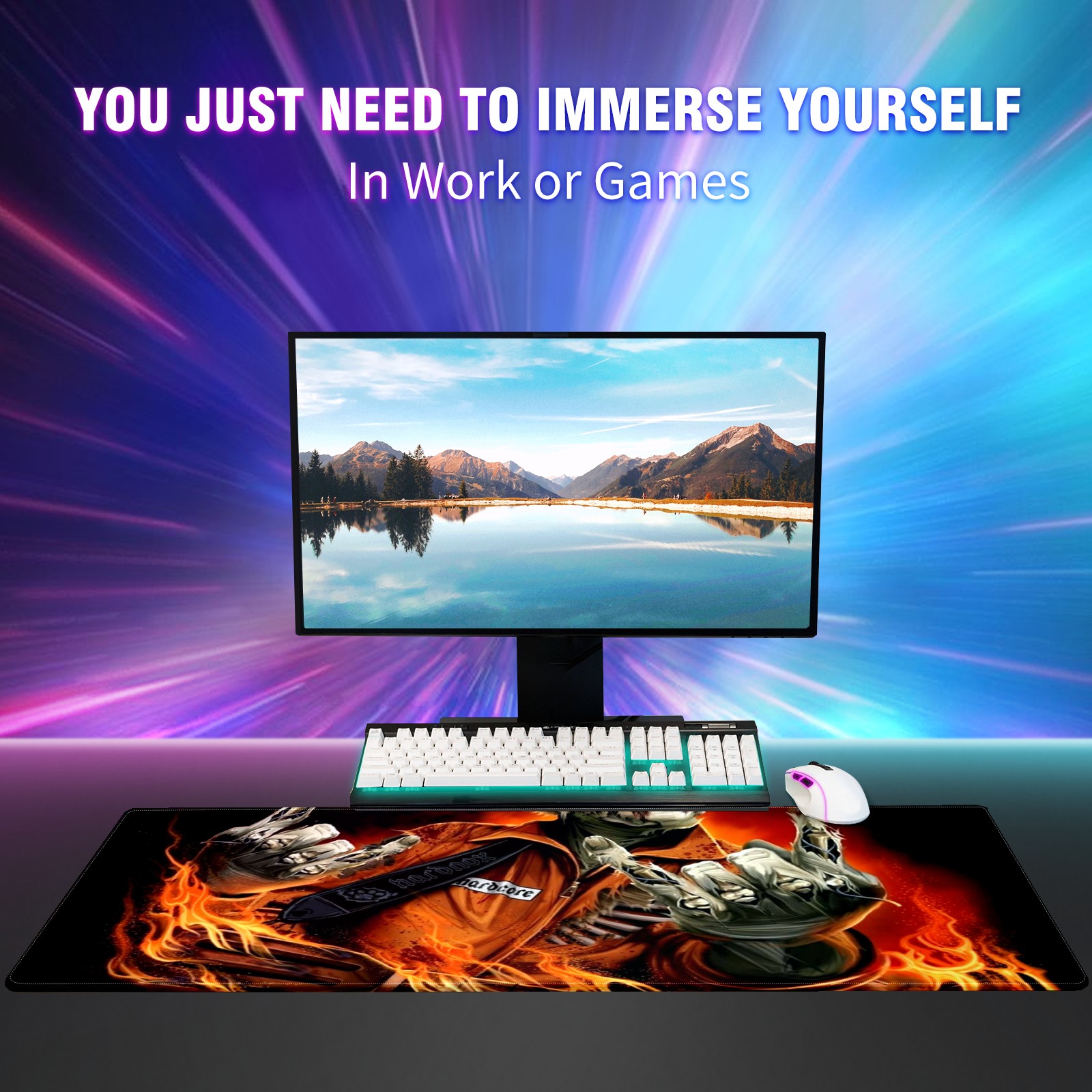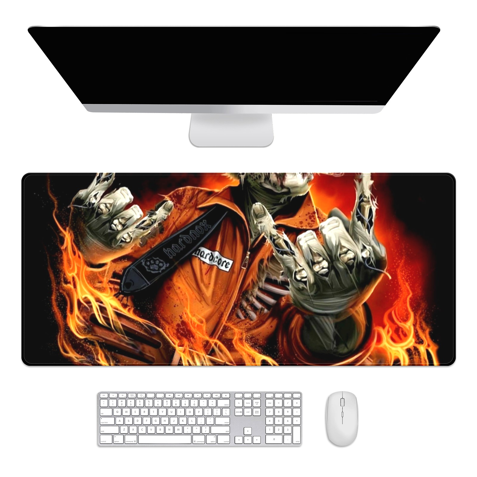 Large Mouse Pad for Desktop, Cute Desk Mat Pad Protector for Work & Gaming, Aesthetic Pretty Anti-Slip Laptop Blotter Cover for Office School Home Supplies, Skeleton Fire , 35.4inx15.7in
