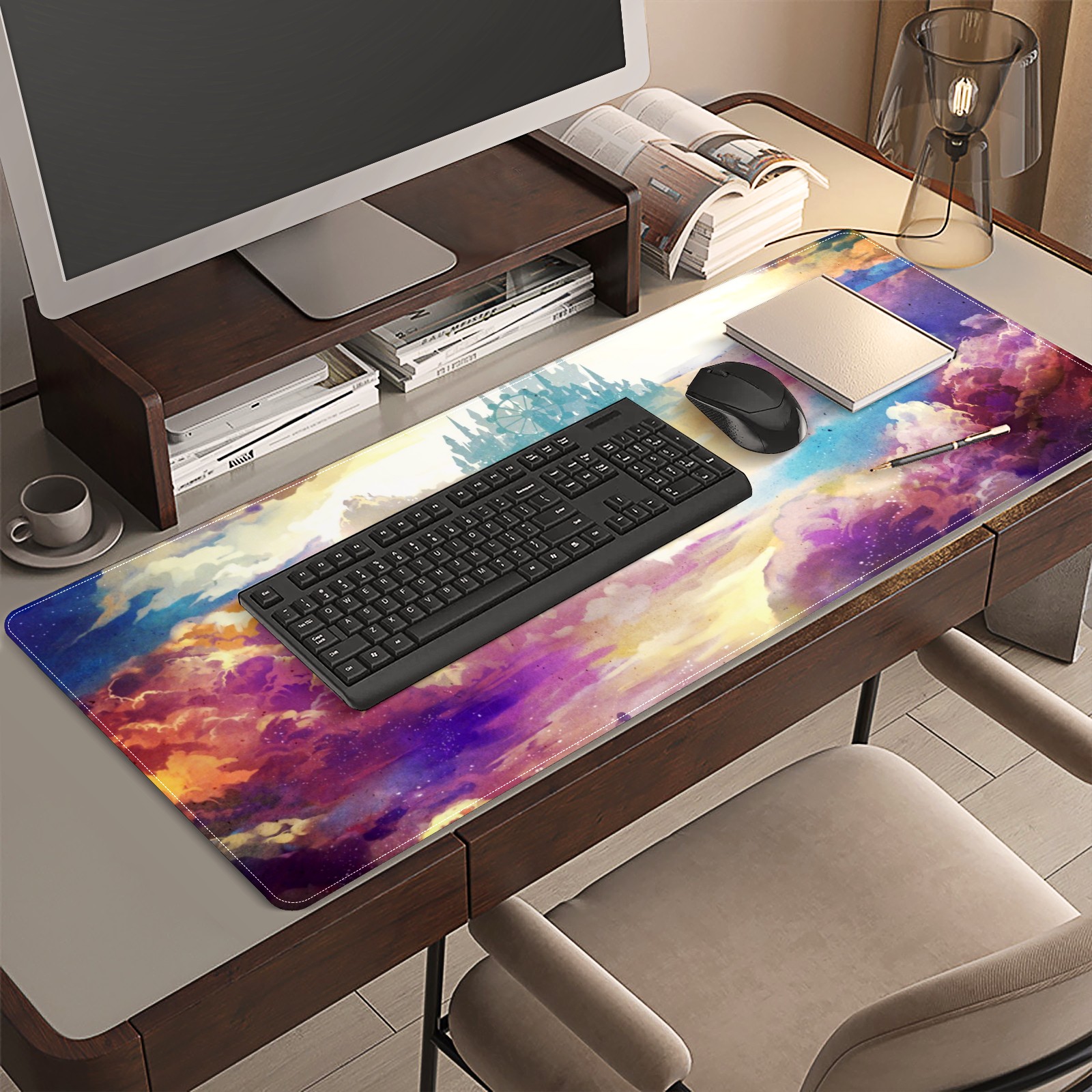 <p>This 35.4” × 15.7” extended desk mat offers ample space for your keyboard, mouse and essentials, working as a smooth work/writing pad while protecting your desktop from scratches.</p><p>With stylish artistic patterns, it adds personality to your home office, study or gaming setup. The high-density woven surface ensures precise, smooth mouse tracking for work and gaming.</p><p>Featuring an anti-slip natural rubber base for firm grip and stability, the mat is soft, elastic and odorless. Reinforced stitched edges prevent fraying and curling for long-lasting durability.</p>