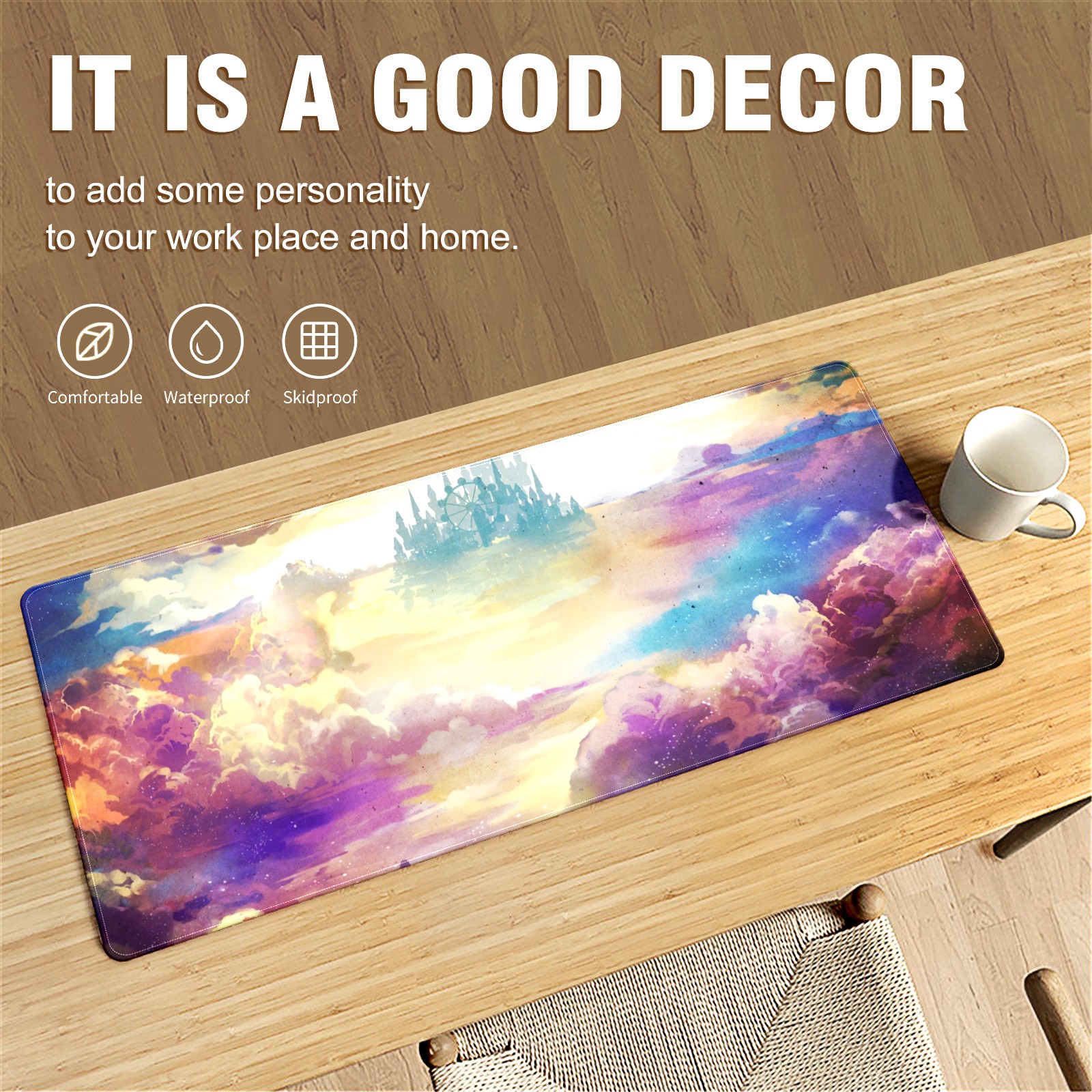 • <p>This 35.4” × 15.7” extended desk mat offers ample space for your keyboard, mouse and essentials, working as a smooth work/writing pad while protecting your desktop from scratches.</p><p>With stylish artistic patterns, it adds personality to your home office, study or gaming setup. The high-density woven surface ensures precise, smooth mouse tracking for work and gaming.</p><p>Featuring an anti-slip natural rubber base for firm grip and stability, the mat is soft, elastic and odorless. Reinforced stitched edges prevent fraying and curling for long-lasting durability.</p>