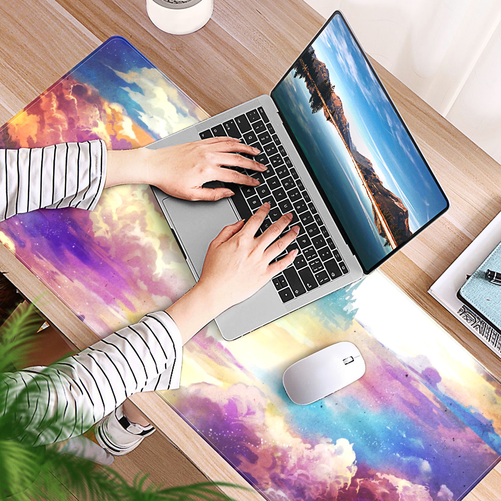 Large Mouse Pad for Desktop, Cute Desk Mat Pad Protector for Work & Gaming, Aesthetic Pretty Anti-Slip Laptop Blotter Cover for Office School Home Supplies, Art Paintings , 35.4inx15.7in