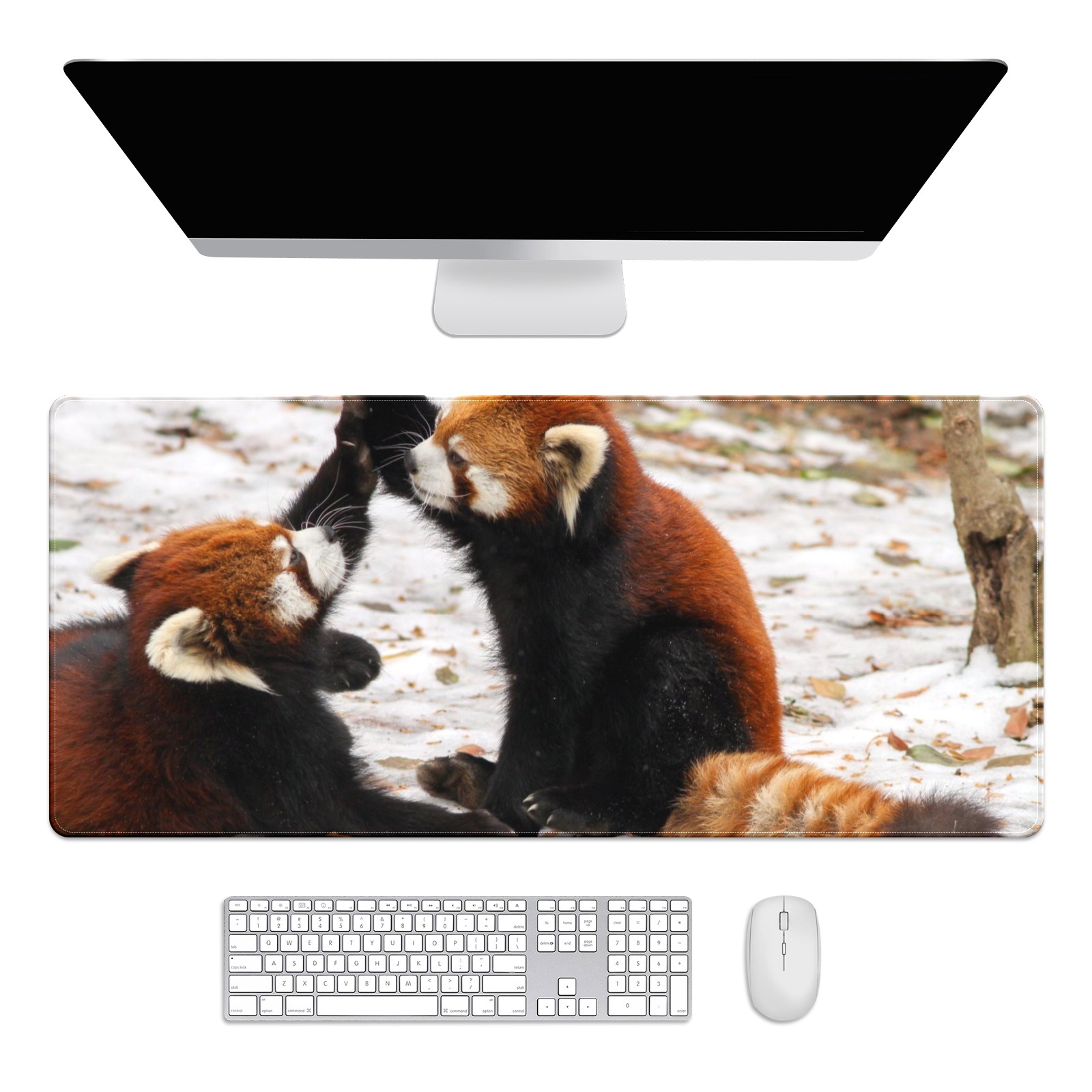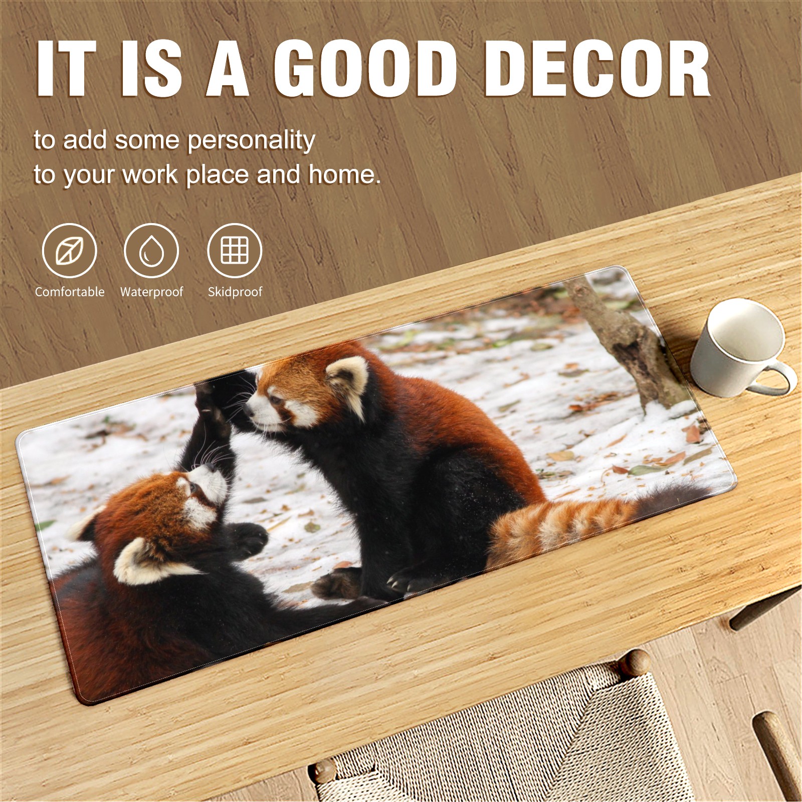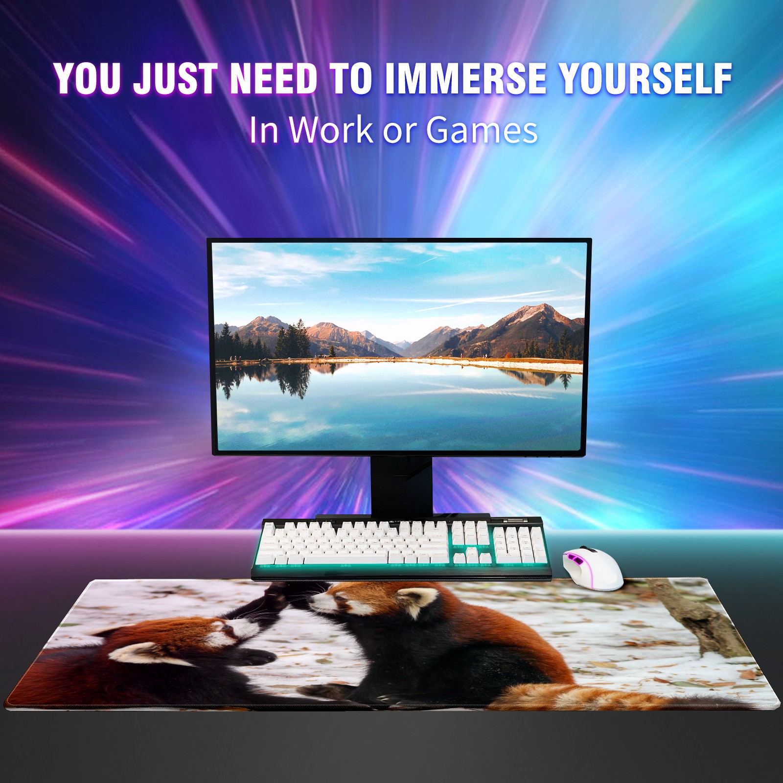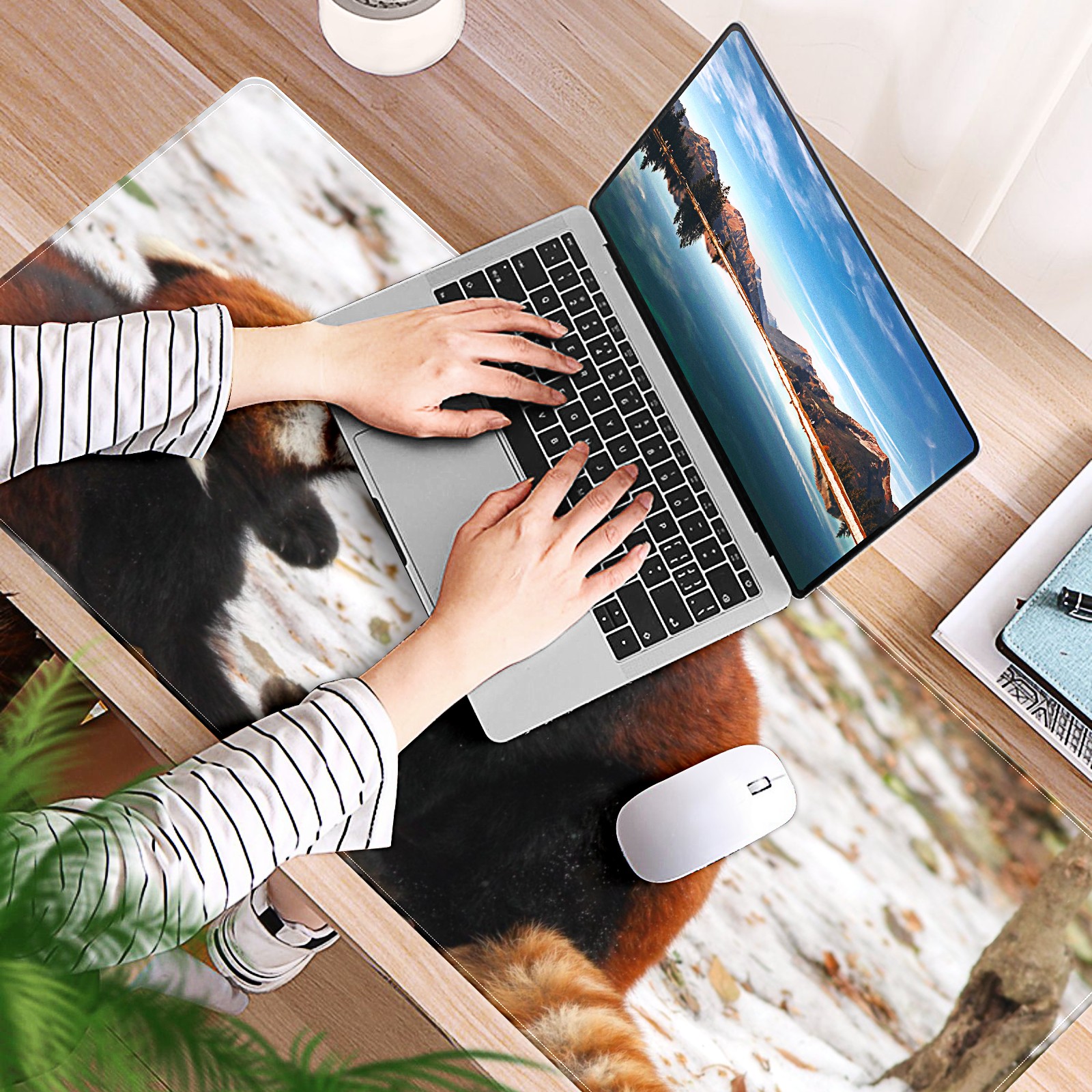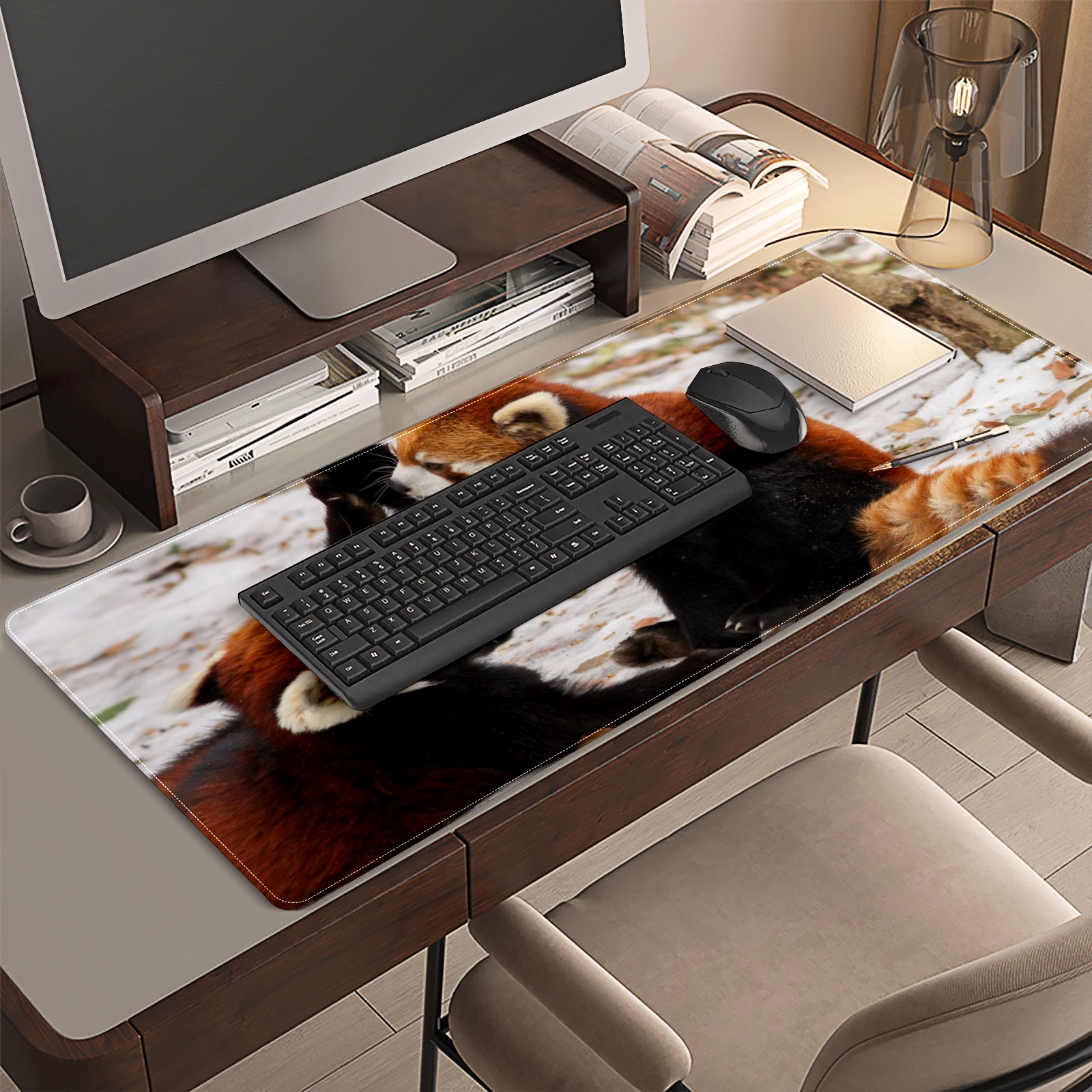 Large Mouse Pad for Desktop, Cute Desk Mat Pad Protector for Work & Gaming, Aesthetic Pretty Anti-Slip Laptop Blotter Cover for Office School Home Supplies, Frolic Raccoon , 35.4inx15.7in