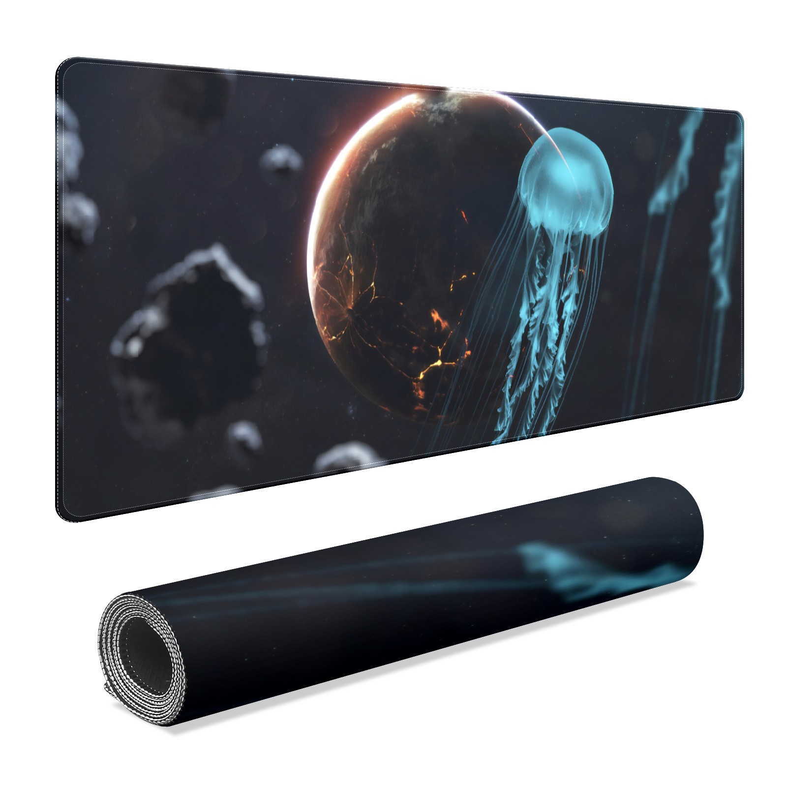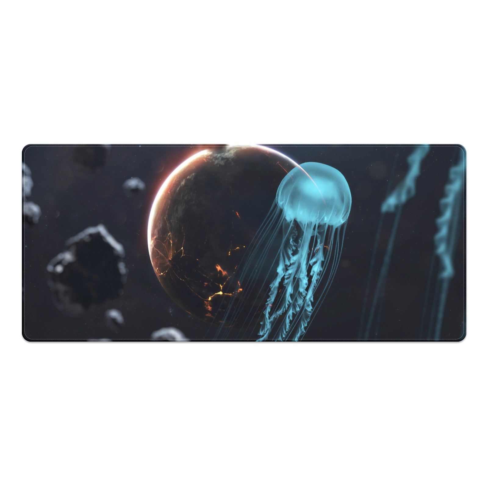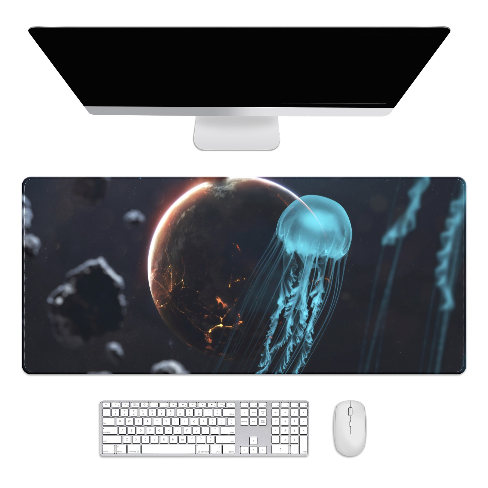 Large Mouse Pad for Desktop, Cute Desk Mat Pad Protector for Work & Gaming, Aesthetic Pretty Anti-Slip Laptop Blotter Cover for Office School Home Supplies, Animal Jellyfish , 35.4inx15.7in