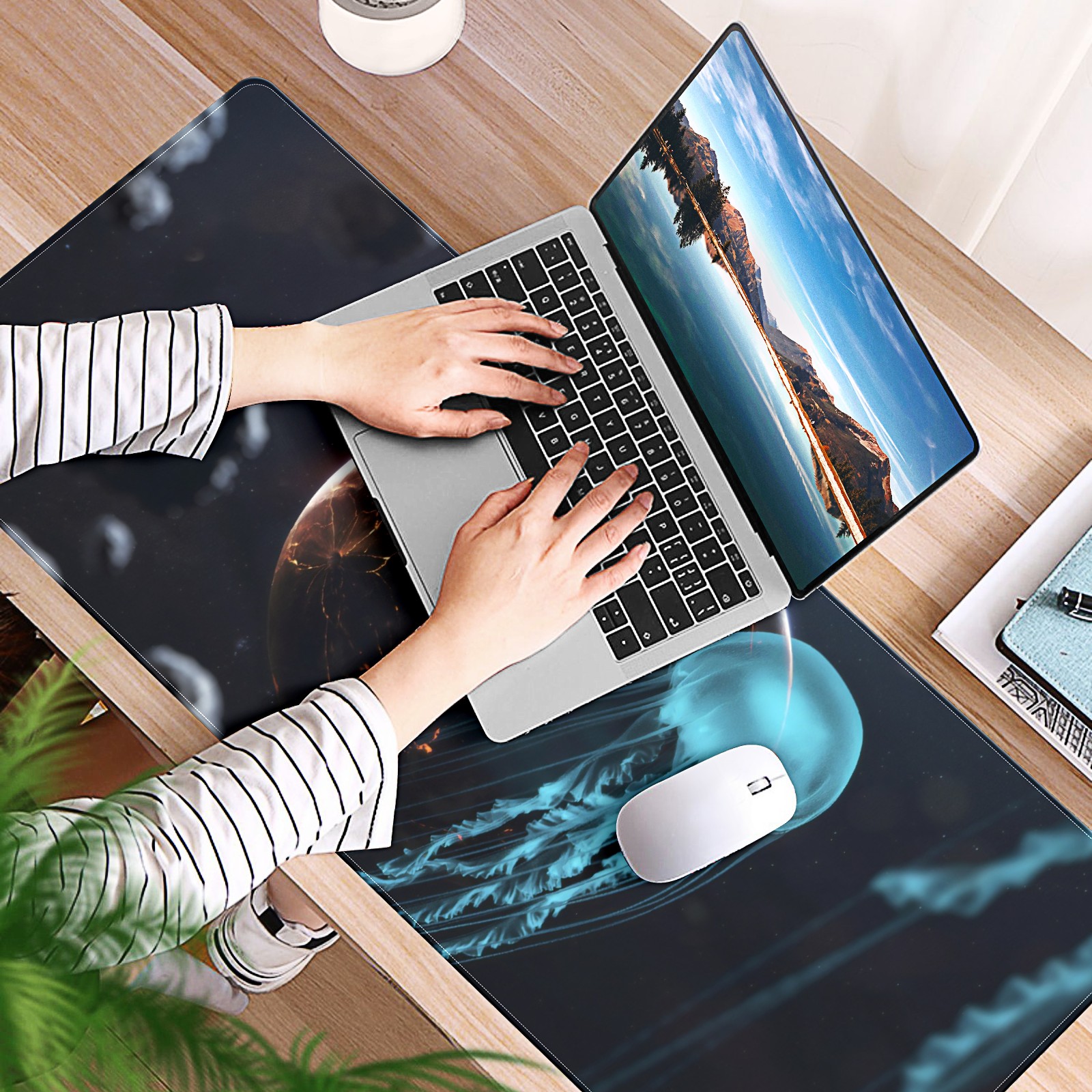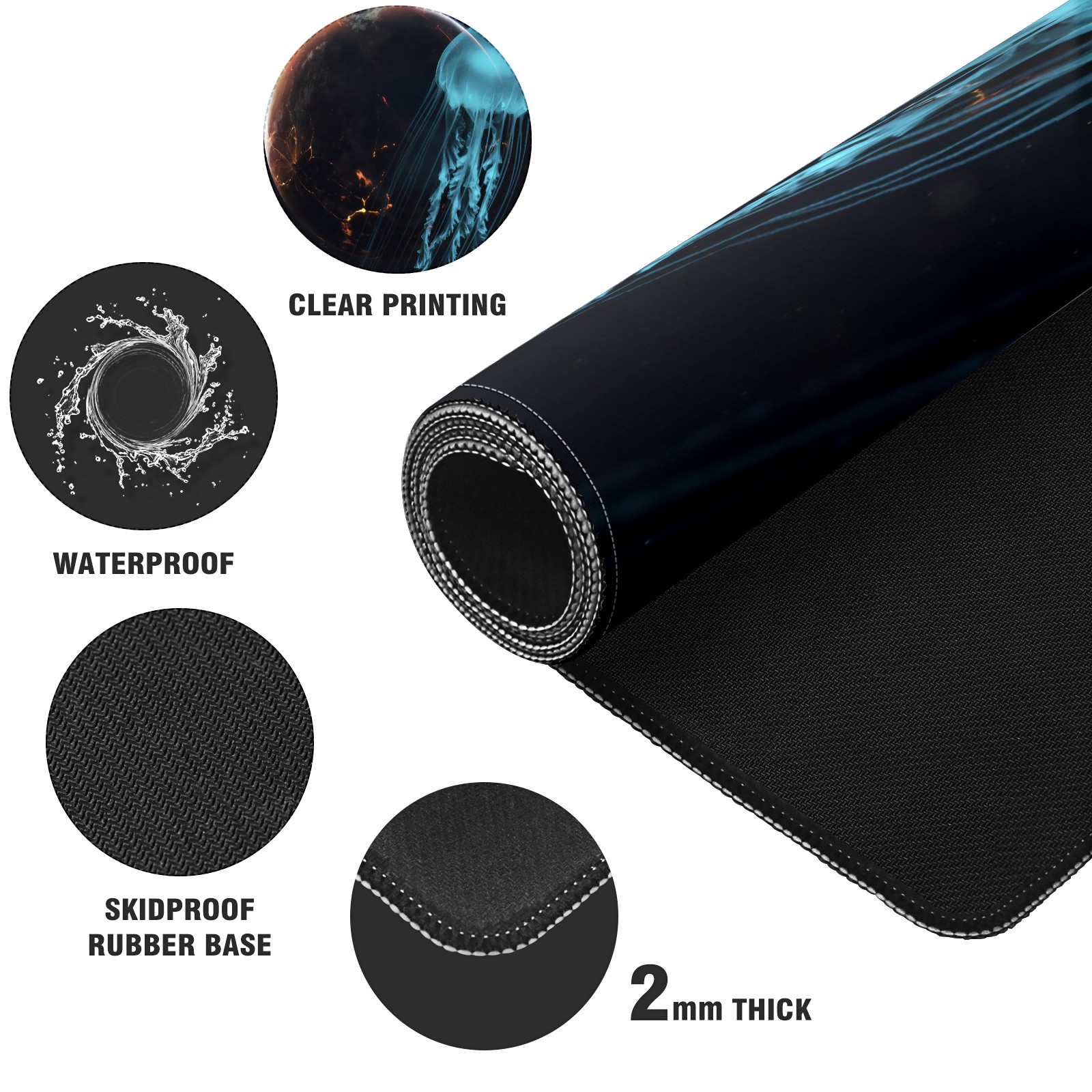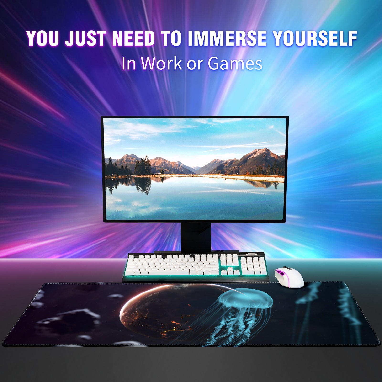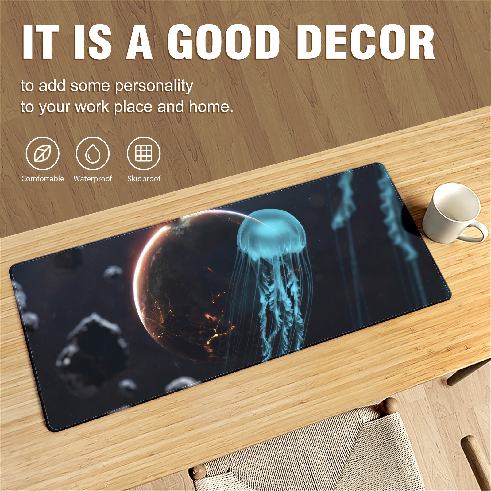 Large Mouse Pad for Desktop, Cute Desk Mat Pad Protector for Work & Gaming, Aesthetic Pretty Anti-Slip Laptop Blotter Cover for Office School Home Supplies, Animal Jellyfish , 35.4inx15.7in