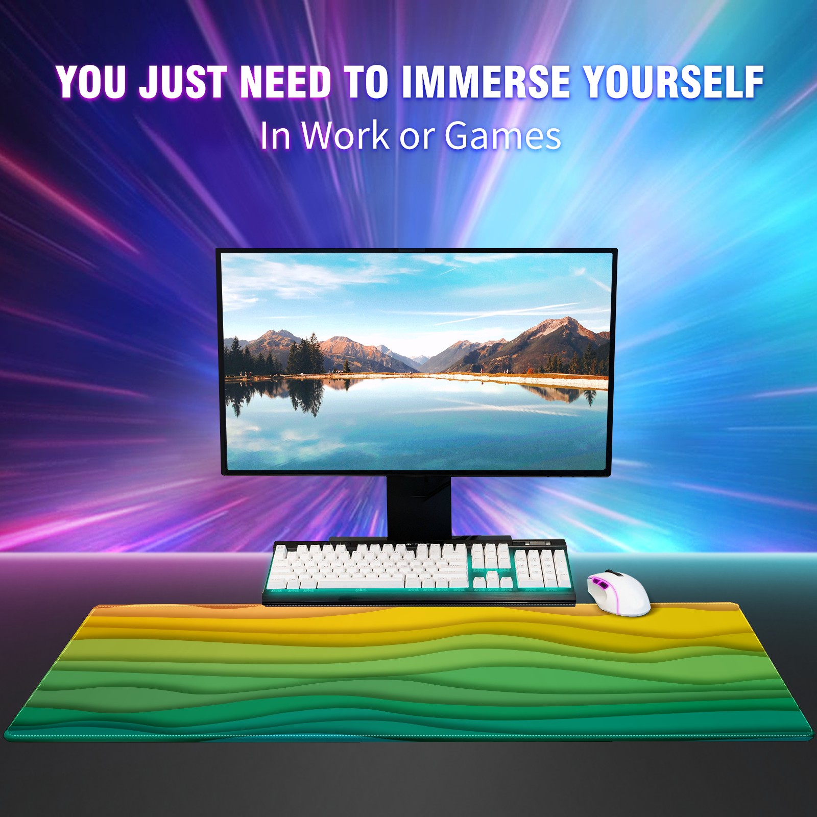 Large Mouse Pad for Desktop, Cute Desk Mat Pad Protector for Work & Gaming, Aesthetic Pretty Anti-Slip Laptop Blotter Cover for Office School Home Supplies, Colors Rainbow , 35.4inx15.7in