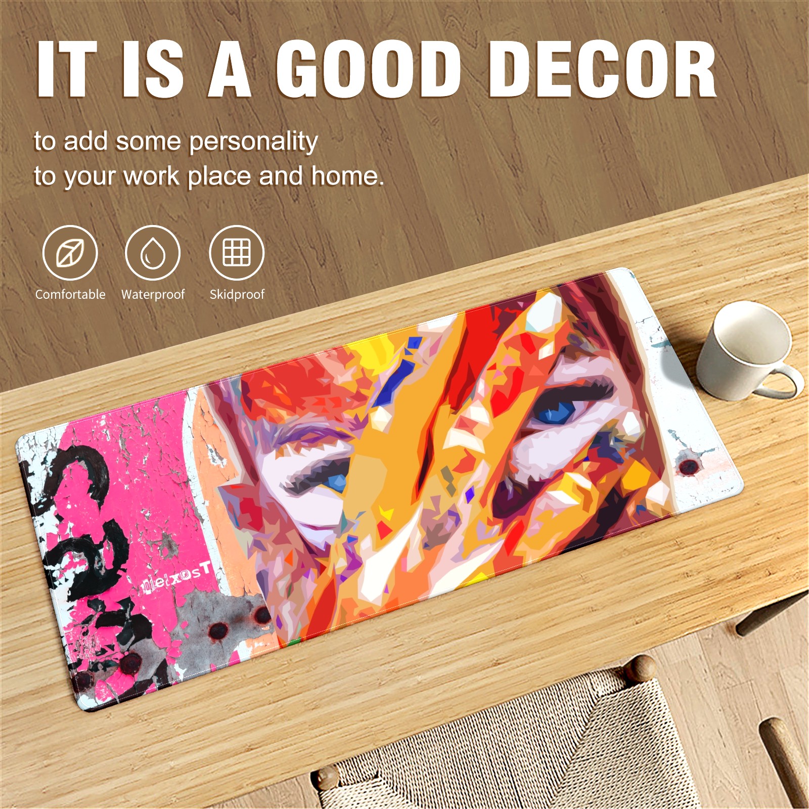 <p>This 35.4” × 15.7” extended desk mat offers ample space for your keyboard, mouse and essentials, working as a smooth work/writing pad while protecting your desktop from scratches.</p><p>With stylish artistic patterns, it adds personality to your home office, study or gaming setup. The high-density woven surface ensures precise, smooth mouse tracking for work and gaming.</p><p>Featuring an anti-slip natural rubber base for firm grip and stability, the mat is soft, elastic and odorless. Reinforced stitched edges prevent fraying and curling for long-lasting durability.</p>