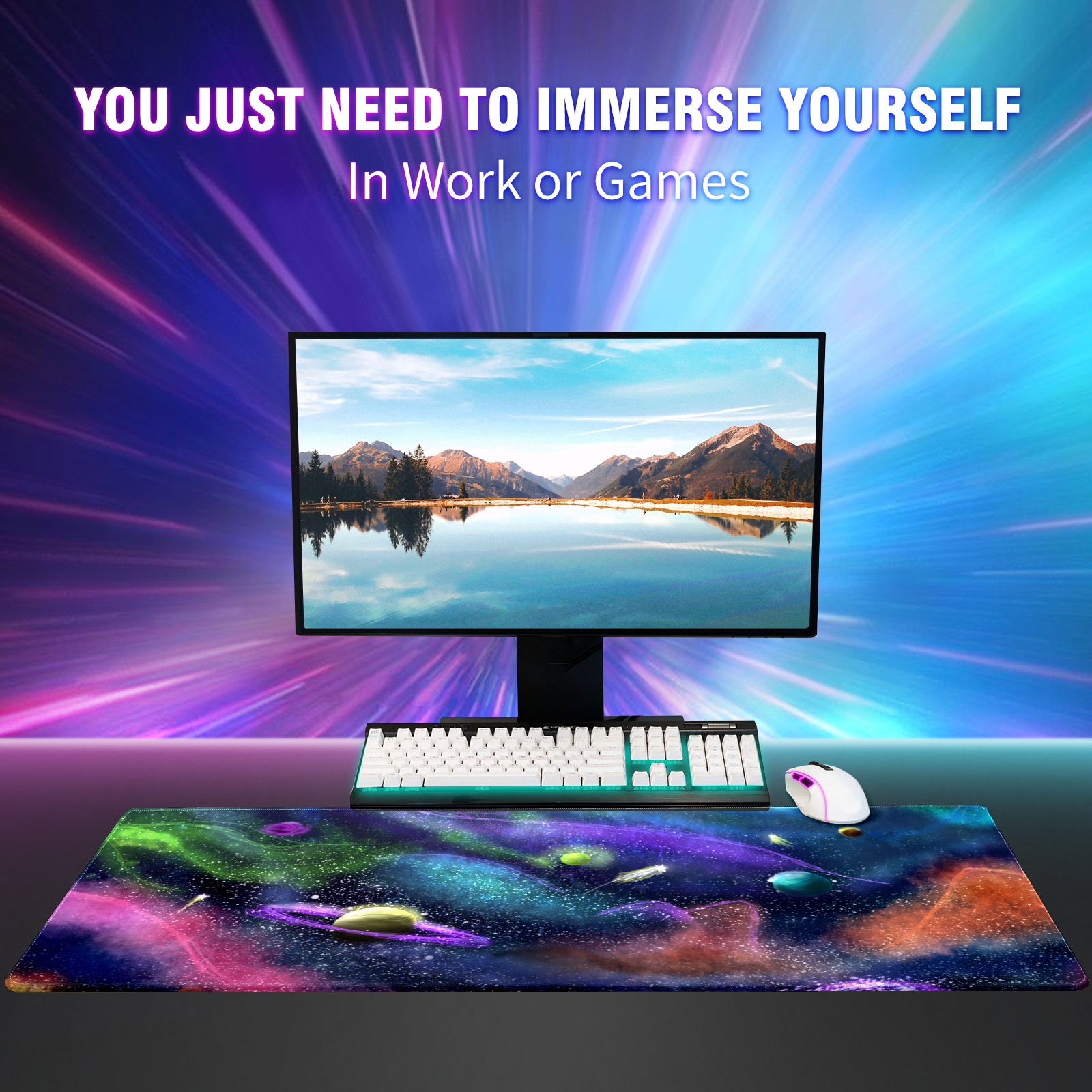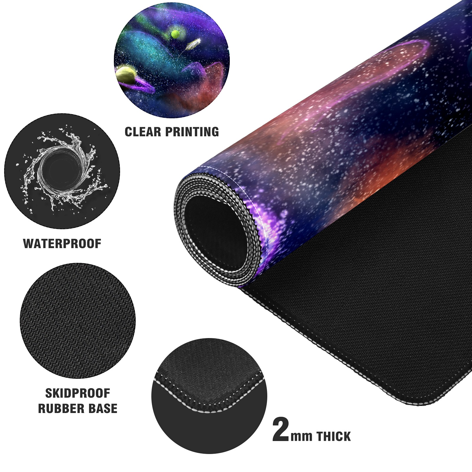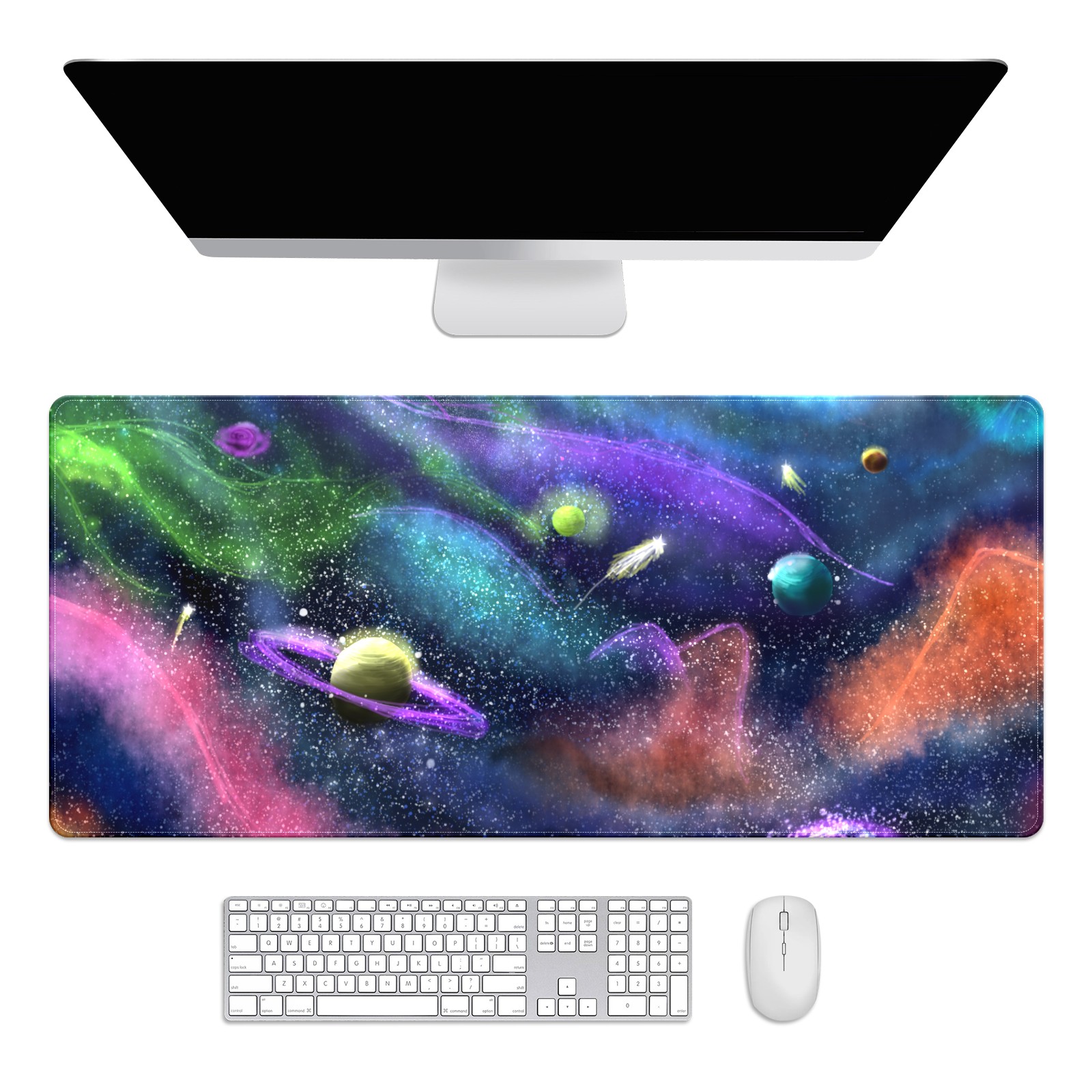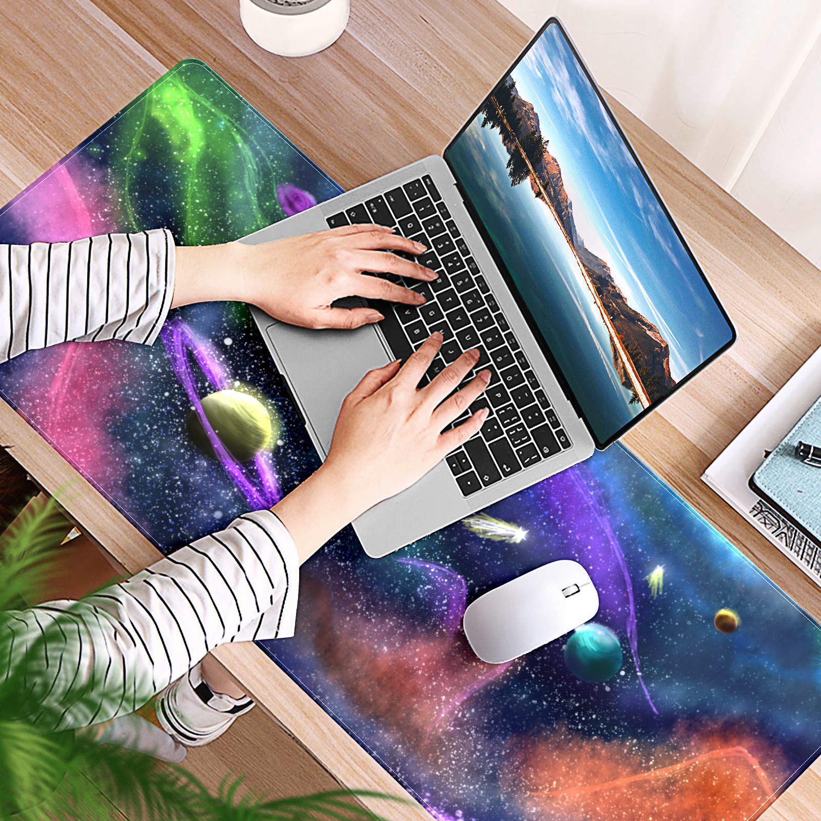 Large Mouse Pad for Desktop, Cute Desk Mat Pad Protector for Work & Gaming, Aesthetic Pretty Anti-Slip Laptop Blotter Cover for Office School Home Supplies, Colored Space , 35.4inx15.7in
